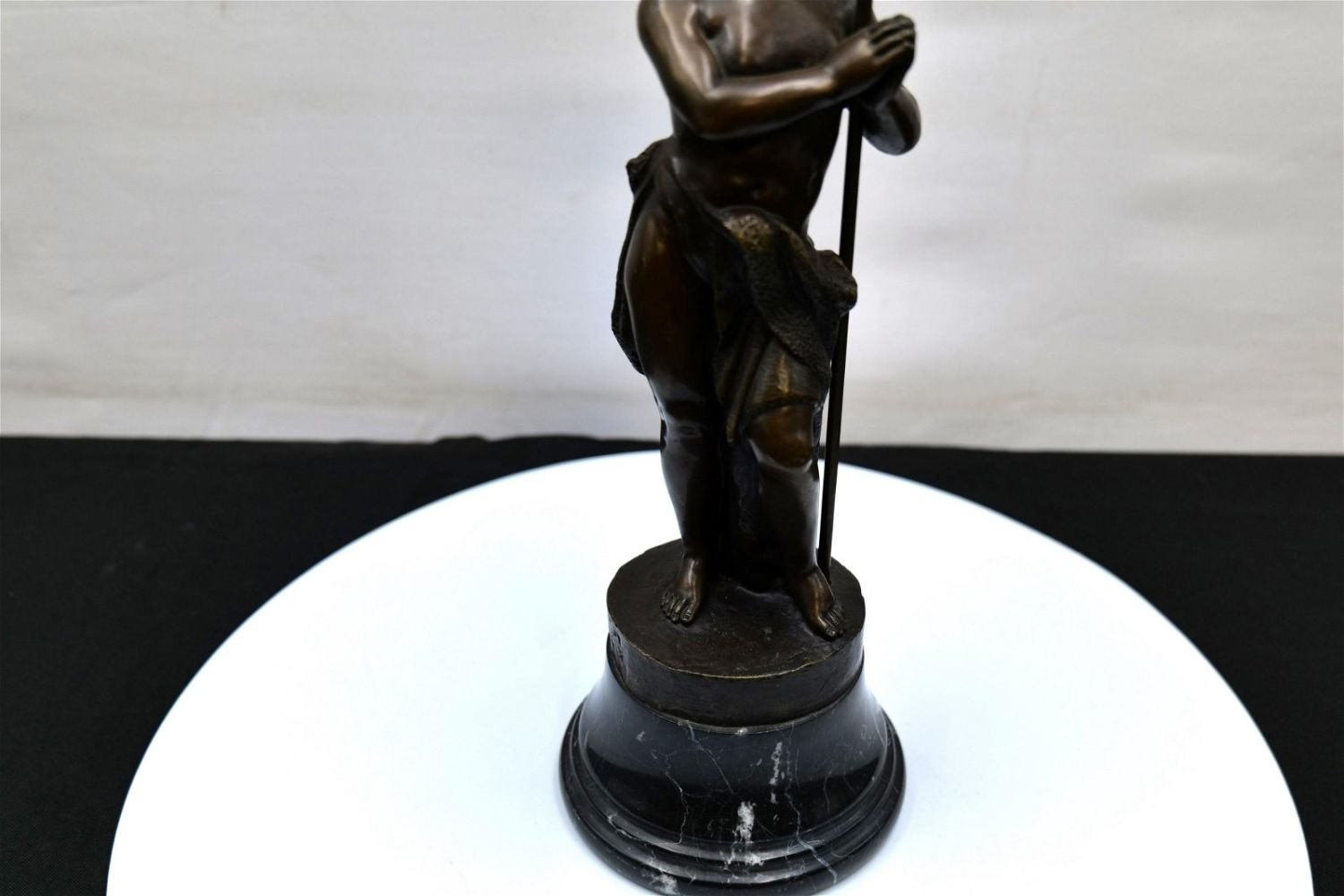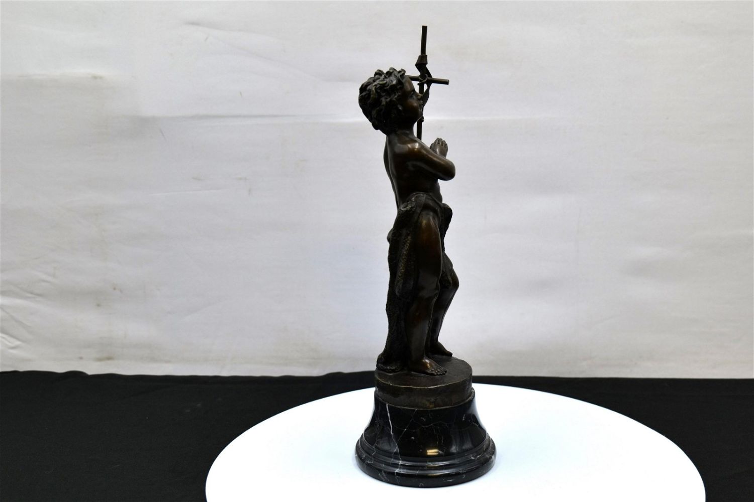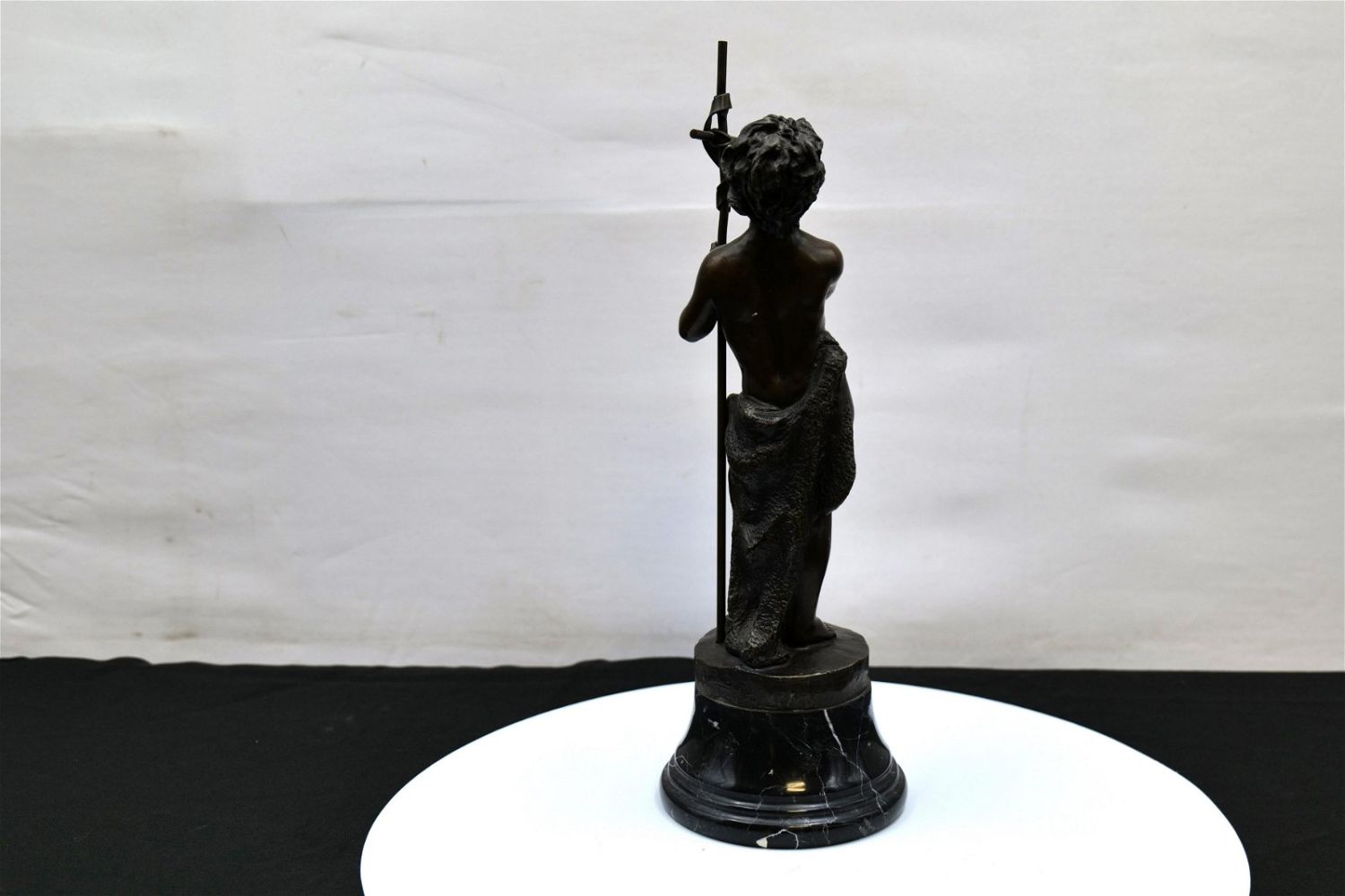 Bronze Statue depicting Religious Figure – Young boy holding cross. Measures 15" tall x 5" wide. All invoices must be paid within 24 hours of the sale. We offer multiple shipping options, please read the terms as they have changed. We also offer Pick-Ups Thursday, Friday, Saturday, and Monday immediately following the sale. BY APPOINTMENT ONLY. PLEASE READ THE NEW TERMS!!!