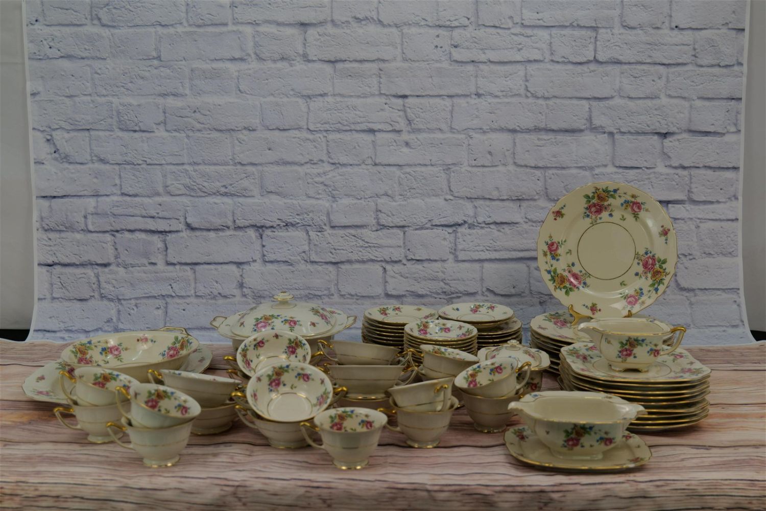 77 piece Thomas Bavaria Ivory Dinnerware Set. Set includes (8) 10 inches dinnerplates, (9) 8 inch salad plates, (12) 5 inch small bowls, (10) double Handled Soups with underplates, (11) cups & saucers, and (6) serving pieces all in good condition with some minor wear to some of the pieces. All invoices must be paid within 24 hours of the sale. We offer multiple shipping options, please read the terms as they have changed. We also offer Pick-Ups Thursday, Friday, Saturday, and Monday immediately following the sale. BY APPOINTMENT ONLY. PLEASE READ THE NEW TERMS!!!
