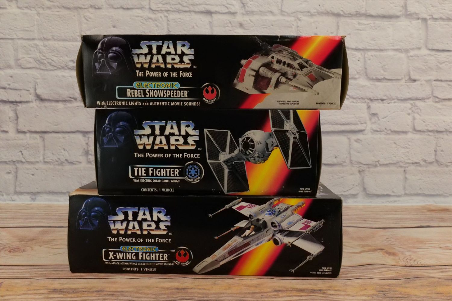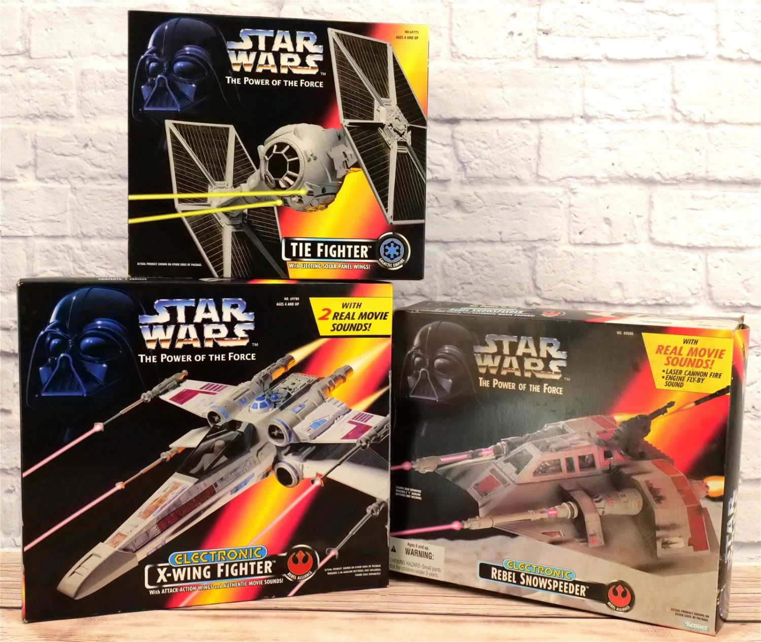 Lot of 3 Star Wars The Power of the Force Vehicles including Tie Fighter, Electronic Rebel Snowspeeder – Denting on Box, and Electronic X-Wing Fighter. All New in Package. All invoices must be paid for within 24 hours. We offer multiple shipping options, please read the terms as they have changed. We also offer pick ups on Friday, Saturday and Monday immediately following the sale BY APPOINTMENT ONLY. PLEASE READ THE TERMS!!!