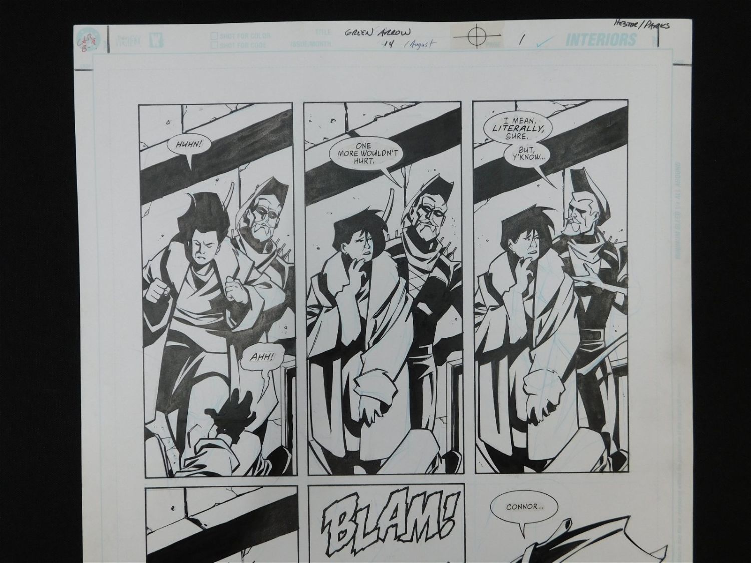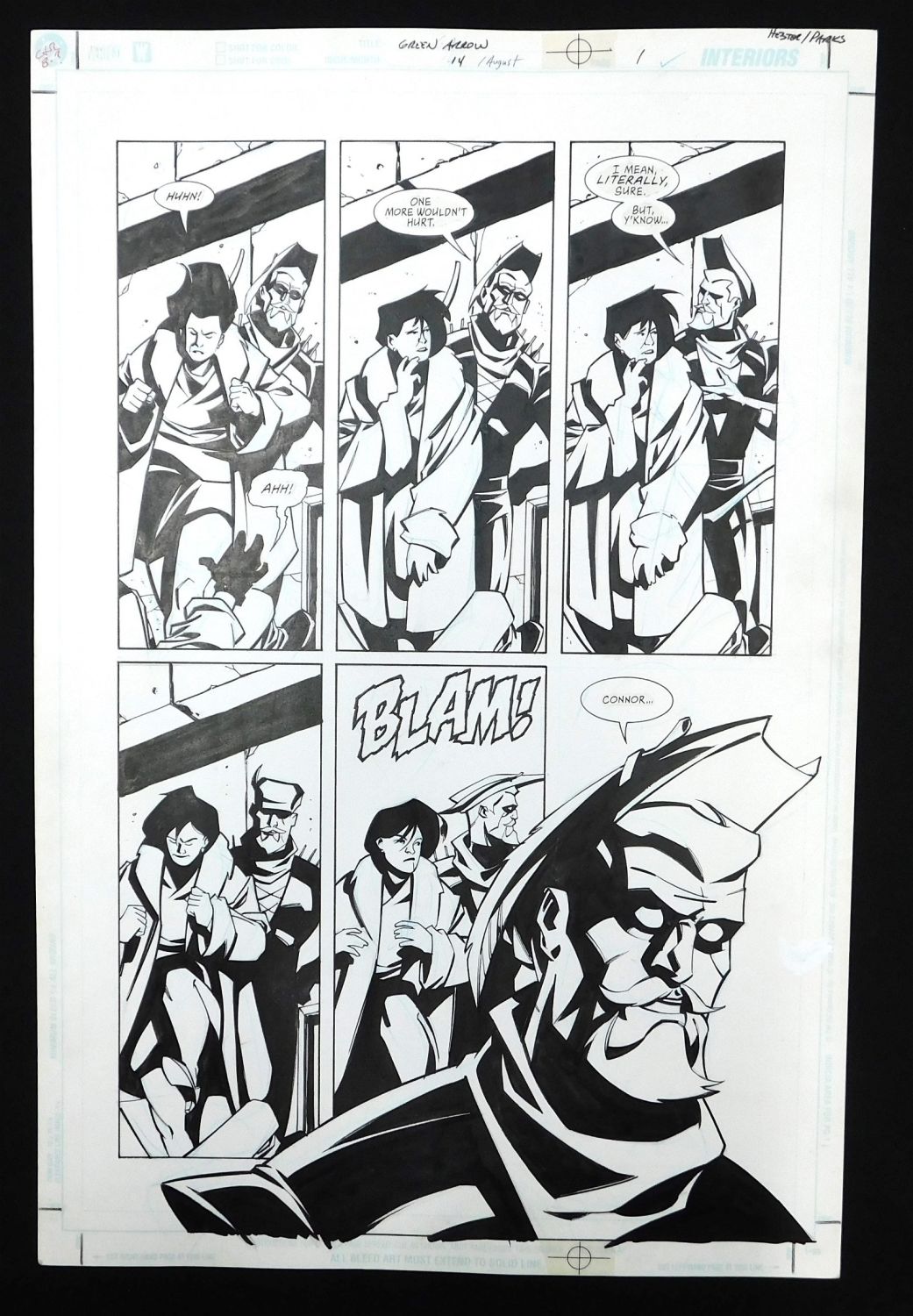 Original Comic Book Art – DC/Vertigo – Green Arrow – Issue #14 Page 1. Penciler Phil Hester. Inker Ande Parks. Includes images of Oliver Queen Green Arrow. Also has statted on dialog bubbles. All lots in this sale are from the personal collection of Kevin Smith. All items come with a Bodnar’s Auction COA autographed by Kevin Smith. Join Us Live on Sale Day as Kevin Smith will be our guest caller and will talk about each piece. All invoices must be paid within 24 hours of the sale. We offer multiple shipping options, please read the terms as they have changed. We also offer Pick-Ups Thursday, Friday, Saturday, and Monday immediately following the sale. BY APPOINTMENT ONLY. PLEASE READ THE NEW TERMS!!!