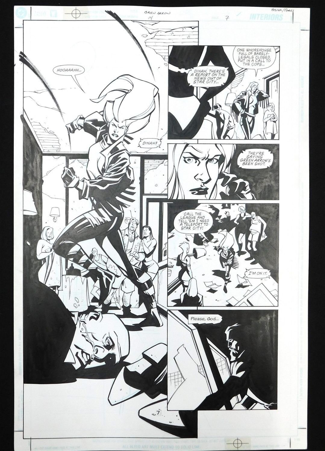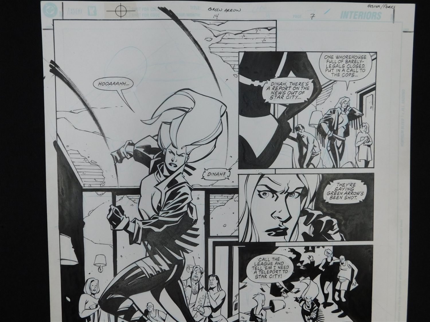 Original Comic Book Art – DC/Vertigo – Green Arrow – Issue #14 Page 7. Penciler Phil Hester. Inker Ande Parks. Includes image of Black Canary and Green Arrow Oliver Queen. Also has statted on dialog bubbles. All lots in this sale are from the personal collection of Kevin Smith. All items come with a Bodnar’s Auction COA autographed by Kevin Smith. Join Us Live on Sale Day as Kevin Smith will be our guest caller and will talk about each piece. All invoices must be paid within 24 hours of the sale. We offer multiple shipping options, please read the terms as they have changed. We also offer Pick-Ups Thursday, Friday, Saturday, and Monday immediately following the sale. BY APPOINTMENT ONLY. PLEASE READ THE NEW TERMS!!!