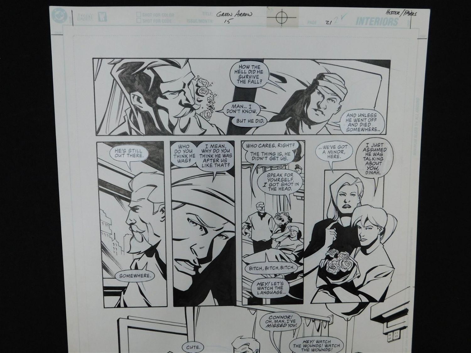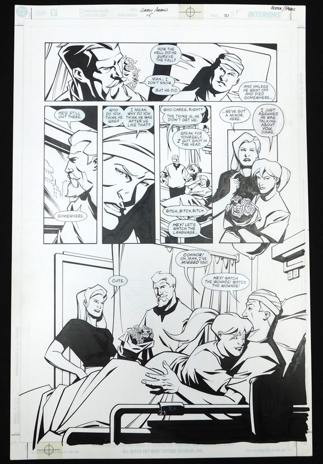 Original Comic Book Art – DC/Vertigo – Green Arrow – Issue #15 Page 21. Penciler Phil Hester. Inker Ande Parks. Includes images of Green Arrow Oliver Queen, Connor Hawke, and Black Canary. Also has statted on dialog bubbles. All lots in this sale are from the personal collection of Kevin Smith. All items come with a Bodnar’s Auction COA autographed by Kevin Smith. Join Us Live on Sale Day as Kevin Smith will be our guest caller and will talk about each piece. All invoices must be paid within 24 hours of the sale. We offer multiple shipping options, please read the terms as they have changed. We also offer Pick-Ups Thursday, Friday, Saturday, and Monday immediately following the sale. BY APPOINTMENT ONLY. PLEASE READ THE NEW TERMS!!!