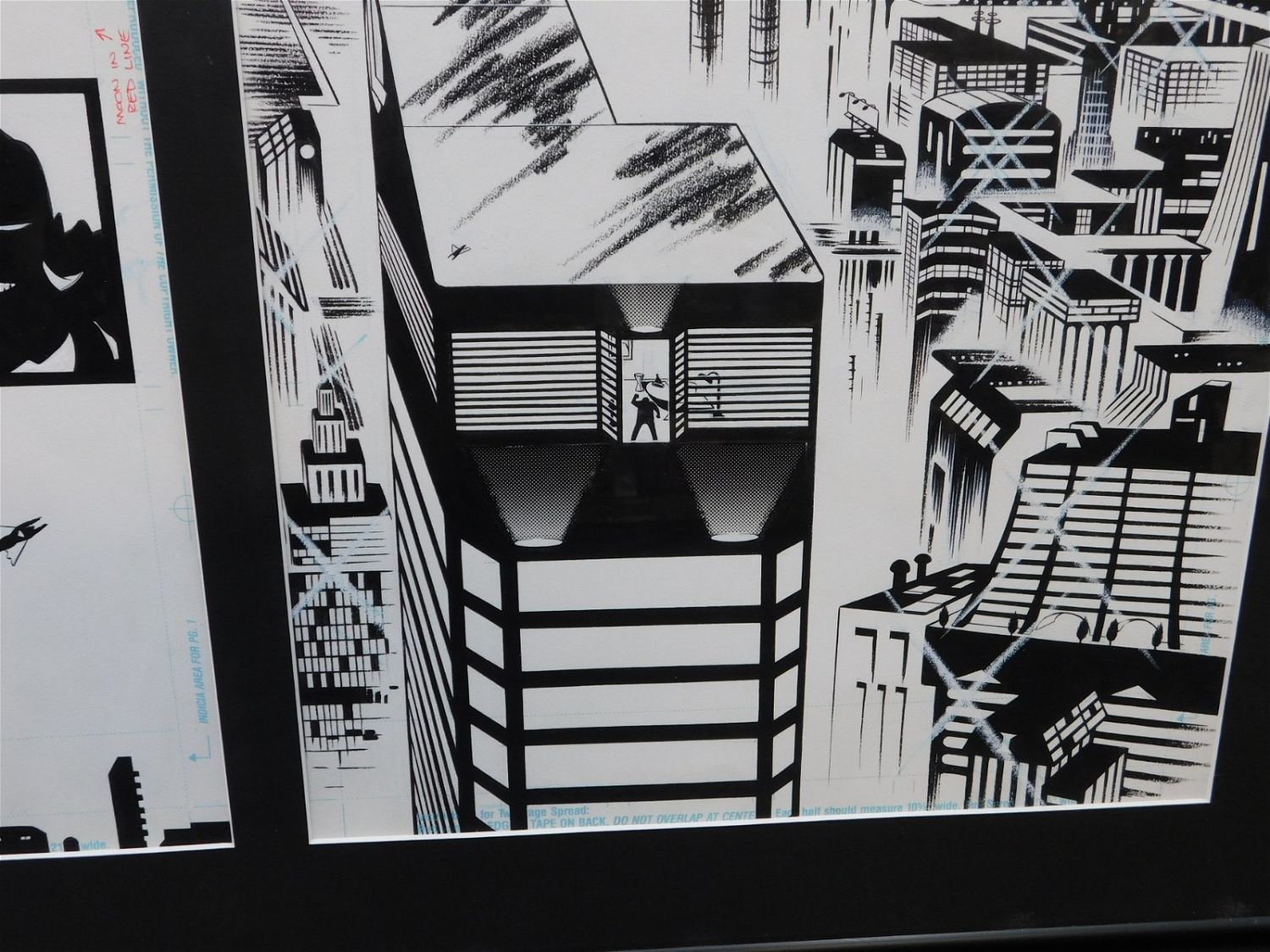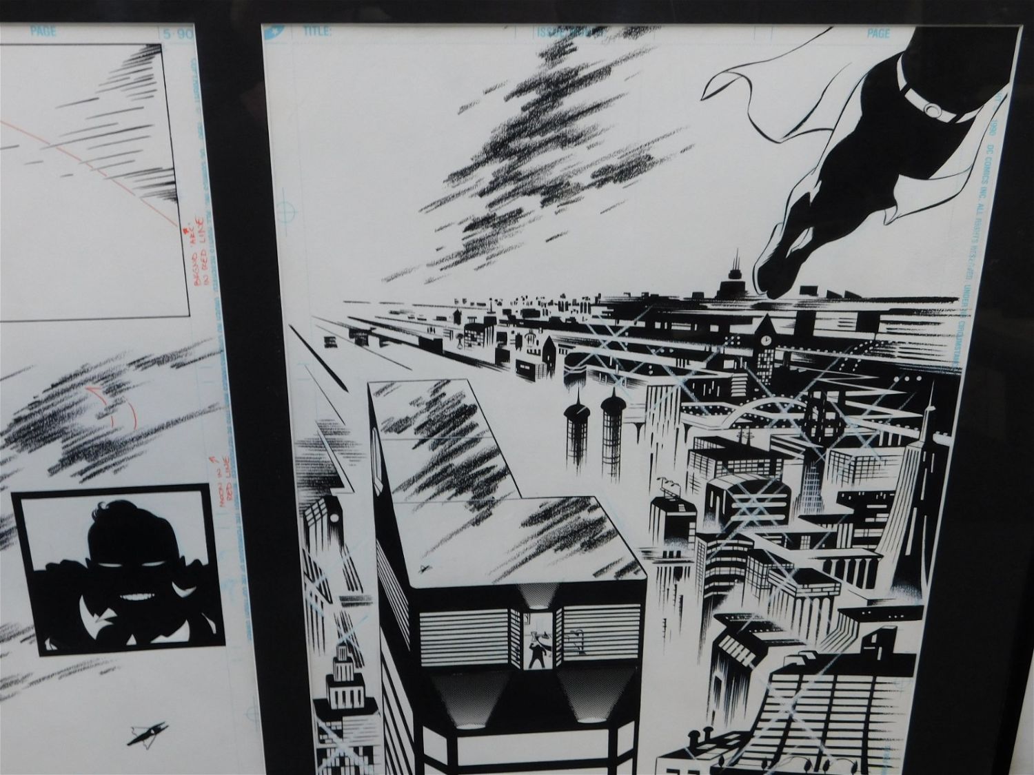 Original Comic Book Art Superman – Two Consecutive Pages. 1/3rd Splash Page and other is Full Splash Page. Unknown Issue and Page. Art by Steve Rude. Has images of Lex Luthor and Superman Silhouettes. Professionally Framed and Matted. Measures 20" tall x 27" wide. All lots in this sale are from the personal collection of Kevin Smith. All items come with a Bodnar’s Auction COA autographed by Kevin Smith. Join Us Live on Sale Day as Kevin Smith will be our guest caller and will talk about each piece. All invoices must be paid within 24 hours of the sale. We offer multiple shipping options, please read the terms as they have changed. We also offer Pick-Ups Thursday, Friday, Saturday, and Monday immediately following the sale. BY APPOINTMENT ONLY. PLEASE READ THE NEW TERMS!!!