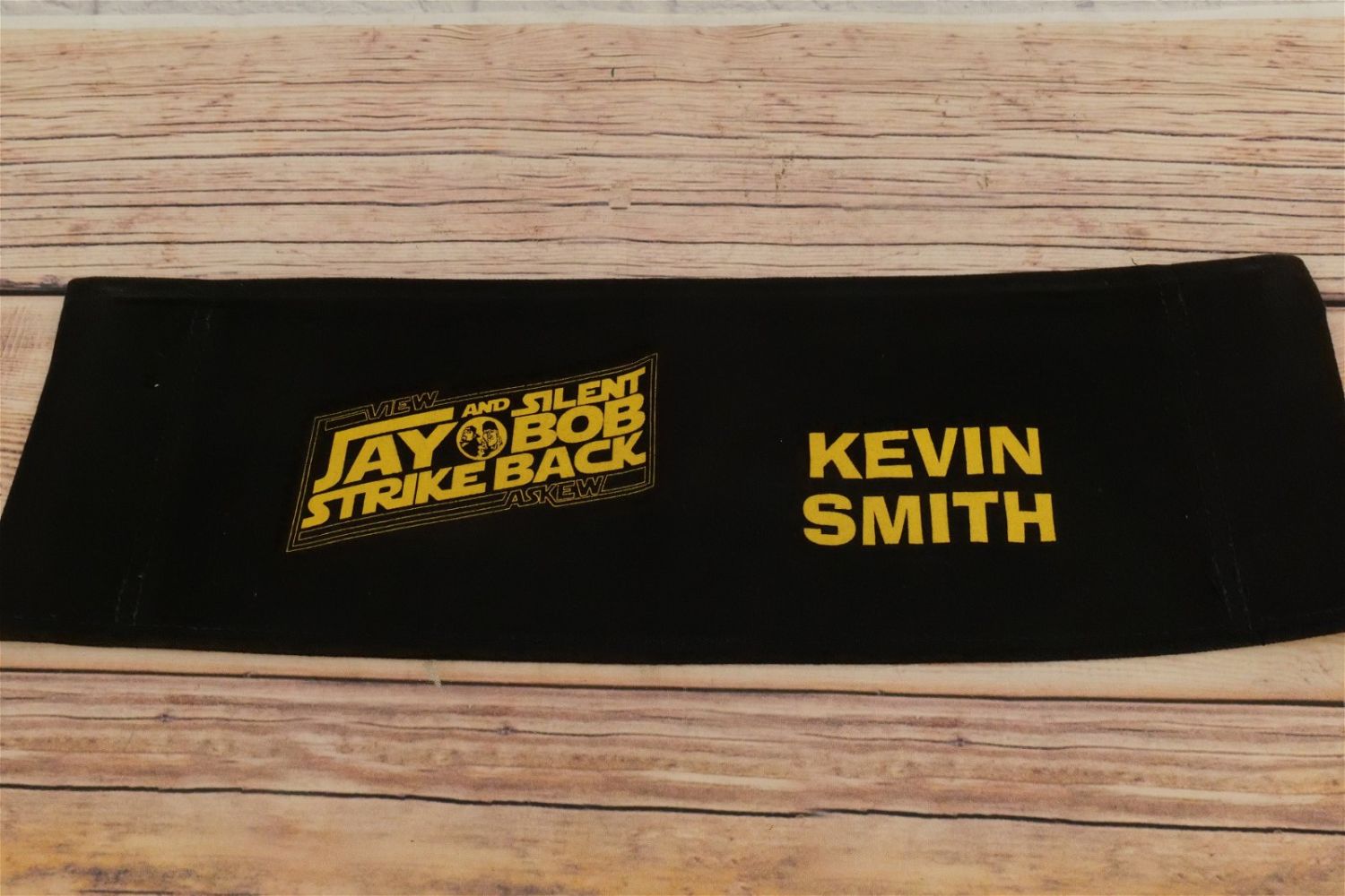Autographed Kevin Smith Director Chair Back for Jay and Silent Bob Strike Back. (To be autographed by Kevin on sale day). All lots in this sale are from the personal collection of Kevin Smith. All items come with a Bodnar’s Auction COA autographed by Kevin Smith. Join Us Live on Sale Day as Kevin Smith will be our guest caller and will talk about each piece. All invoices must be paid within 24 hours of the sale. We offer multiple shipping options, please read the terms as they have changed. We also offer Pick-Ups Thursday, Friday, Saturday, and Monday immediately following the sale. BY APPOINTMENT ONLY. PLEASE READ THE NEW TERMS!!!
