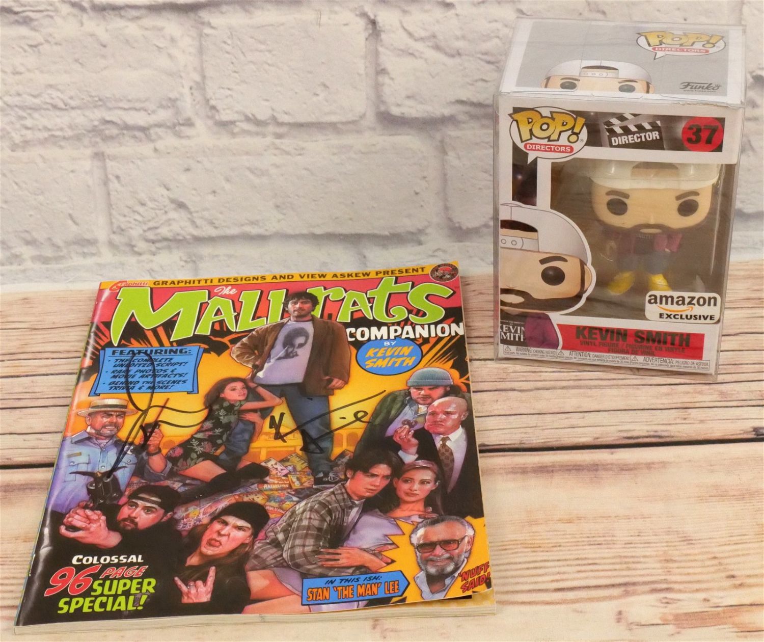 Lot of 2 Kevin Smith Items including The Mallrats Companion Book – Autographed by Kevin Smith and Jay Mewes and a Funko Pop – Kevin Smith #37 – Amazon Exclusive. All lots in this sale are from the personal collection of Kevin Smith. All items come with a Bodnar’s Auction COA autographed by Kevin Smith. Join Us Live on Sale Day as Kevin Smith will be our guest caller and will talk about each piece. All invoices must be paid within 24 hours of the sale. We offer multiple shipping options, please read the terms as they have changed. We also offer Pick-Ups Thursday, Friday, Saturday, and Monday immediately following the sale. BY APPOINTMENT ONLY. PLEASE READ THE NEW TERMS!!!