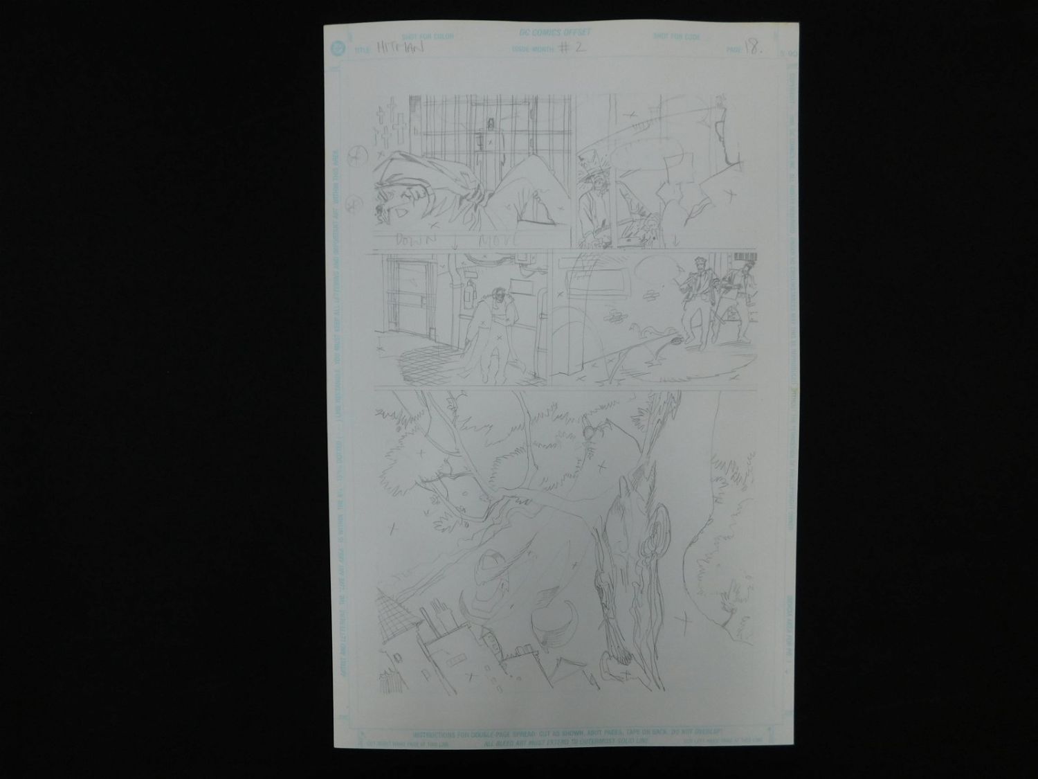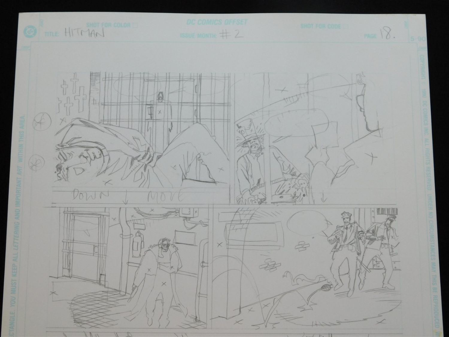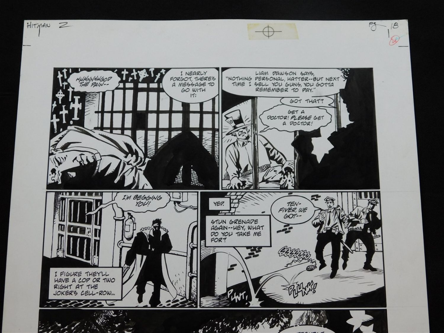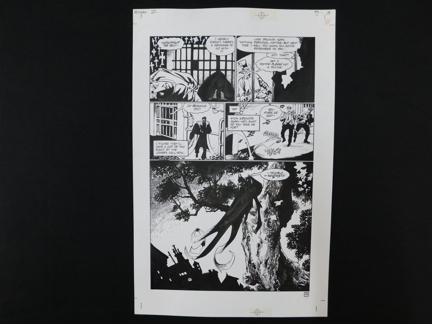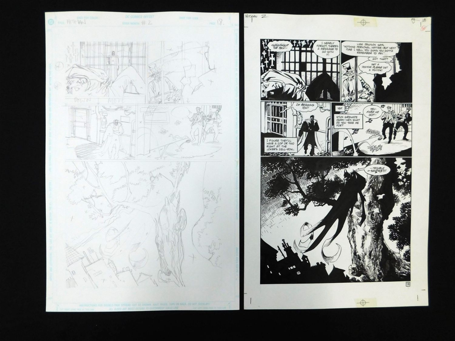 Lot of 2 Pieces of Original Comic Book Art DC Hitman Issue #2 Page 18. Includes preliminary pencils and final inked art. Art is by John McCrea. Includes one image of Hitman, one image of Mad Hatter, Mention of The Joker, and Large Image of Batman. Set in Arkham Asylum. All lots in this sale are from the personal collection of Kevin Smith. All items come with a Bodnar’s Auction COA autographed by Kevin Smith. Join Us Live on Sale Day as Kevin Smith will be our guest caller and will talk about each piece. All invoices must be paid within 24 hours of the sale. We offer multiple shipping options, please read the terms as they have changed. We also offer Pick-Ups Thursday, Friday, Saturday, and Monday immediately following the sale. BY APPOINTMENT ONLY. PLEASE READ THE NEW TERMS!!!