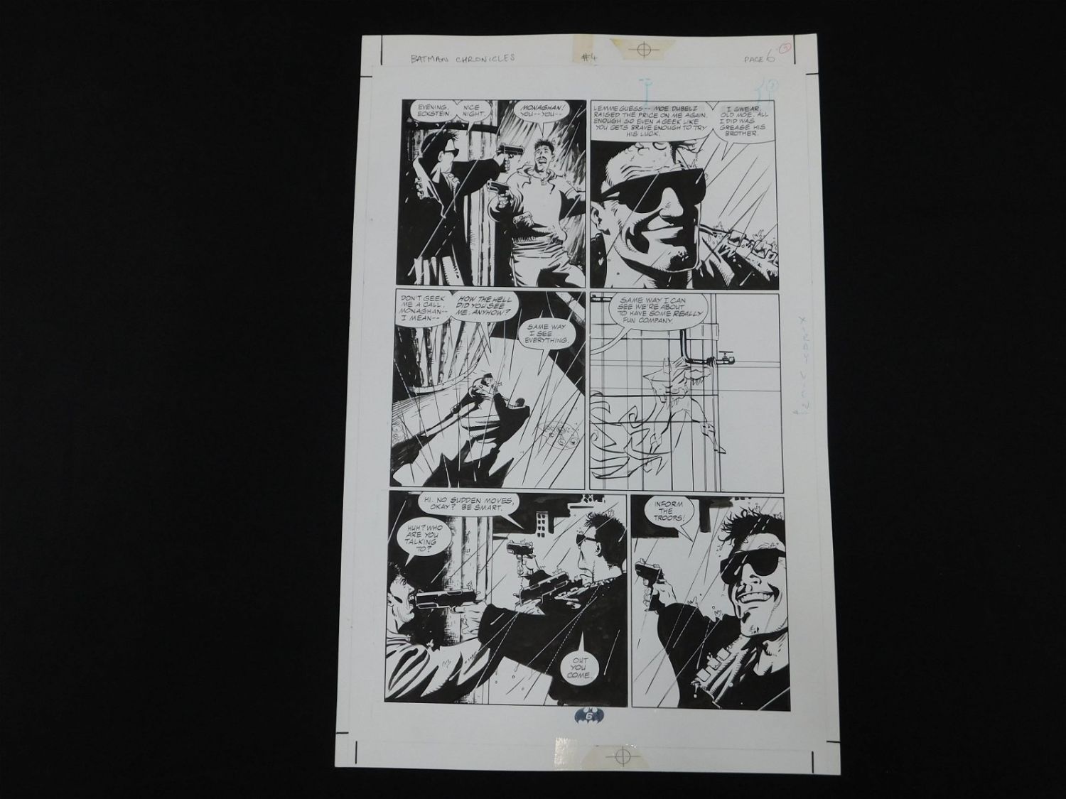 Lot of 2 Pieces of Original Comic Book Art DC Batman Chronicles Issue #4 Page 6. Includes preliminary pencils and final inked art. Art is by John McCrea. Includes multiple images of The Hitman and Martin Eckstein. Also includes one image of The Batman. All lots in this sale are from the personal collection of Kevin Smith. All items come with a Bodnar’s Auction COA autographed by Kevin Smith. Join Us Live on Sale Day as Kevin Smith will be our guest caller and will talk about each piece. All invoices must be paid within 24 hours of the sale. We offer multiple shipping options, please read the terms as they have changed. We also offer Pick-Ups Thursday, Friday, Saturday, and Monday immediately following the sale. BY APPOINTMENT ONLY. PLEASE READ THE NEW TERMS!!!