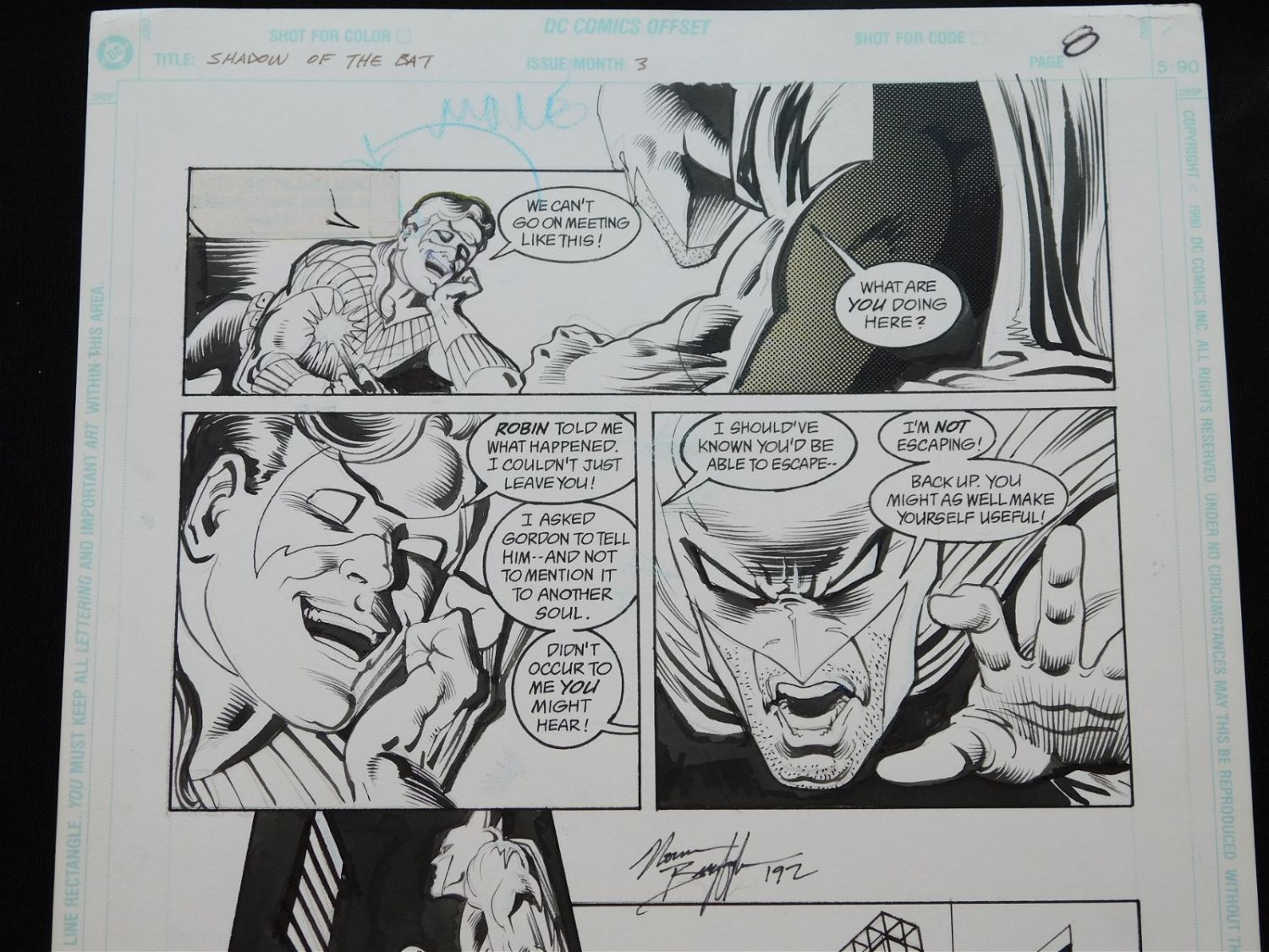 Original Comic Book Art DC Batman Shadow of the Bat Issue #3 Page 8. Artist Norm Breyfogle. Signed by Artist. Includes multiple images of Batman and Nightwing. All lots in this sale are from the personal collection of Kevin Smith. All items come with a Bodnar’s Auction COA autographed by Kevin Smith. Join Us Live on Sale Day as Kevin Smith will be our guest caller and will talk about each piece. All invoices must be paid within 24 hours of the sale. We offer multiple shipping options, please read the terms as they have changed. We also offer Pick-Ups Thursday, Friday, Saturday, and Monday immediately following the sale. BY APPOINTMENT ONLY. PLEASE READ THE NEW TERMS!!!