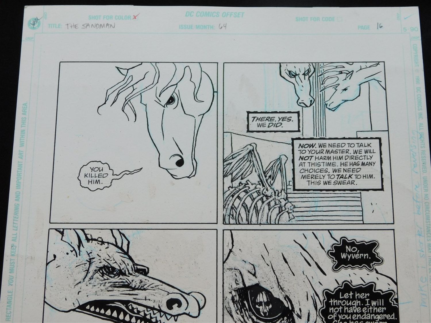 Original Comic Book Art DC/Vertigo Sandman Issue #64 Page 16. Penciled & Inked by Teddy Kristiansen. Signed by Artist. Includes image of Morpheus (Dream), The Furies, and Gryphon (Bones), Hippogriff, and Wyvern. All lots in this sale are from the personal collection of Kevin Smith. All items come with a Bodnar’s Auction COA autographed by Kevin Smith. Join Us Live on Sale Day as Kevin Smith will be our guest caller and will talk about each piece. All invoices must be paid within 24 hours of the sale. We offer multiple shipping options, please read the terms as they have changed. We also offer Pick-Ups Thursday, Friday, Saturday, and Monday immediately following the sale. BY APPOINTMENT ONLY. PLEASE READ THE NEW TERMS!!!