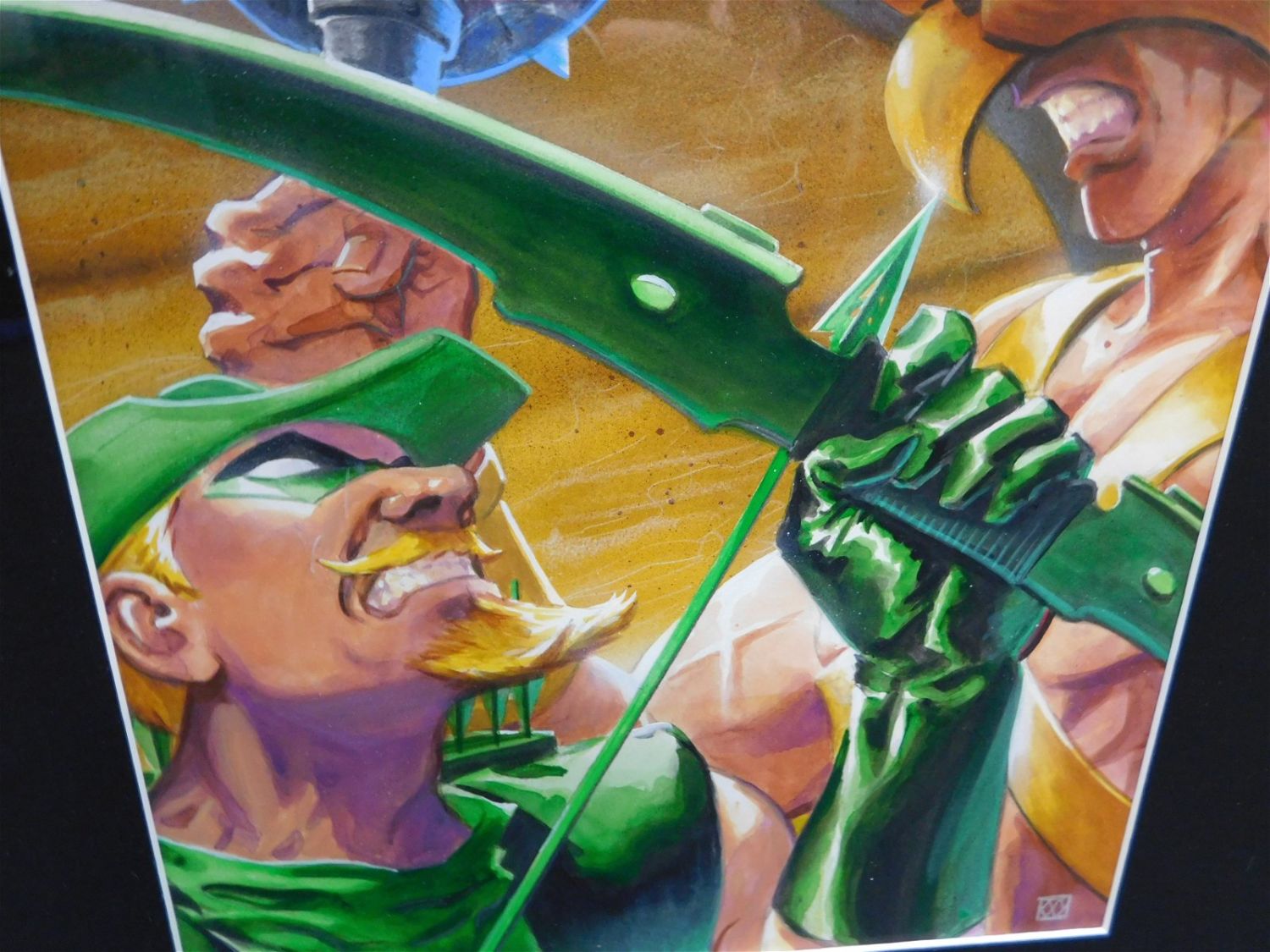 Original Comic Book Cover Art – Colored Mixed Media – Kevin Smith’s Green Arrow Issue #12. Cover Art by Matt Wagner. Professionally Framed and Matted. Measures 18.75" tall x 14" wide. All lots in this sale are from the personal collection of Kevin Smith. All items come with a Bodnar’s Auction COA autographed by Kevin Smith. Join Us Live on Sale Day as Kevin Smith will be our guest caller and will talk about each piece. All invoices must be paid within 24 hours of the sale. We offer multiple shipping options, please read the terms as they have changed. We also offer Pick-Ups Thursday, Friday, Saturday, and Monday immediately following the sale. BY APPOINTMENT ONLY. PLEASE READ THE NEW TERMS!!!