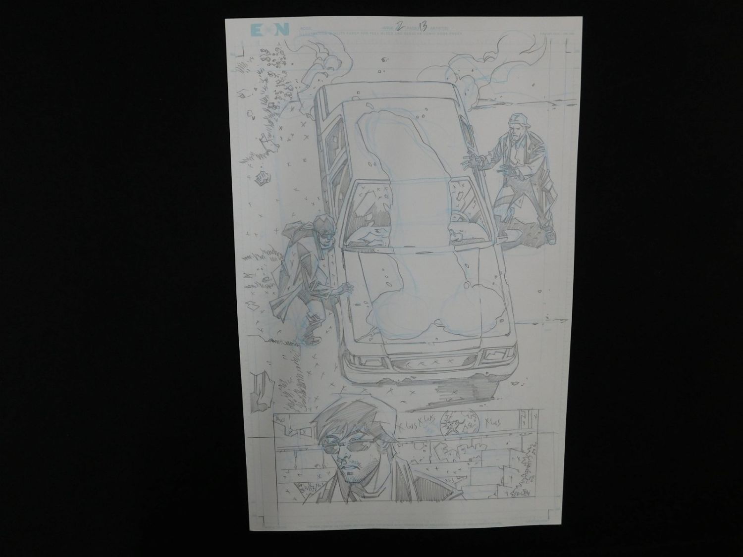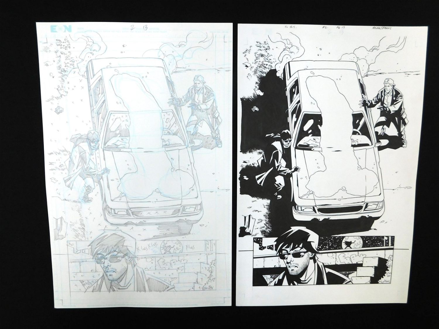 Original Comic Book Art – Dark Horse Kevin Smith’s Quick Stops Issue #2 Page 13. Includes Preliminary Pencils and Inks. Penciler Phil Hester. Inker Ande Parks. All lots in this sale are from the personal collection of Kevin Smith. All items come with a Bodnar’s Auction COA autographed by Kevin Smith. Join Us Live on Sale Day as Kevin Smith will be our guest caller and will talk about each piece. All invoices must be paid within 24 hours of the sale. We offer multiple shipping options, please read the terms as they have changed. We also offer Pick-Ups Thursday, Friday, Saturday, and Monday immediately following the sale. BY APPOINTMENT ONLY. PLEASE READ THE NEW TERMS!!!