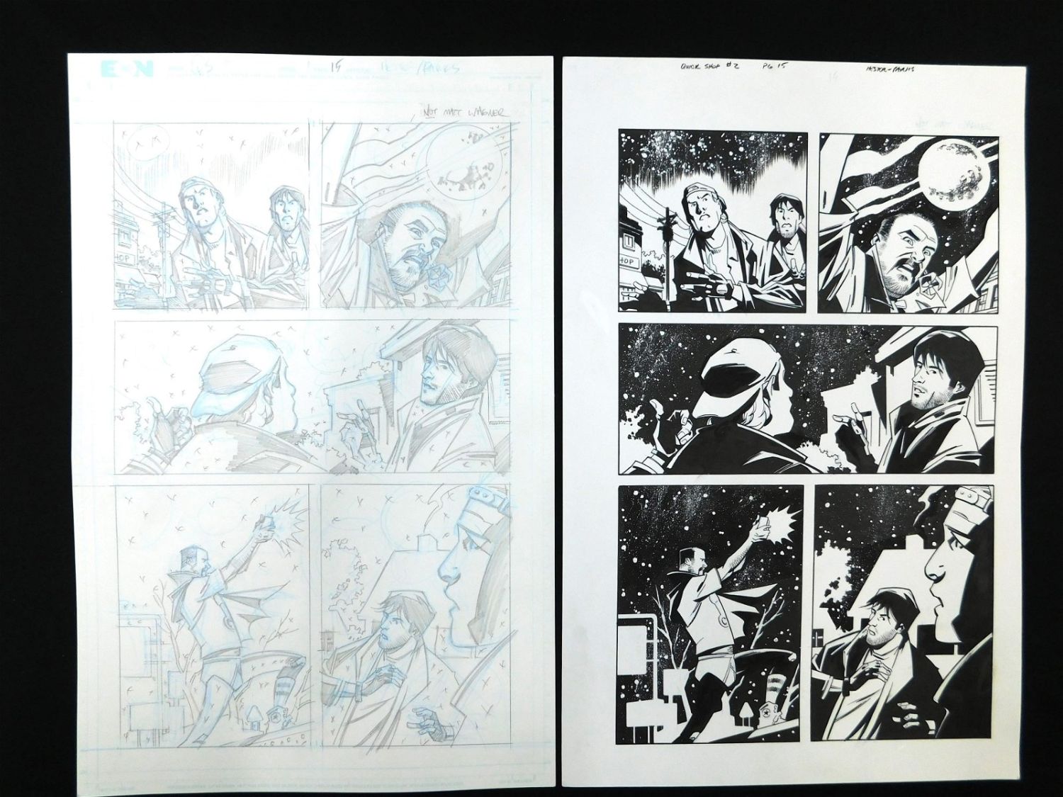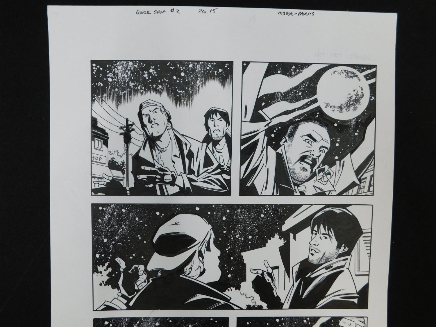 Original Comic Book Art – Dark Horse Kevin Smith’s Quick Stops Issue #2 Page 15. Includes Preliminary Pencils and Inks. Penciler Phil Hester. Inker Ande Parks. All lots in this sale are from the personal collection of Kevin Smith. All items come with a Bodnar’s Auction COA autographed by Kevin Smith. Join Us Live on Sale Day as Kevin Smith will be our guest caller and will talk about each piece. All invoices must be paid within 24 hours of the sale. We offer multiple shipping options, please read the terms as they have changed. We also offer Pick-Ups Thursday, Friday, Saturday, and Monday immediately following the sale. BY APPOINTMENT ONLY. PLEASE READ THE NEW TERMS!!!