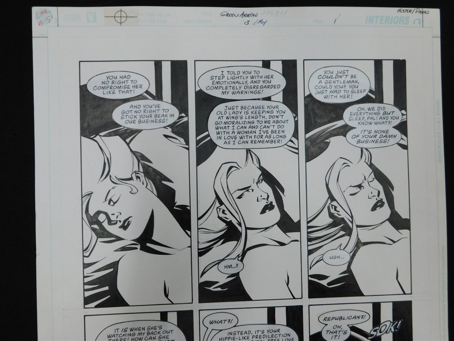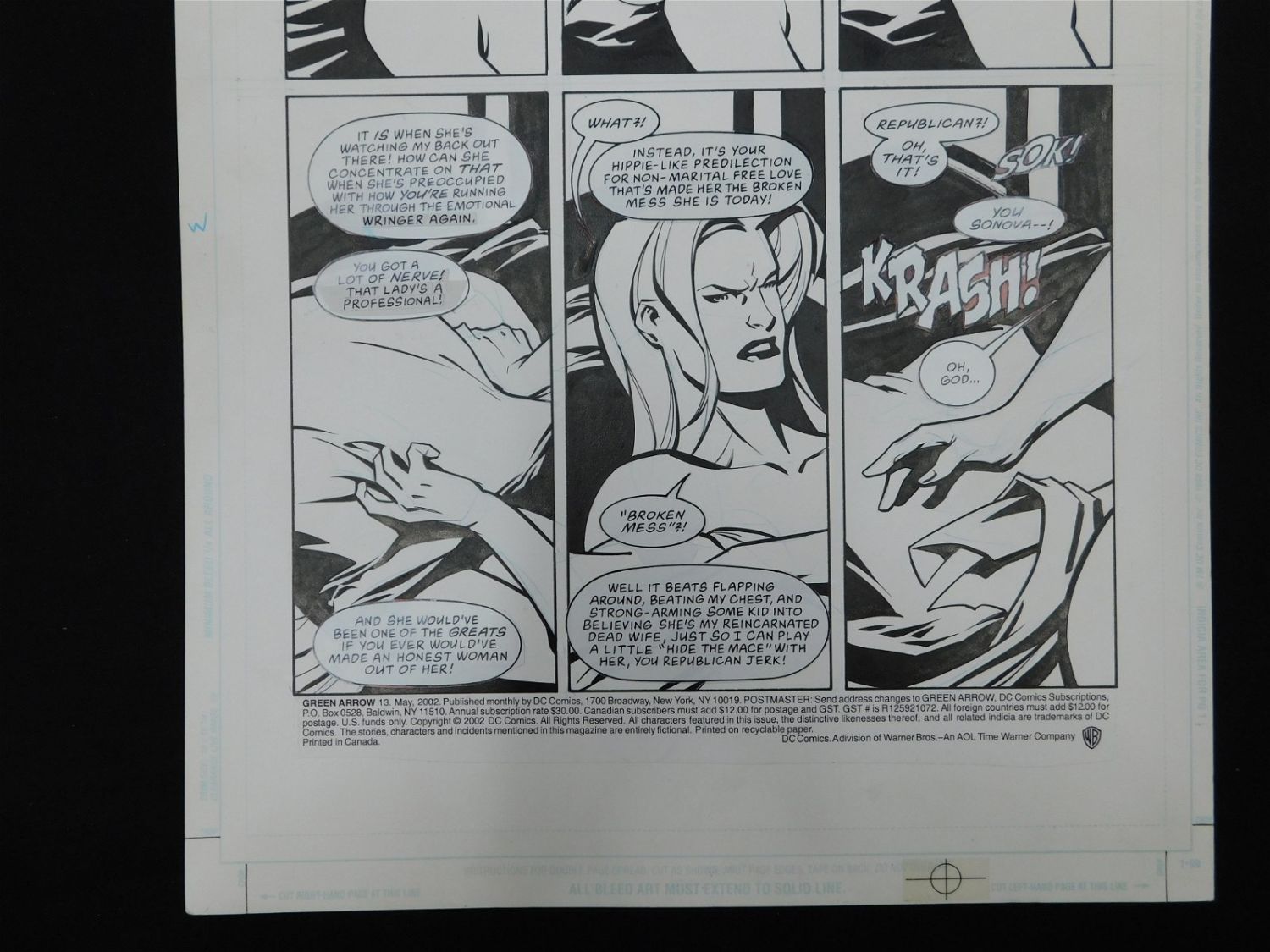 Original Comic Book Art – DC/Vertigo – Green Arrow – Issue #13 Page 1. Penciler Phil Hester. Inker Ande Parks. Has images of Black Canary. Also has statted on dialog bubbles. All lots in this sale are from the personal collection of Kevin Smith. All items come with a Bodnar’s Auction COA autographed by Kevin Smith. Join Us Live on Sale Day as Kevin Smith will be our guest caller and will talk about each piece. All invoices must be paid within 24 hours of the sale. We offer multiple shipping options, please read the terms as they have changed. We also offer Pick-Ups Thursday, Friday, Saturday, and Monday immediately following the sale. BY APPOINTMENT ONLY. PLEASE READ THE NEW TERMS!!!