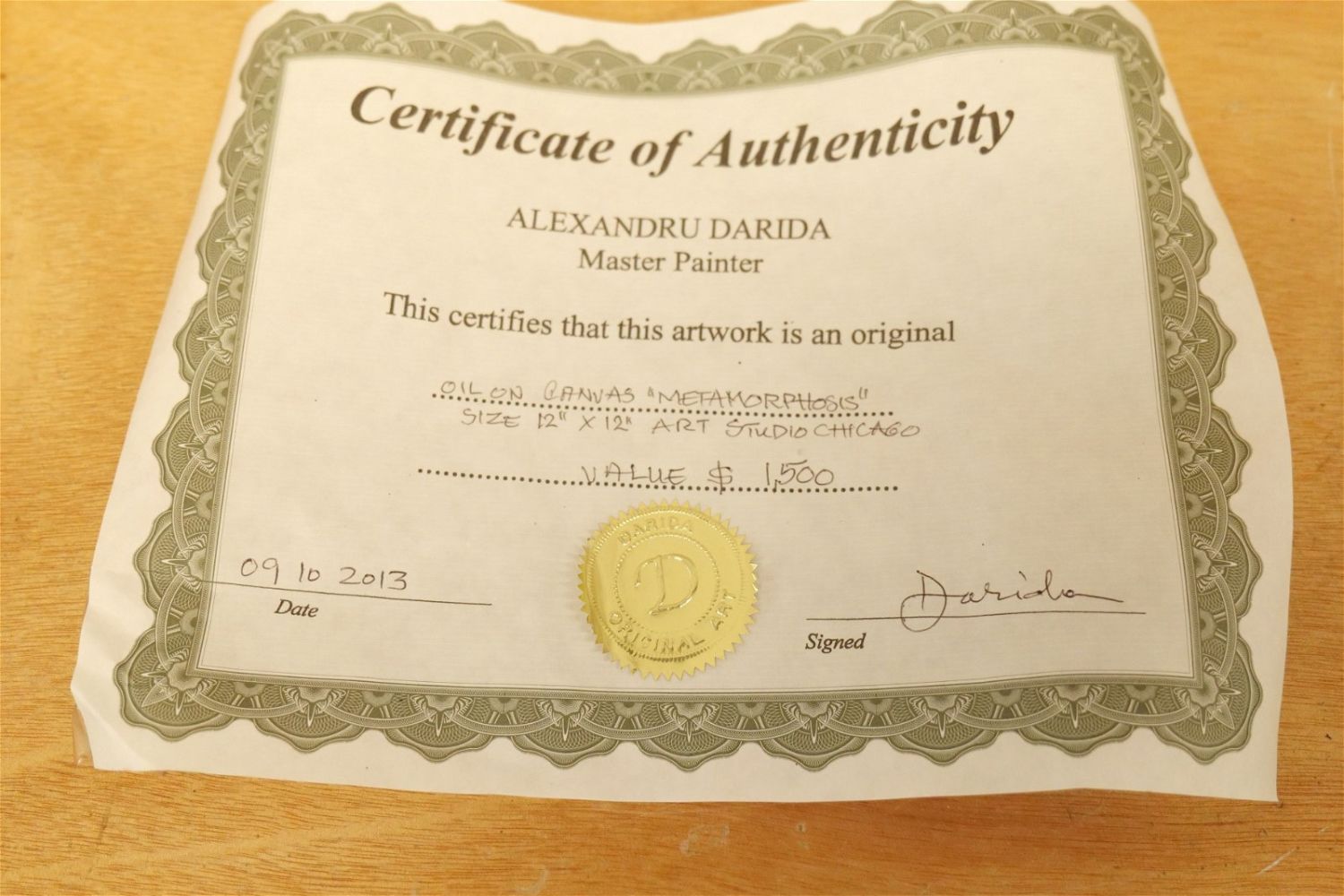 Oil on Canvas "Metamorphosis" from Art Studio Chicago. Artist Signed Darida. Comes with Certificate. Measures 12" tall x 12" wide. All invoices must be paid for within 24 hours. We offer multiple shipping options, please read the terms as they have changed. We also offer pick ups on Friday, Saturday and Monday immediately following the sale BY APPOINTMENT ONLY. PLEASE READ THE TERMS!!!