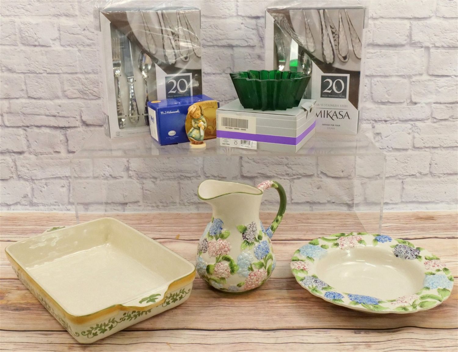 Lot of Various Collectibles and Giftware including Marquis Green Bowl in Box, Hummel Heavenly Angel in Box, (2) Mikasa Flatware Sets – New, Temptations Pitcher with Underplate and Lidia Casserole Dish. All invoices must be paid for within 24 hours. We offer multiple shipping options, please read the terms as they have changed. We also offer pick ups on Friday, Saturday and Monday immediately following the sale BY APPOINTMENT ONLY. PLEASE READ THE TERMS!!!