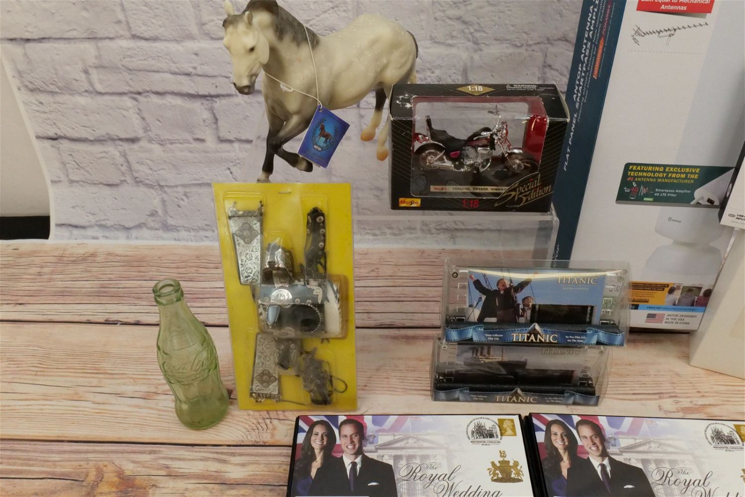 Lot of Mixed Items including Breyer Horse, Flat Panel Smartpass, Royal Wedding Commemorative Covers, Titanic Film Cels and More. All invoices must be paid for within 24 hours. We offer multiple shipping options, please read the terms as they have changed. We also offer pick ups on Friday, Saturday and Monday immediately following the sale BY APPOINTMENT ONLY. PLEASE READ THE TERMS!!!