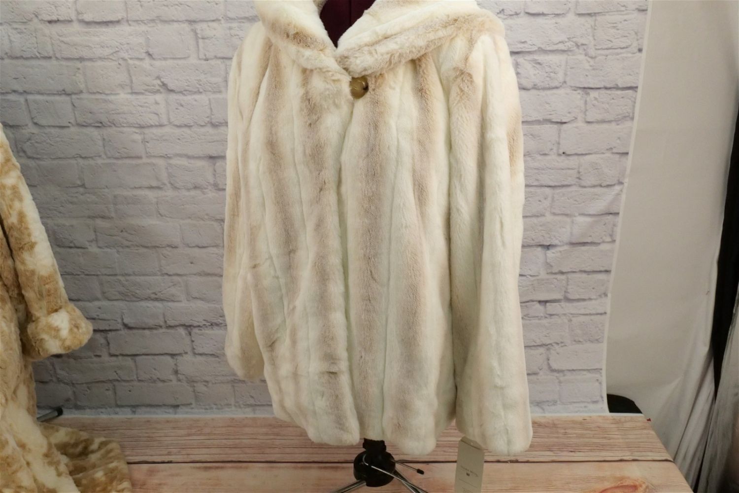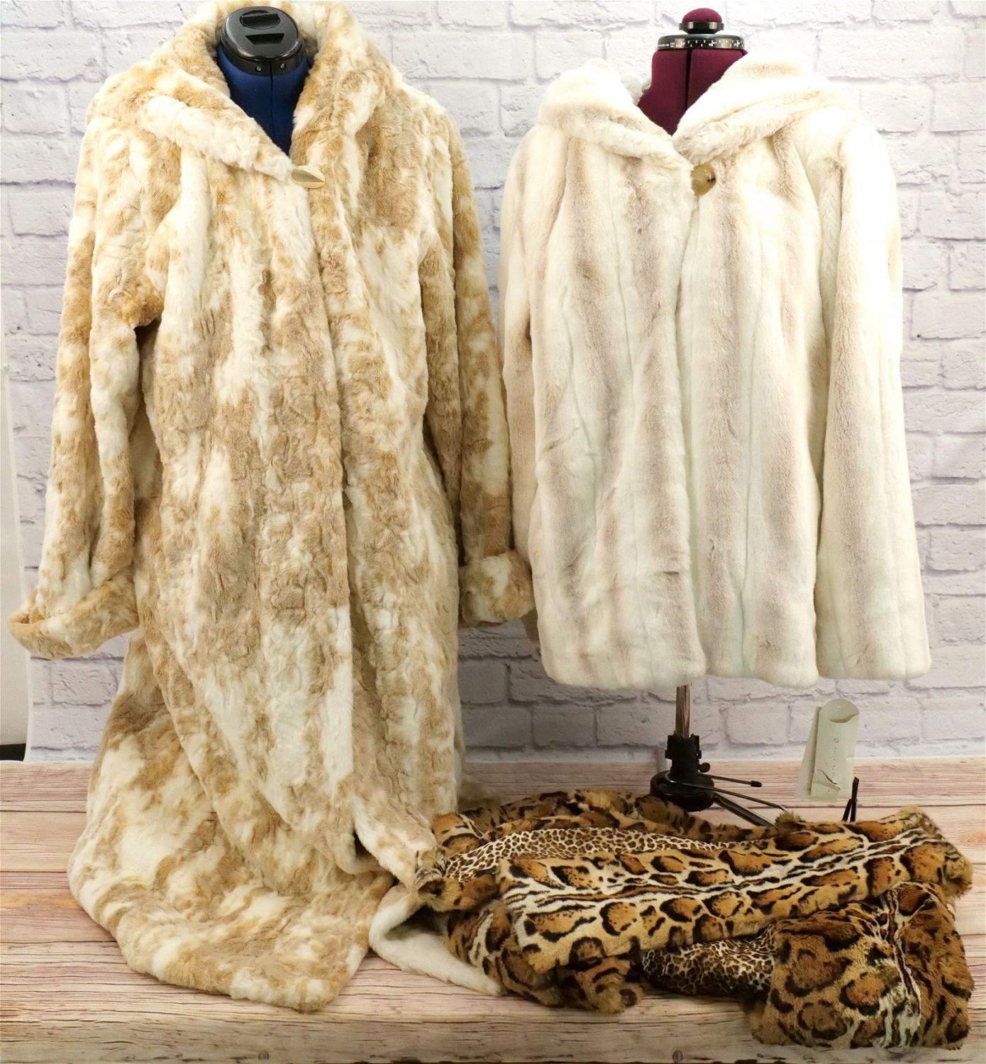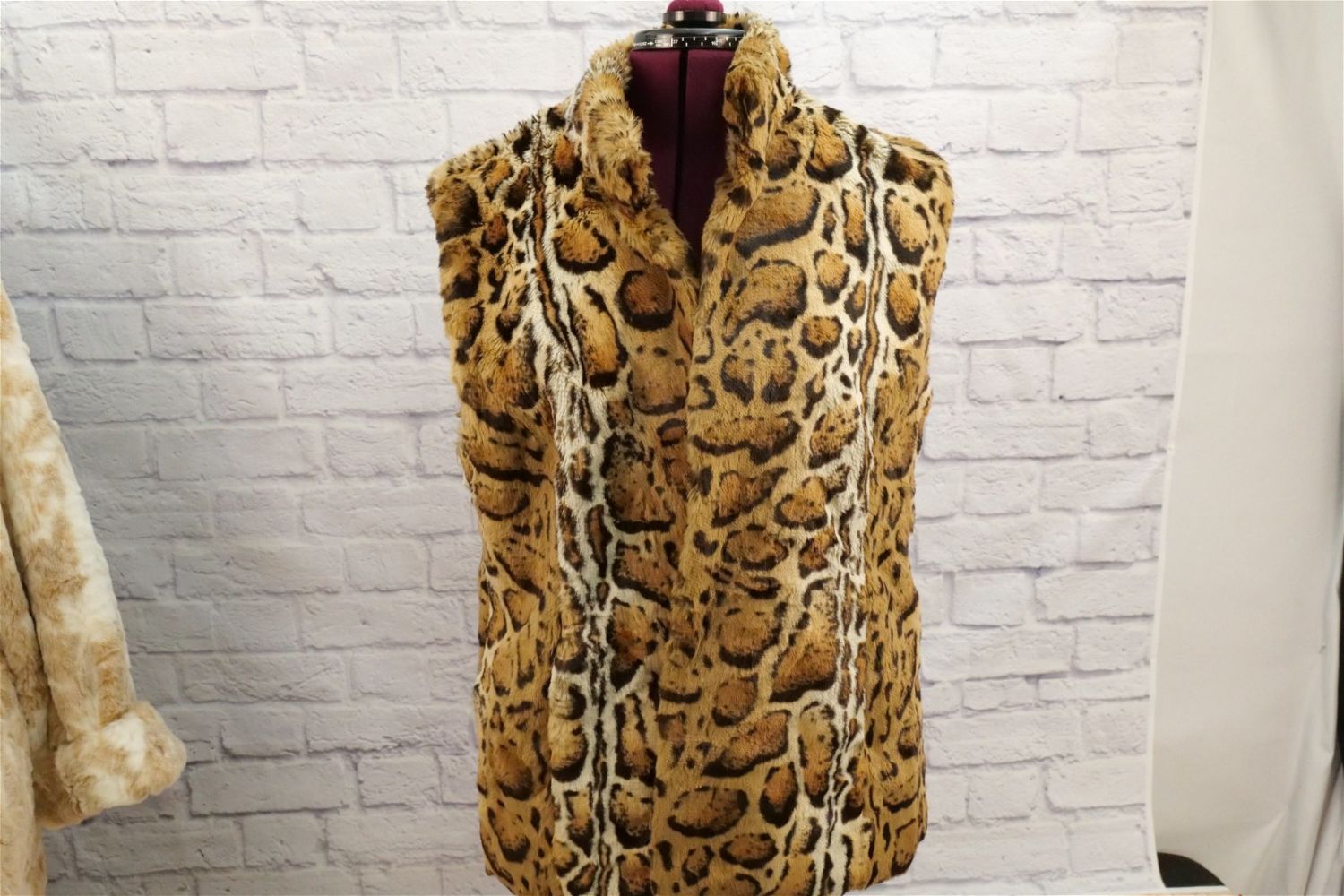 Lot of 3 Faux Fur Coats and Vest Set. Including (2) Pamela McCoy – One with Tag – Size Large – One long and other short – both have hoods and Timeless Leopard Print Vest with Matching Scarf – Size XL. All invoices must be paid for within 24 hours. We offer multiple shipping options, please read the terms as they have changed. We also offer pick ups on Friday, Saturday and Monday immediately following the sale BY APPOINTMENT ONLY. PLEASE READ THE TERMS!!!