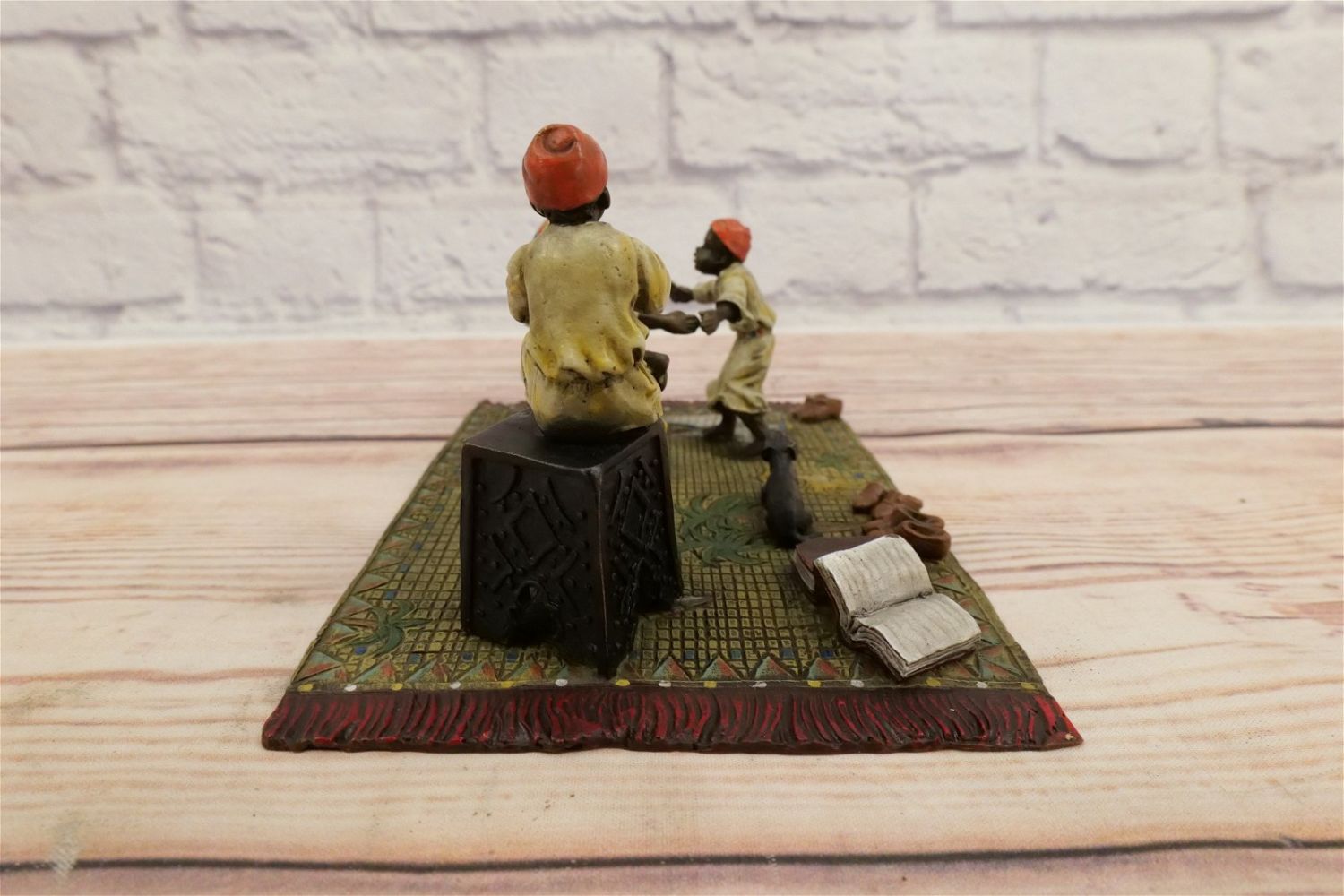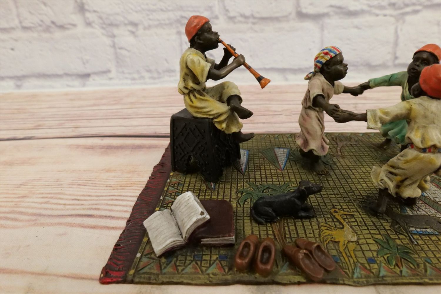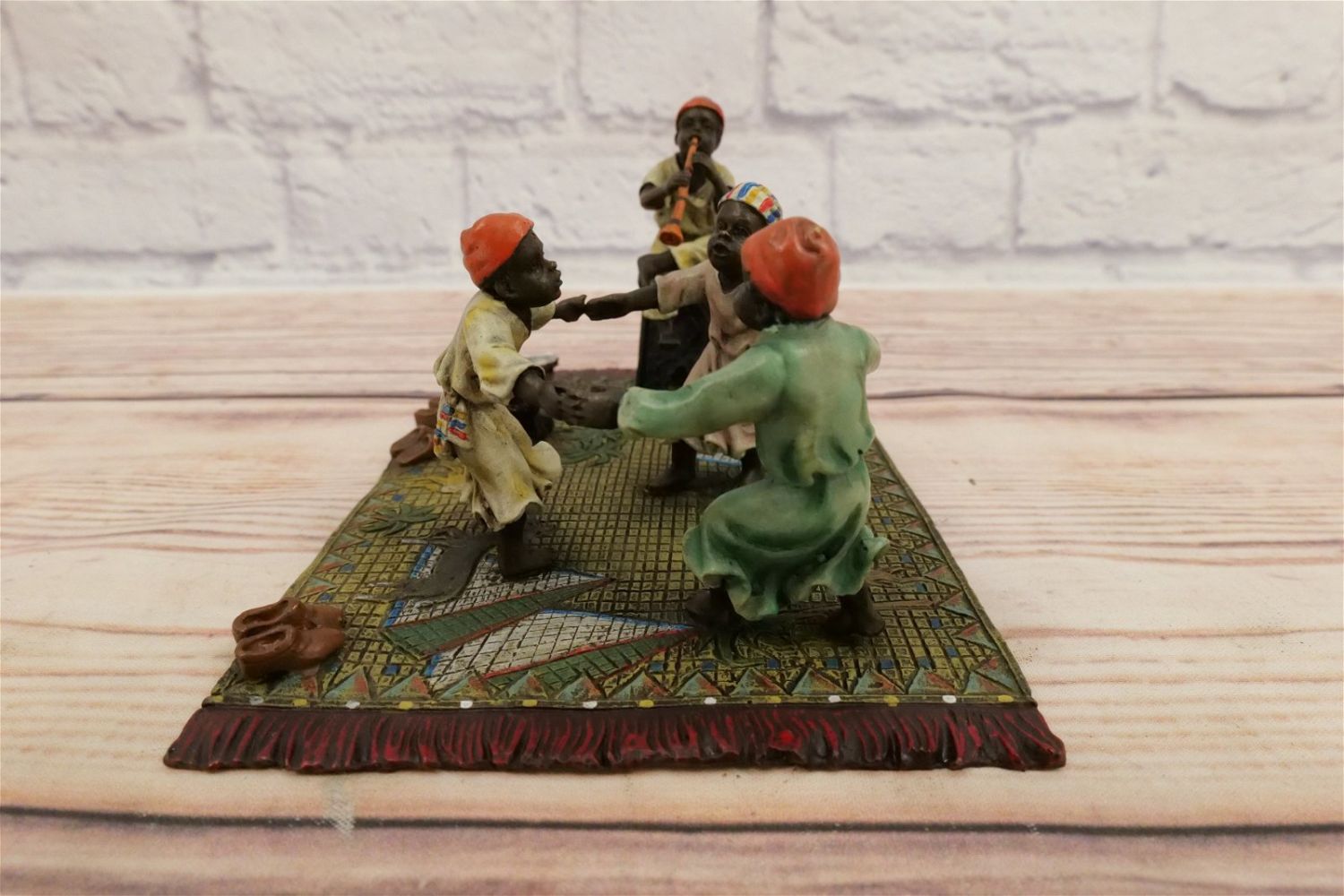 Cold Painted Vienna Style Bronze Statue depicting Dancing and Man playing Instrument. Contemporary Bronze in the manner of Bergmann. Measures 4" tall x 7.75" wide. All invoices must be paid for within 24 hours. We offer multiple shipping options, please read the terms as they have changed. We also offer pick ups on Friday, Saturday and Monday immediately following the sale BY APPOINTMENT ONLY. PLEASE READ THE TERMS!!!