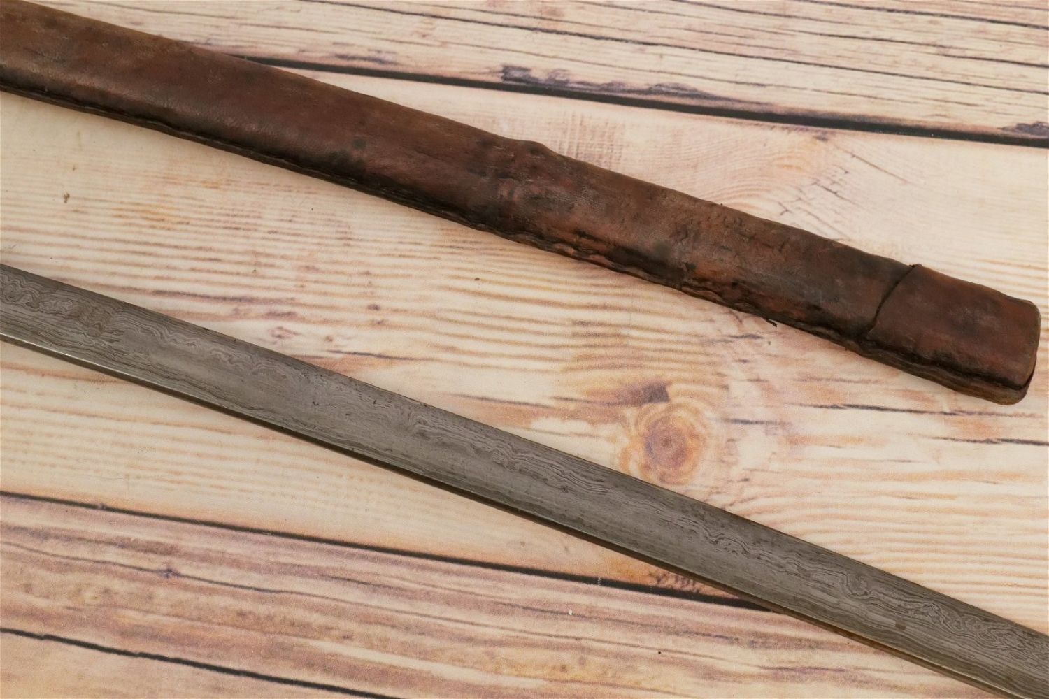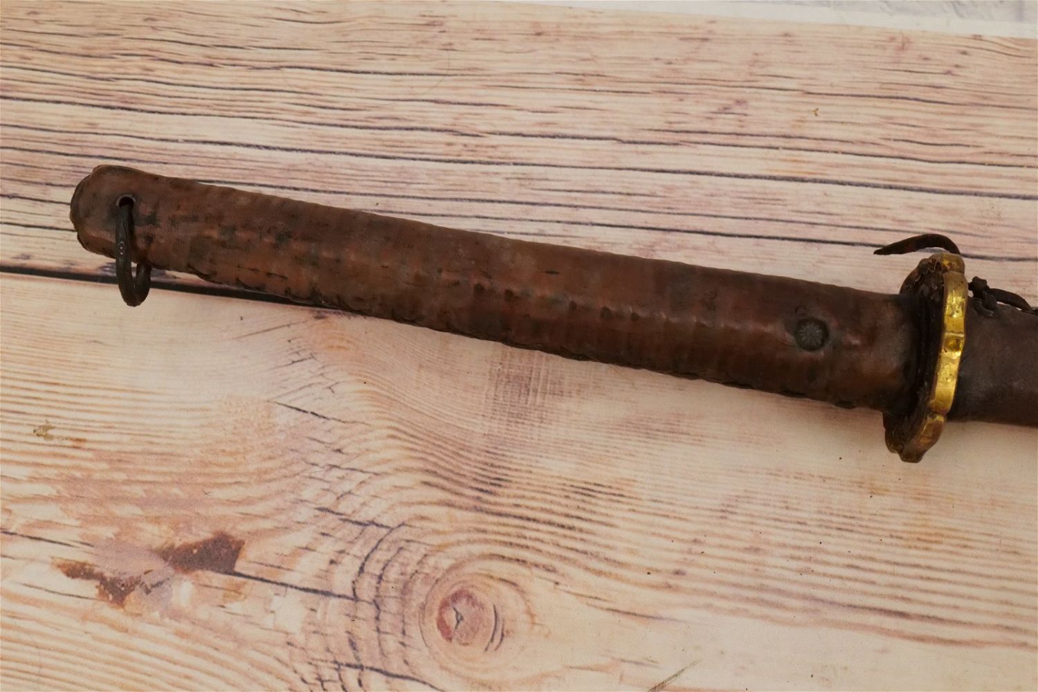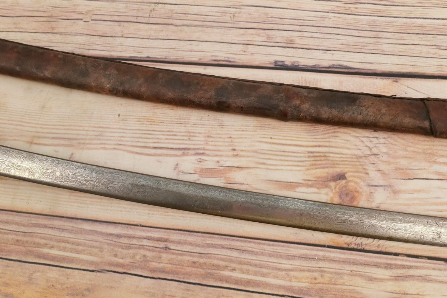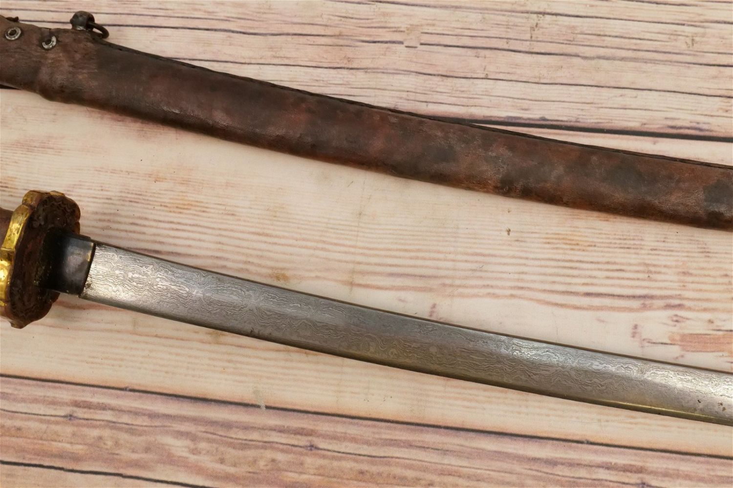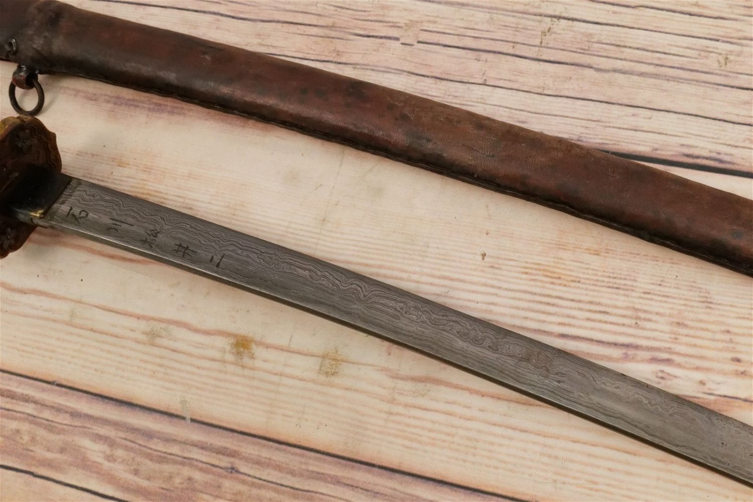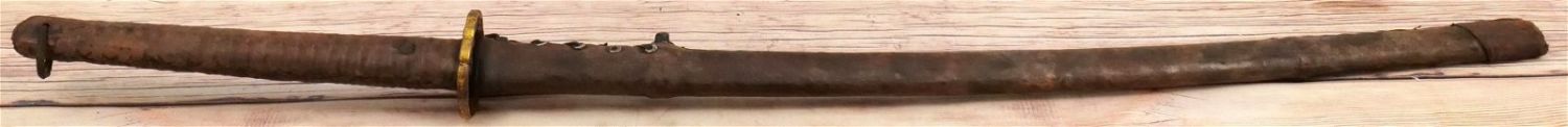 Samurai Style Sword. Has leather with a braided design on sheath and handle. Believed to be Contemporary Measures 42" long. All invoices must be paid for within 24 hours. We offer multiple shipping options, please read the terms as they have changed. We also offer pick ups on Friday, Saturday and Monday immediately following the sale BY APPOINTMENT ONLY. PLEASE READ THE TERMS!!!