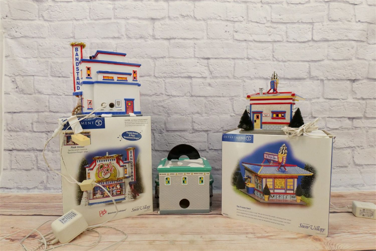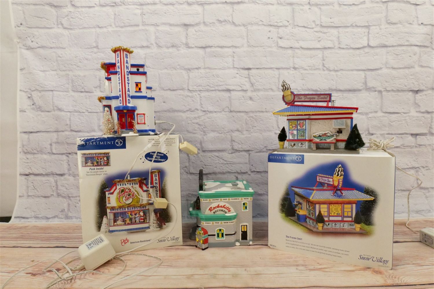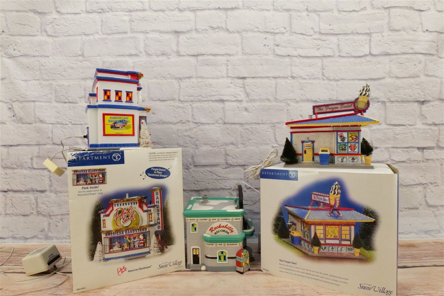 Lot of 3 Department 56 Snow Village Houses including The Frozen Swirl – Small Chip on Base, Dick Clark American Bandstand – Appears to be in good condition, and Rockabilly Records- Small Chips Noticed – No Outer Box. All Items in this sale have been on display and are in Used Condition. Most are assumed to not be complete or have small nicks/chips from being displayed unless noted in the description otherwise.. Some may be customized as well. Please examine photographs closely. All invoices must be paid within 24 hours of the sale. We offer multiple shipping options, please read the terms as they have changed. We also offer Pick-Ups Thursday, Friday, Saturday, and Monday immediately following the sale. BY APPOINTMENT ONLY. PLEASE READ THE NEW TERMS!!!