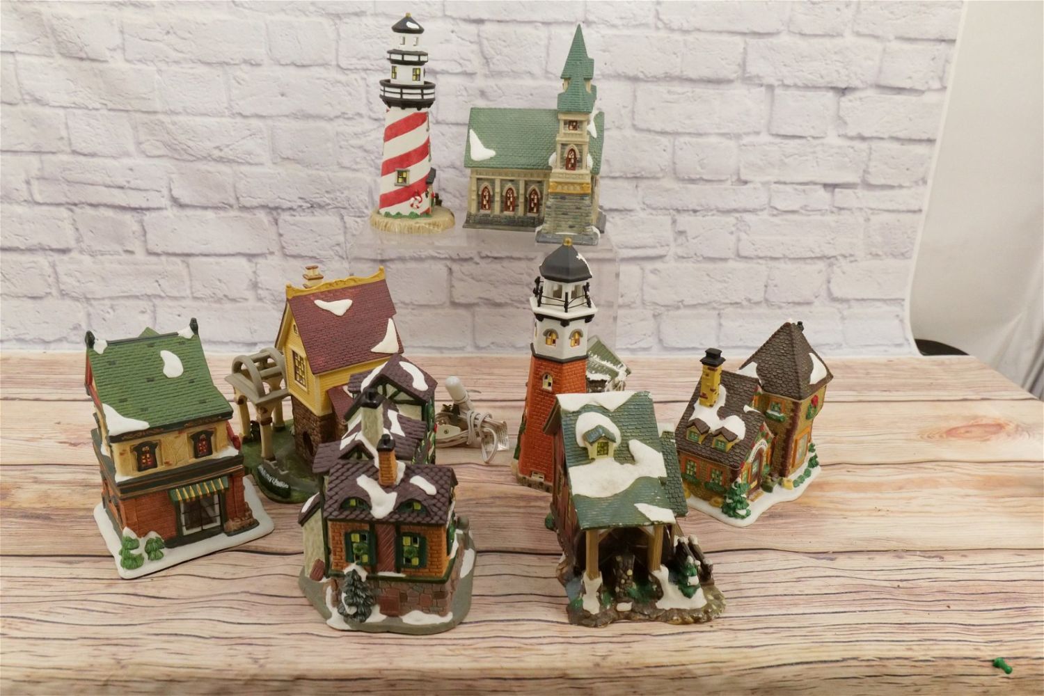 Lot of 7 Santa’s Workbench Christmas Village Houses. Includes a couple of Accessory Pieces. Some chipping present. All Loose – No Boxes. All Items in this sale have been on display and are in Used Condition. Most are assumed to not be complete or have small nicks/chips from being displayed unless noted in the description otherwise.. Some may be customized as well. Please examine photographs closely. All invoices must be paid within 24 hours of the sale. We offer multiple shipping options, please read the terms as they have changed. We also offer Pick-Ups Thursday, Friday, Saturday, and Monday immediately following the sale. BY APPOINTMENT ONLY. PLEASE READ THE NEW TERMS!!!