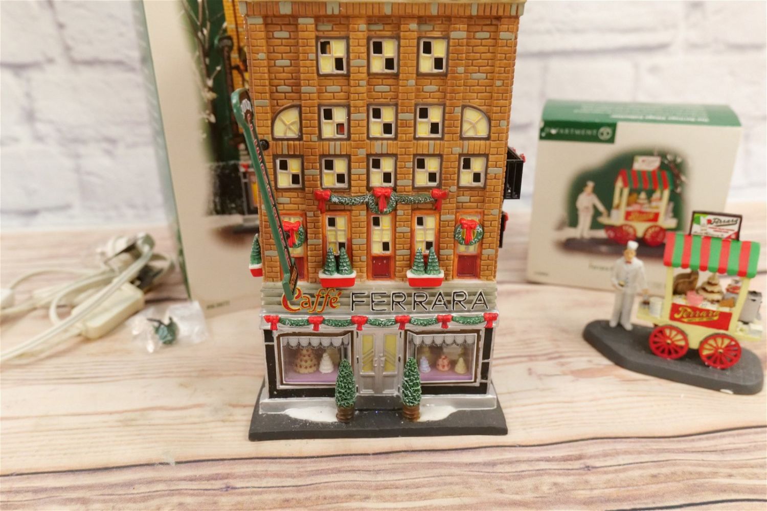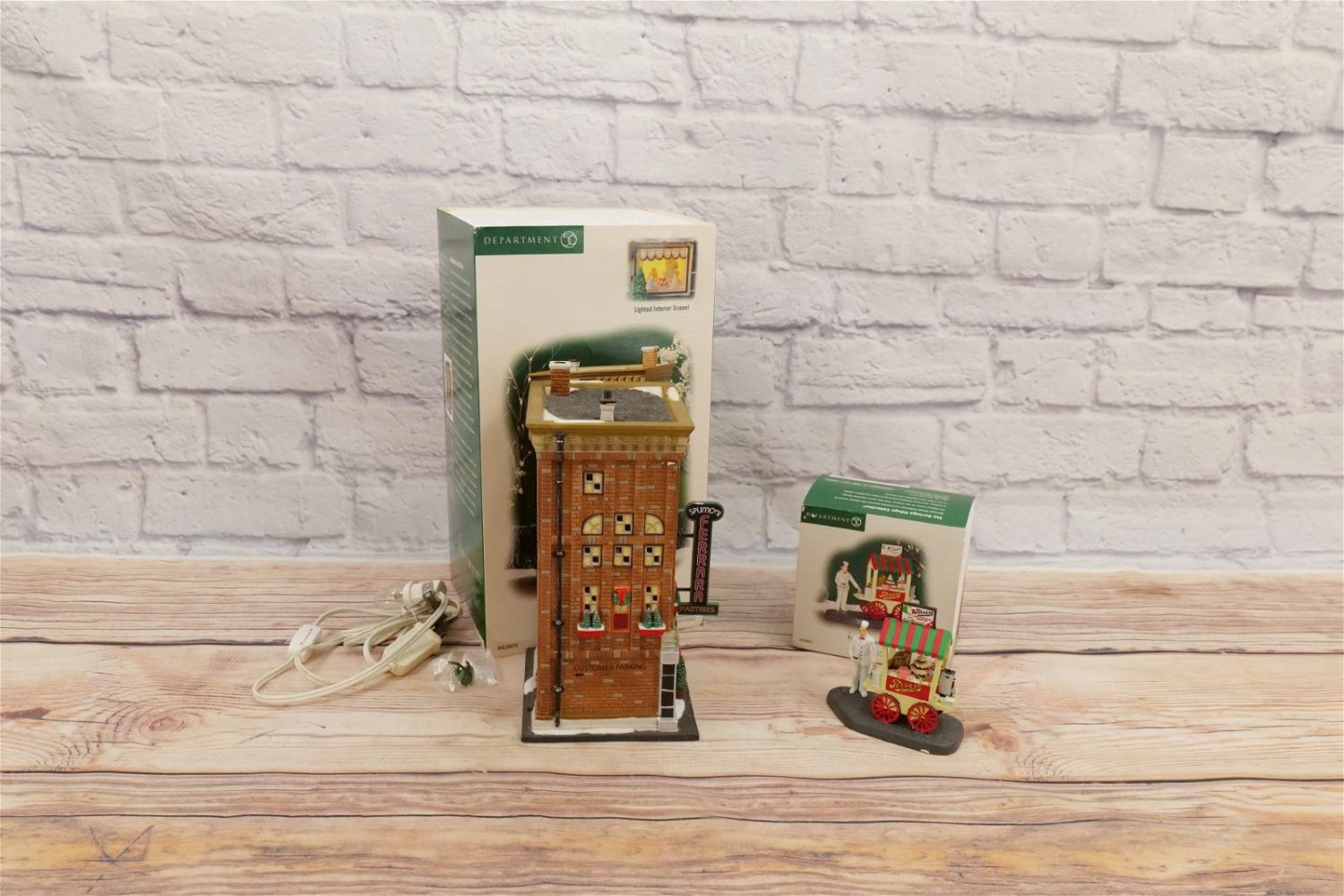 Department 56 Christmas in the City Ferrara Bakery & Cafe with Bakery Cart Accessory – Appears to be in good condition – Comes with Light Cord. All Items in this sale have been on display and are in Used Condition. Most are assumed to not be complete or have small nicks/chips from being displayed unless noted in the description otherwise.. Some may be customized as well. Please examine photographs closely. All invoices must be paid within 24 hours of the sale. We offer multiple shipping options, please read the terms as they have changed. We also offer Pick-Ups Thursday, Friday, Saturday, and Monday immediately following the sale. BY APPOINTMENT ONLY. PLEASE READ THE NEW TERMS!!!