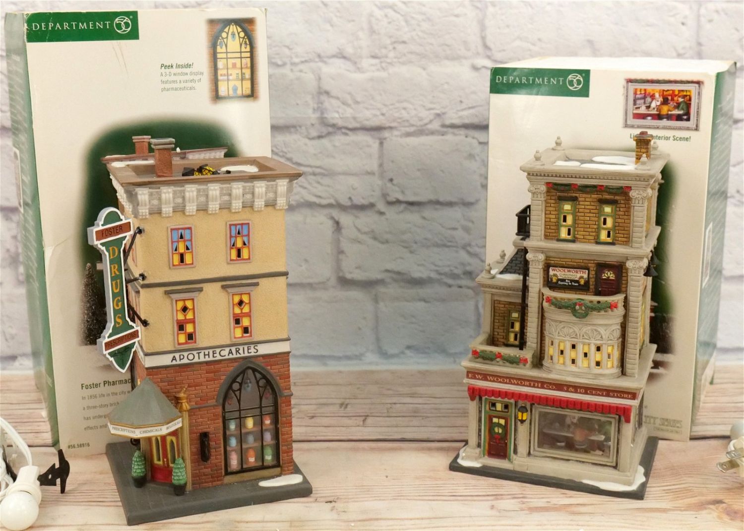 Lot of 2 Department 56 Christmas in the City Houses including Foster Pharmacy – Missing light and Drug sign appears that it was glued in at one time and Woolworth’s – Appears to be in good condition. Both come with light cords. All Items in this sale have been on display and are in Used Condition. Most are assumed to not be complete or have small nicks/chips from being displayed unless noted in the description otherwise.. Some may be customized as well. Please examine photographs closely. All invoices must be paid within 24 hours of the sale. We offer multiple shipping options, please read the terms as they have changed. We also offer Pick-Ups Thursday, Friday, Saturday, and Monday immediately following the sale. BY APPOINTMENT ONLY. PLEASE READ THE NEW TERMS!!!
