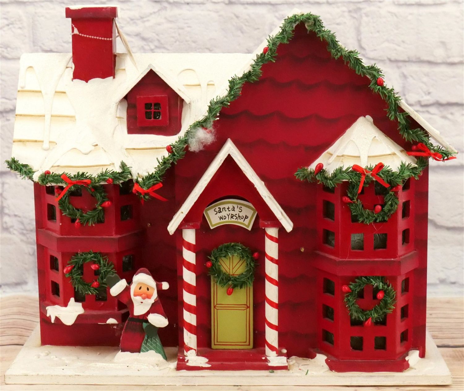 Santa’s Workshop Wooden Christmas Display House. Measures 13.5" tall x 16.5" wide. All Items in this sale have been on display and are in Used Condition. Most are assumed to not be complete or have small nicks/chips from being displayed unless noted in the description otherwise.. Some may be customized as well. Please examine photographs closely. All invoices must be paid within 24 hours of the sale. We offer multiple shipping options, please read the terms as they have changed. We also offer Pick-Ups Thursday, Friday, Saturday, and Monday immediately following the sale. BY APPOINTMENT ONLY. PLEASE READ THE NEW TERMS!!!