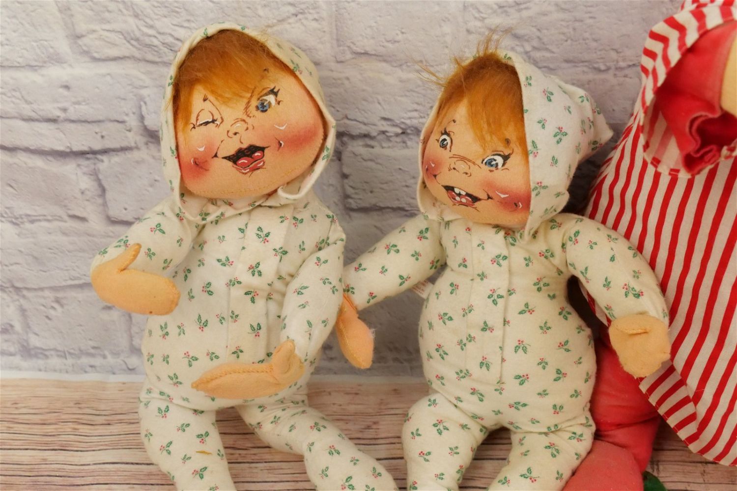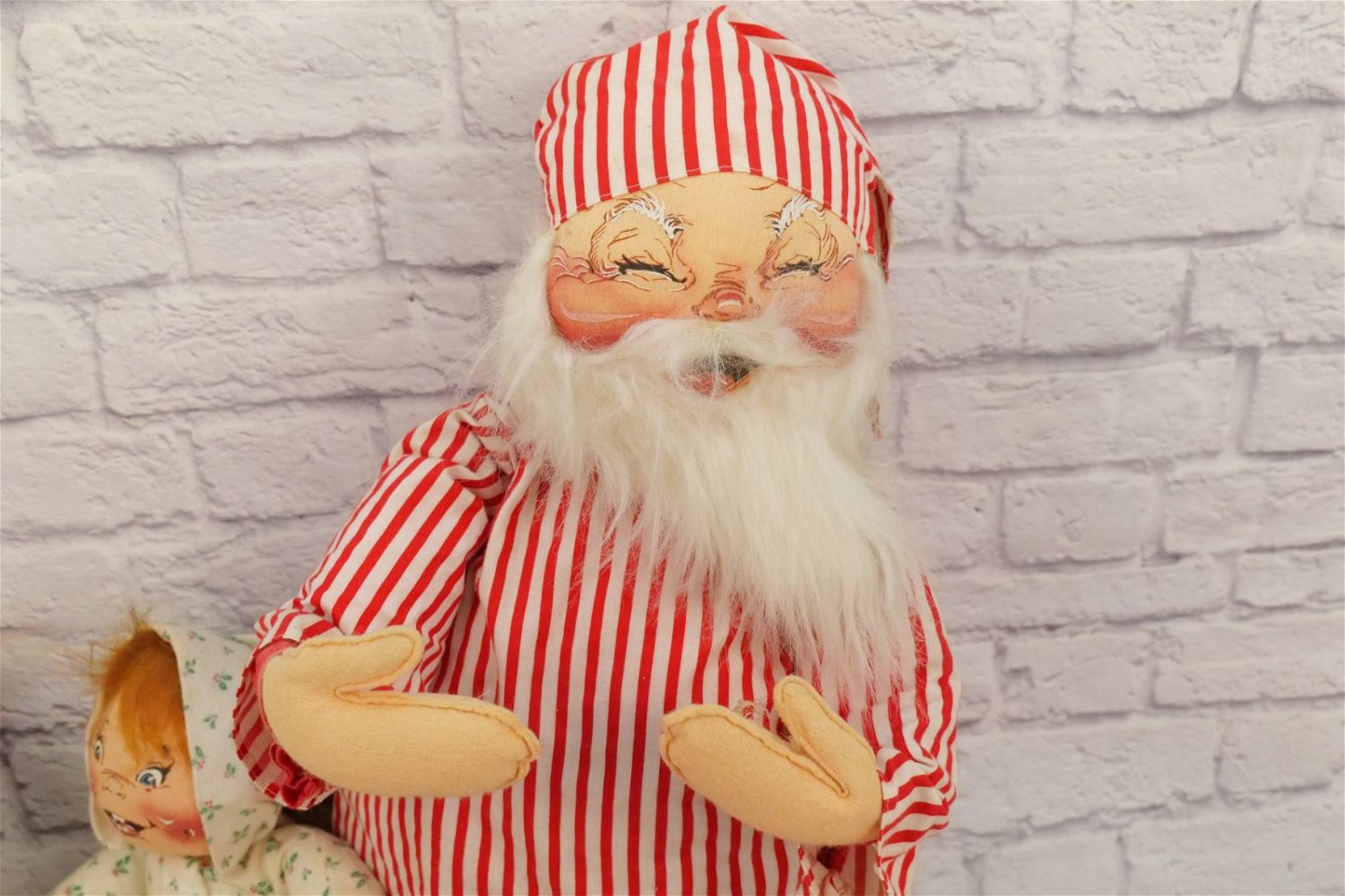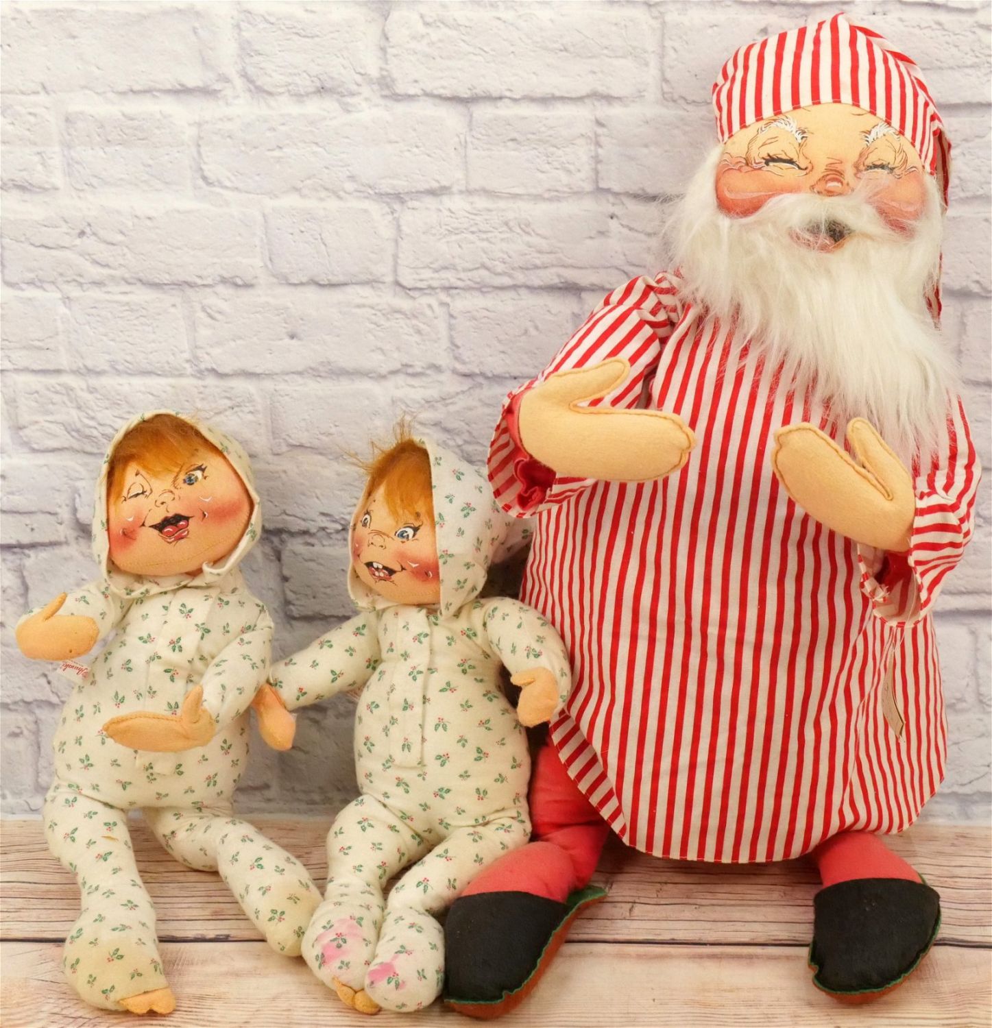 Lot of 3 Annalee Christmas Figures including Santa Claus and (2) Babies. Heavy Staining. Santa measures approx. 30" tall. All Items in this sale have been on display and are in Used Condition. Most are assumed to not be complete or have small nicks/chips from being displayed unless noted in the description otherwise.. Some may be customized as well. Please examine photographs closely. All invoices must be paid within 24 hours of the sale. We offer multiple shipping options, please read the terms as they have changed. We also offer Pick-Ups Thursday, Friday, Saturday, and Monday immediately following the sale. BY APPOINTMENT ONLY. PLEASE READ THE NEW TERMS!!!