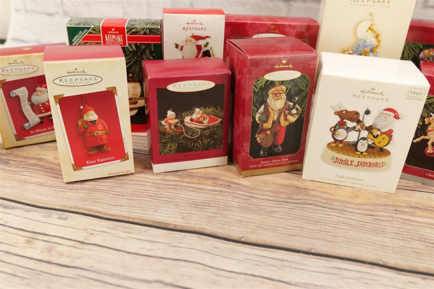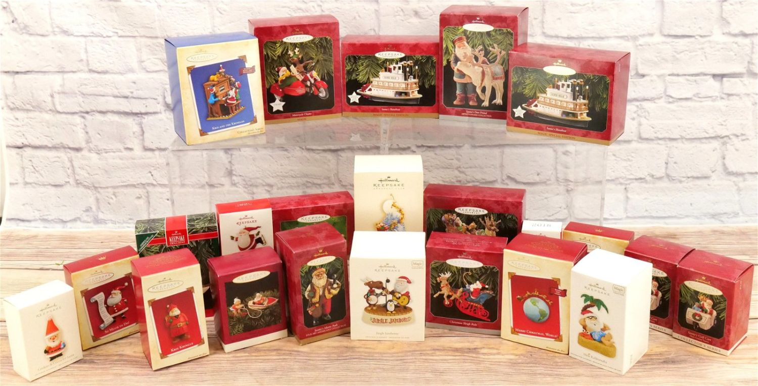 Lot of 23 Santa Themed Hallmark Ornaments. All have been used and re-boxed. All invoices must be paid within 24 hours of the sale. We offer multiple shipping options, please read the terms as they have changed. We also offer Pick-Ups Thursday, Friday, Saturday, and Monday immediately following the sale. BY APPOINTMENT ONLY. PLEASE READ THE NEW TERMS!!!