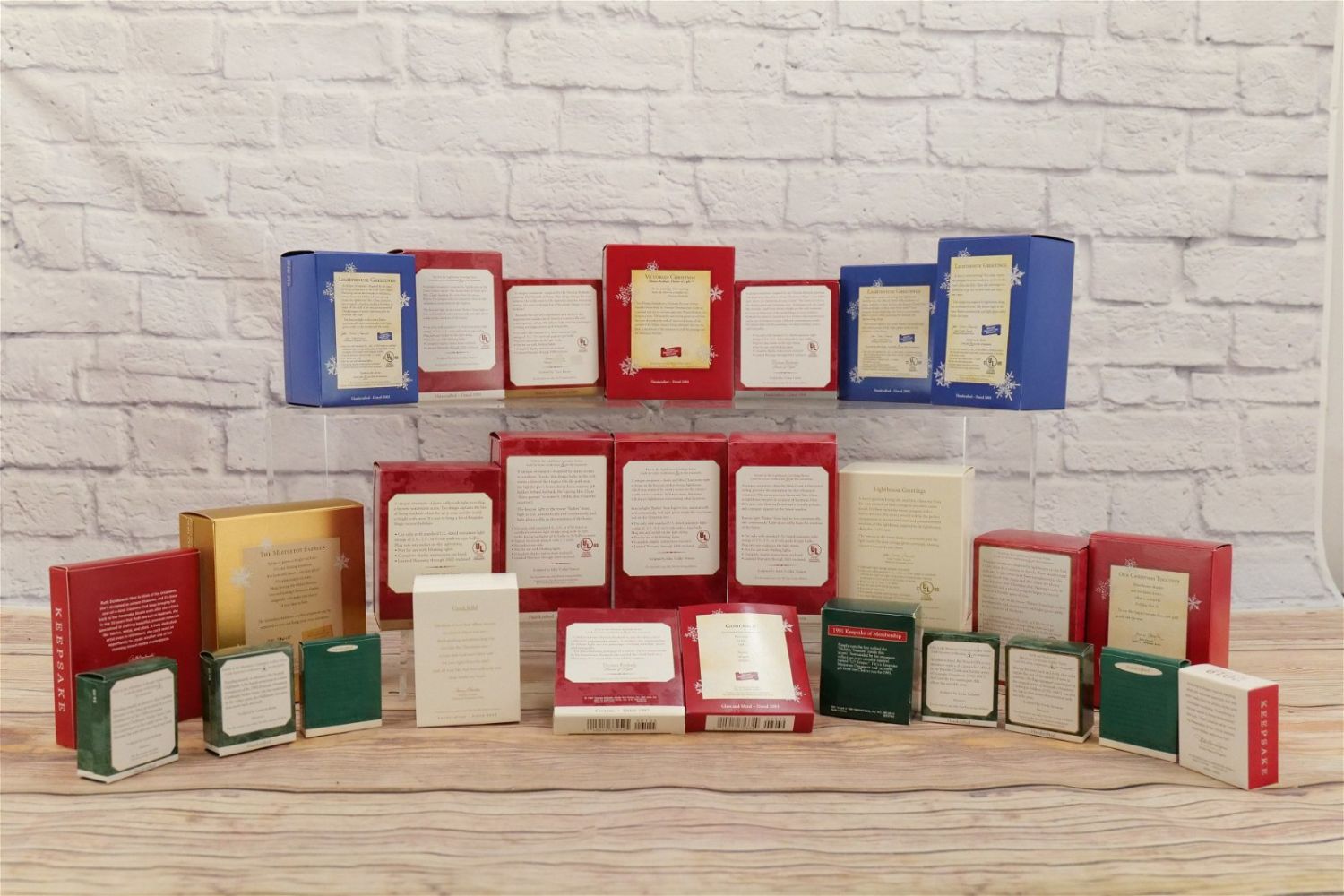 Lot of 27 Mixed Hallmark Ornaments. Including Lighthouses, Clothespin Soldier Miniatures, Thomas Kinkade, and Much More. All have been used and re-boxed. All invoices must be paid within 24 hours of the sale. We offer multiple shipping options, please read the terms as they have changed. We also offer Pick-Ups Thursday, Friday, Saturday, and Monday immediately following the sale. BY APPOINTMENT ONLY. PLEASE READ THE NEW TERMS!!!