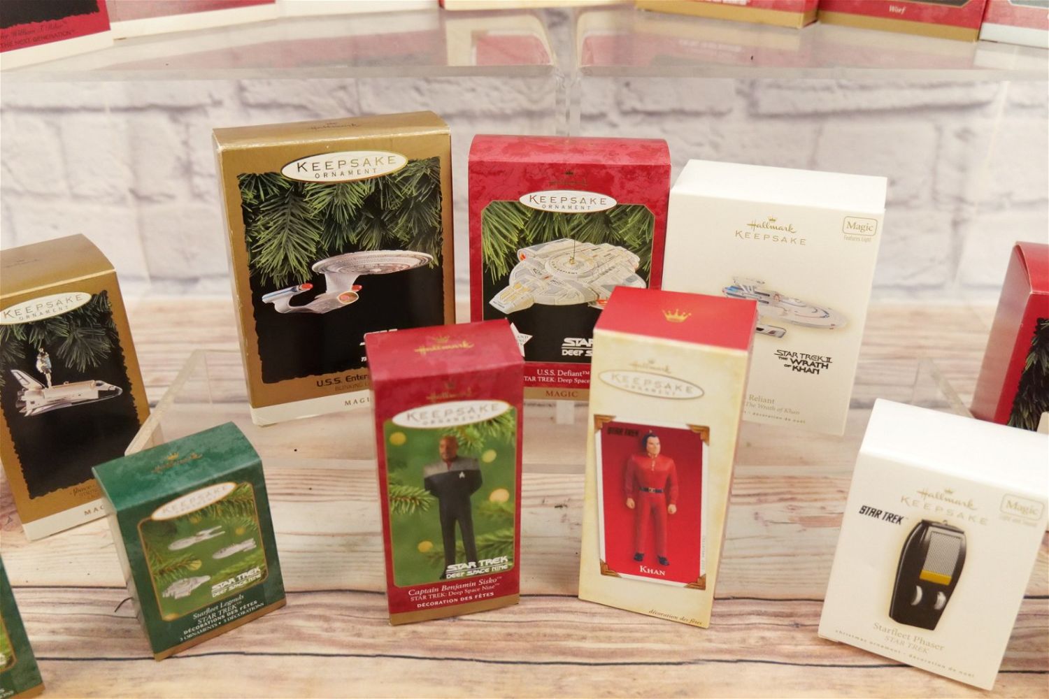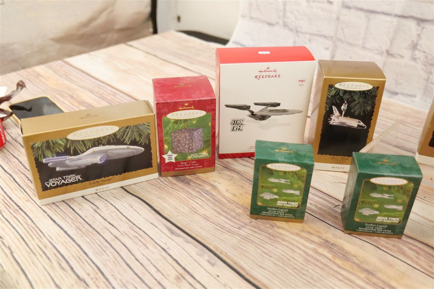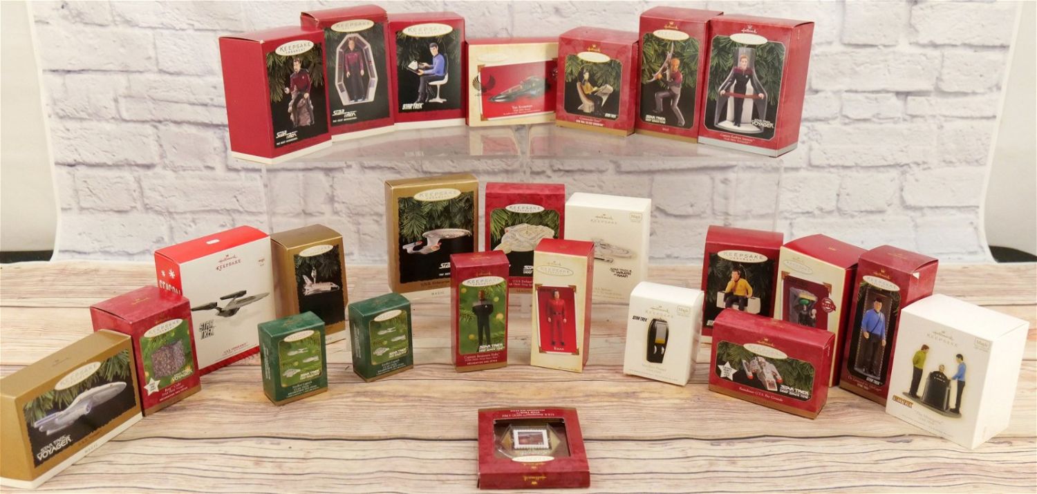 Lot of 25 Star Trek Hallmark Ornaments. Includes 2 Complete Ornament Sets. All have been used and re-boxed. All invoices must be paid within 24 hours of the sale. We offer multiple shipping options, please read the terms as they have changed. We also offer Pick-Ups Thursday, Friday, Saturday, and Monday immediately following the sale. BY APPOINTMENT ONLY. PLEASE READ THE NEW TERMS!!!