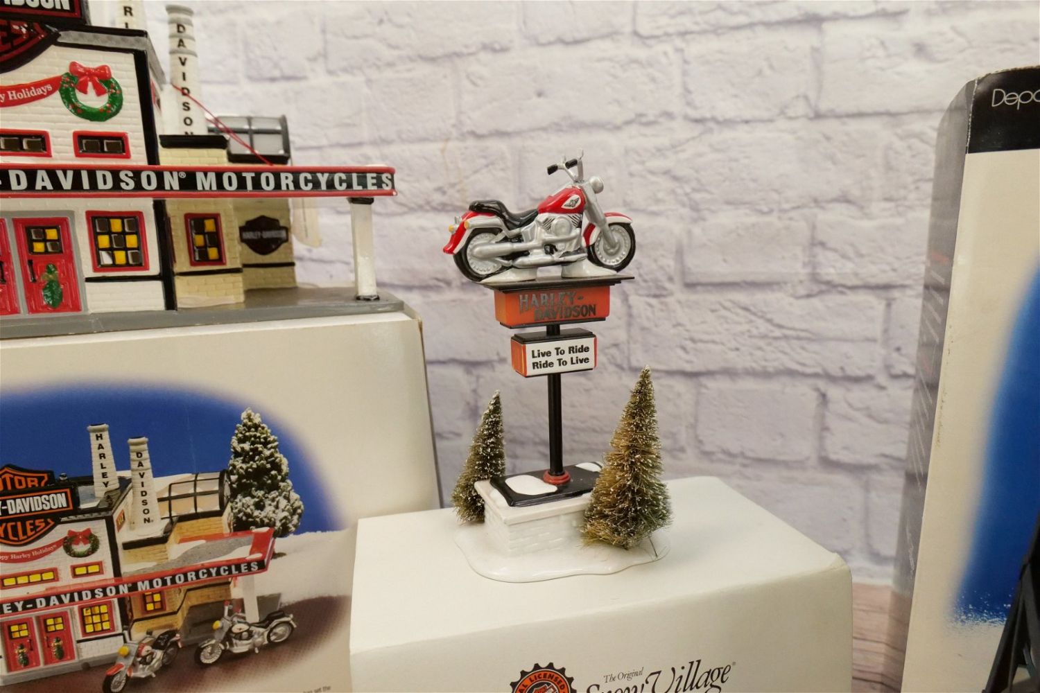 Lot of Department 56 Snow Village Harley Davidson Houses and Accessories including Harley Davidson Manufacturing – Missing Accessories, Harley Davidson Motorcycle Shop – Broken Handlebar on Bike – Piece is included, Broken Railing – Needs to be reglued, etc., Harley Davidson Sign – Has been repaired, and Harley Davidson Water Tower – Good Condition. All Items in this sale have been on display and are in Used Condition. Most are assumed to not be complete or have small nicks/chips from being displayed unless noted in the description otherwise.. Some may be customized as well. Please examine photographs closely. All invoices must be paid within 24 hours of the sale. We offer multiple shipping options, please read the terms as they have changed. We also offer Pick-Ups Thursday, Friday, Saturday, and Monday immediately following the sale. BY APPOINTMENT ONLY. PLEASE READ THE NEW TERMS!!!