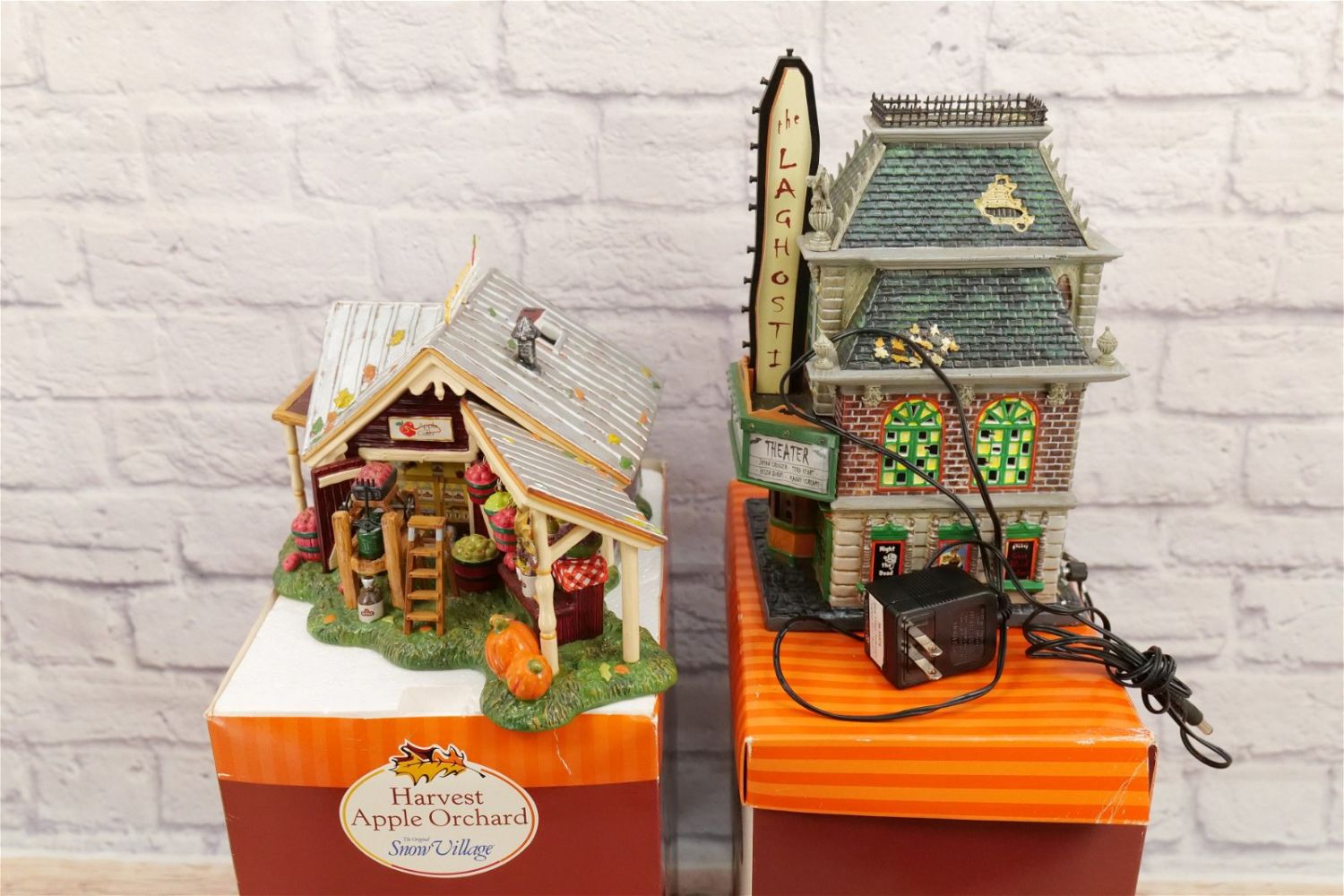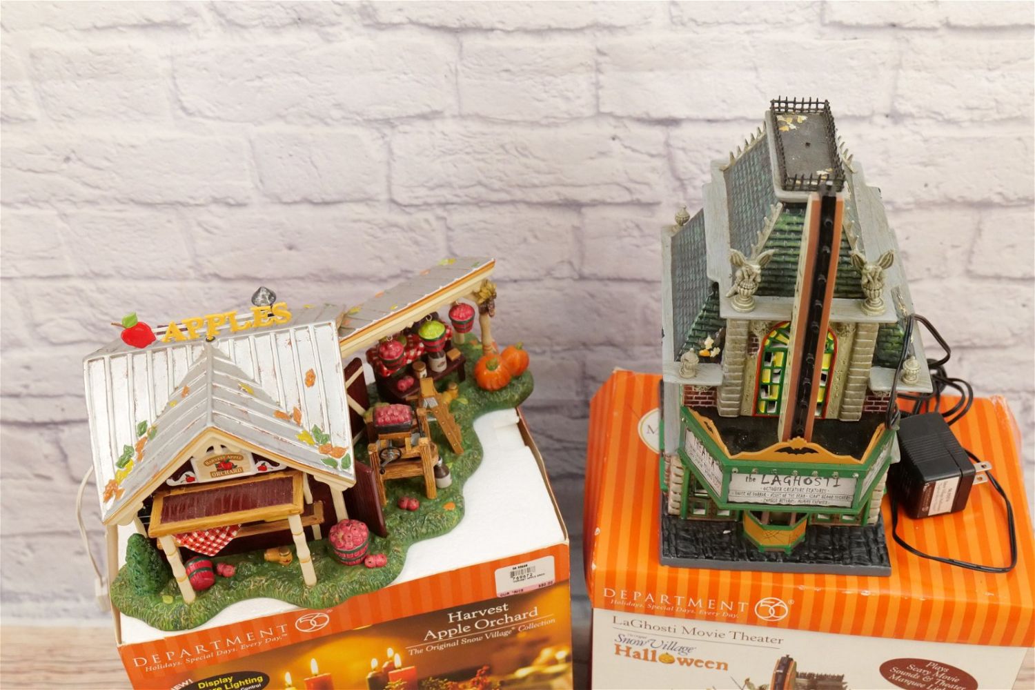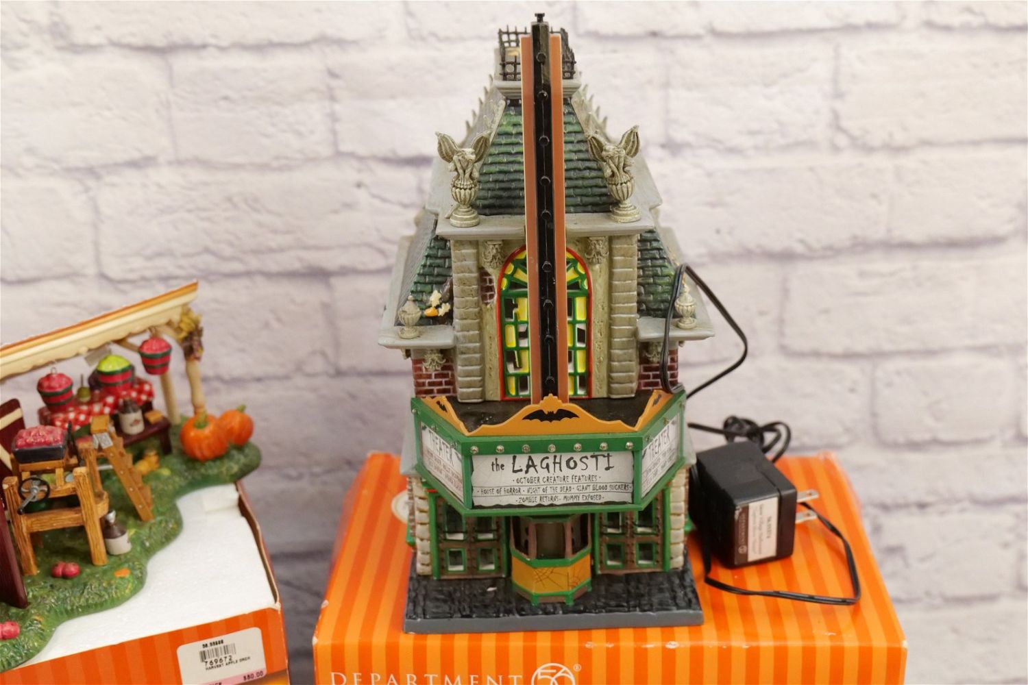 Lot of 2 Department 56 Snow Village Items including Harvest Apple Orchard – Missing Accessory and Cord and Halloween LaGhosti Movie Theater – Chipping on House – Missing Accessory – Has Power Cord. All Items in this sale have been on display and are in Used Condition. Most are assumed to not be complete or have small nicks/chips from being displayed unless noted in the description otherwise.. Some may be customized as well. Please examine photographs closely. All invoices must be paid within 24 hours of the sale. We offer multiple shipping options, please read the terms as they have changed. We also offer Pick-Ups Thursday, Friday, Saturday, and Monday immediately following the sale. BY APPOINTMENT ONLY. PLEASE READ THE NEW TERMS!!!
