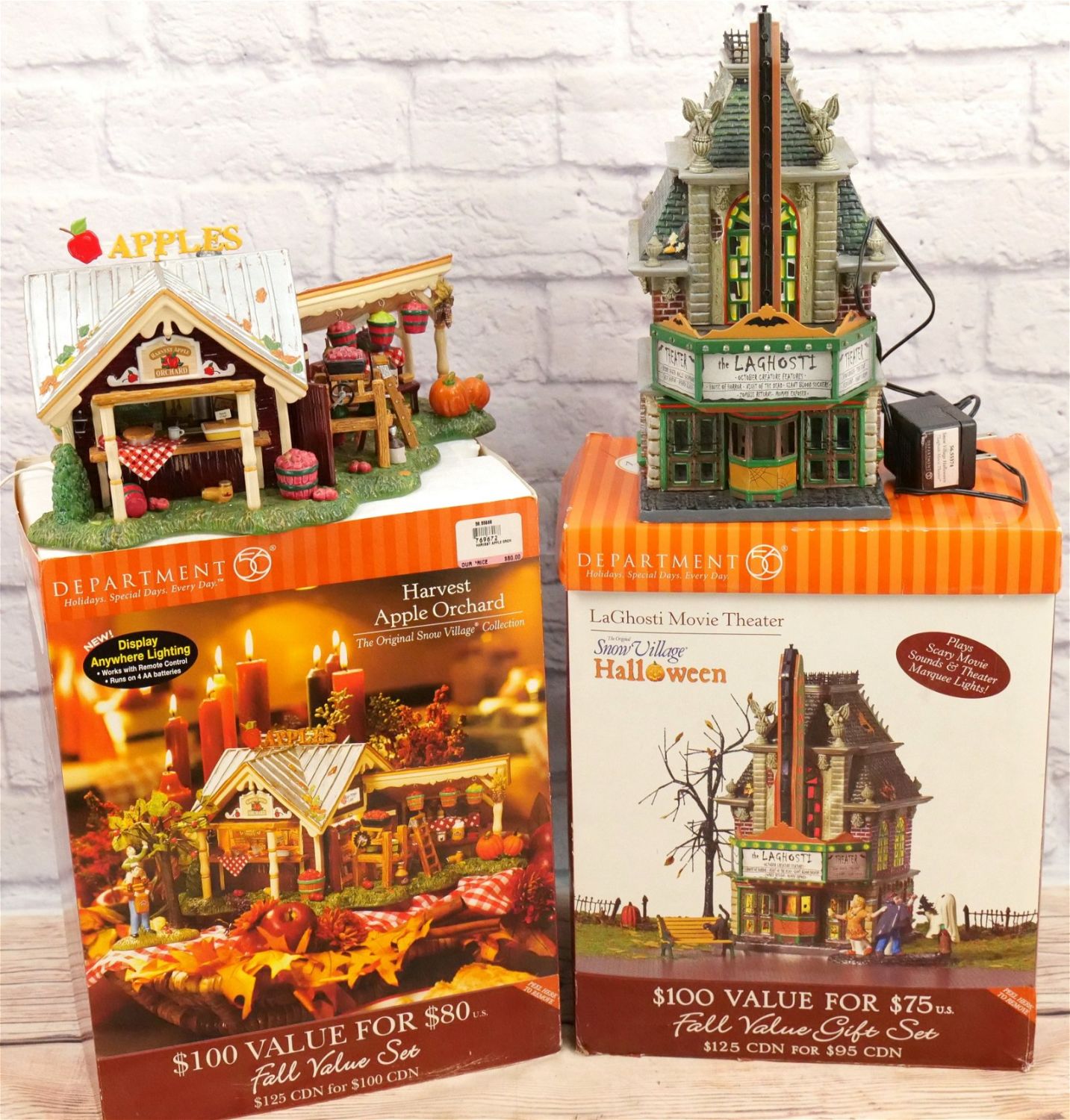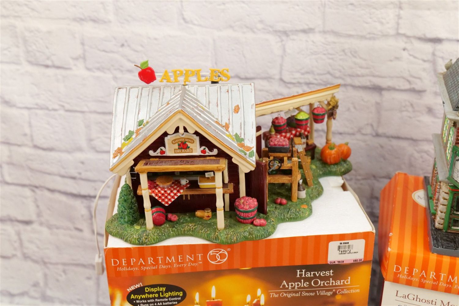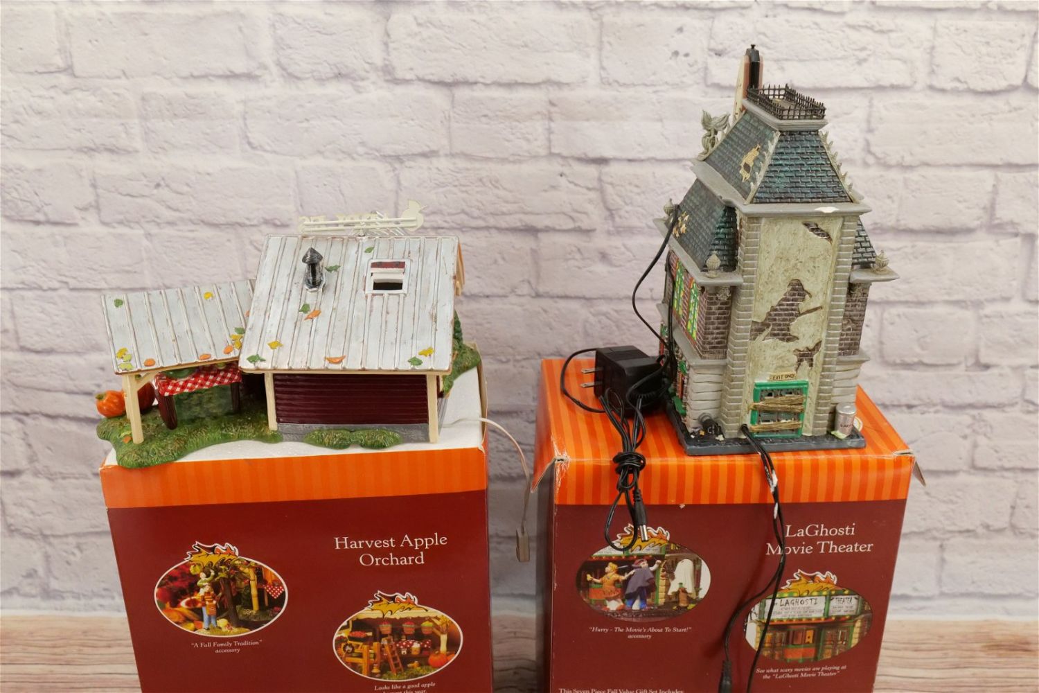 Lot of 2 Department 56 Snow Village Items including Harvest Apple Orchard – Missing Accessory and Cord and Halloween LaGhosti Movie Theater – Chipping on House – Missing Accessory – Has Power Cord. All Items in this sale have been on display and are in Used Condition. Most are assumed to not be complete or have small nicks/chips from being displayed unless noted in the description otherwise.. Some may be customized as well. Please examine photographs closely. All invoices must be paid within 24 hours of the sale. We offer multiple shipping options, please read the terms as they have changed. We also offer Pick-Ups Thursday, Friday, Saturday, and Monday immediately following the sale. BY APPOINTMENT ONLY. PLEASE READ THE NEW TERMS!!!