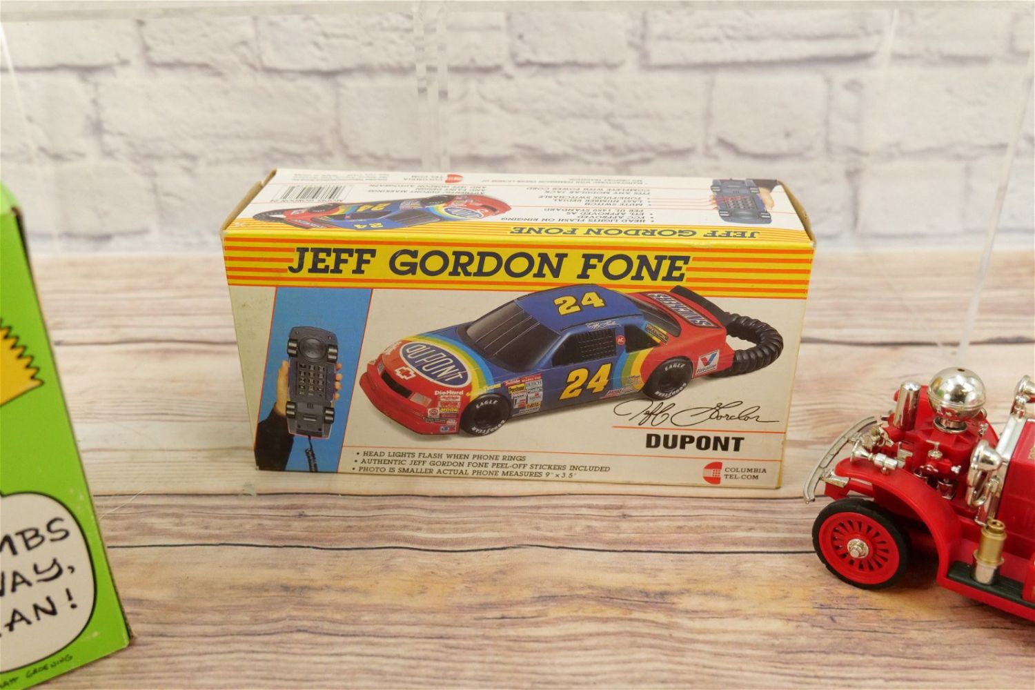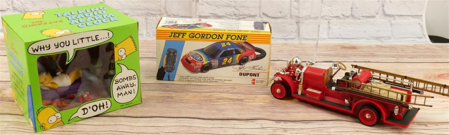 Lot of 3 Novelty Radios/Phones including The Simpsons Talking Radio Alarm Clock with Box, Jeff Gordon Fone with Box, and Fire Truck Phone. All in Used Condition. This Collection was displayed in the house and all items are untested. All invoices must be paid within 24 hours of the sale. We offer multiple shipping options, please read the terms as they have changed. We also offer Pick-Ups Thursday, Friday, Saturday, and Monday immediately following the sale. BY APPOINTMENT ONLY. PLEASE READ THE NEW TERMS!!!