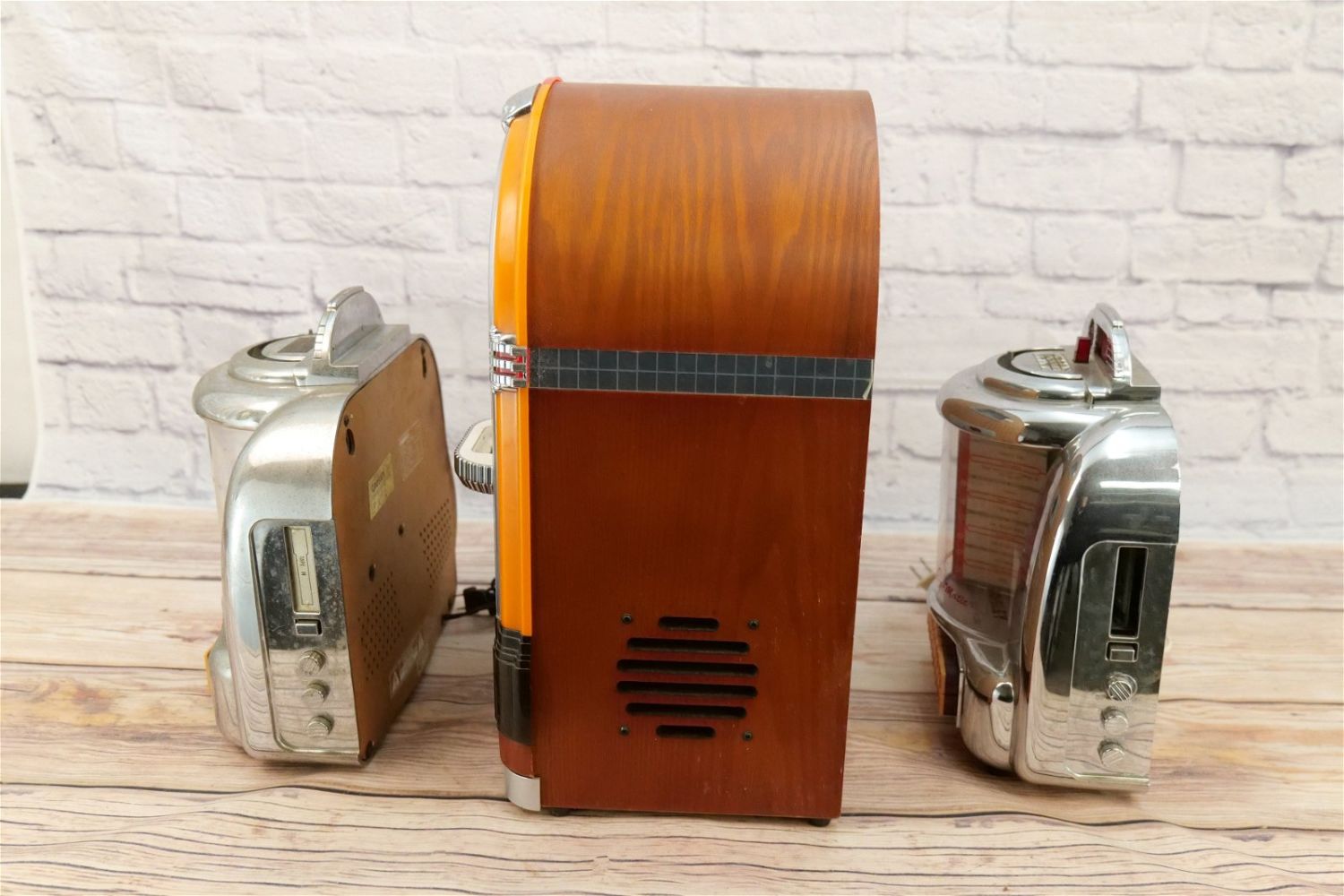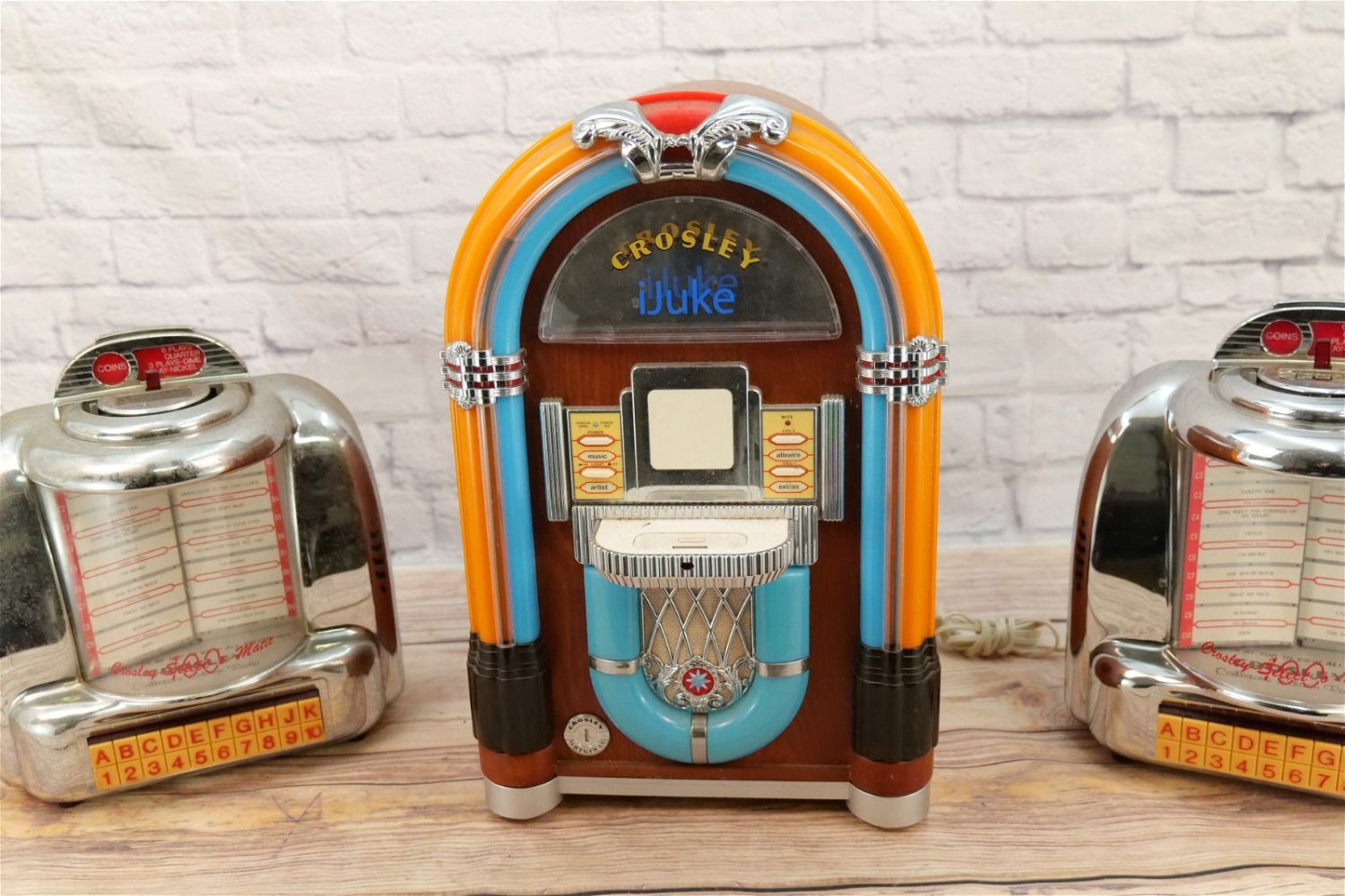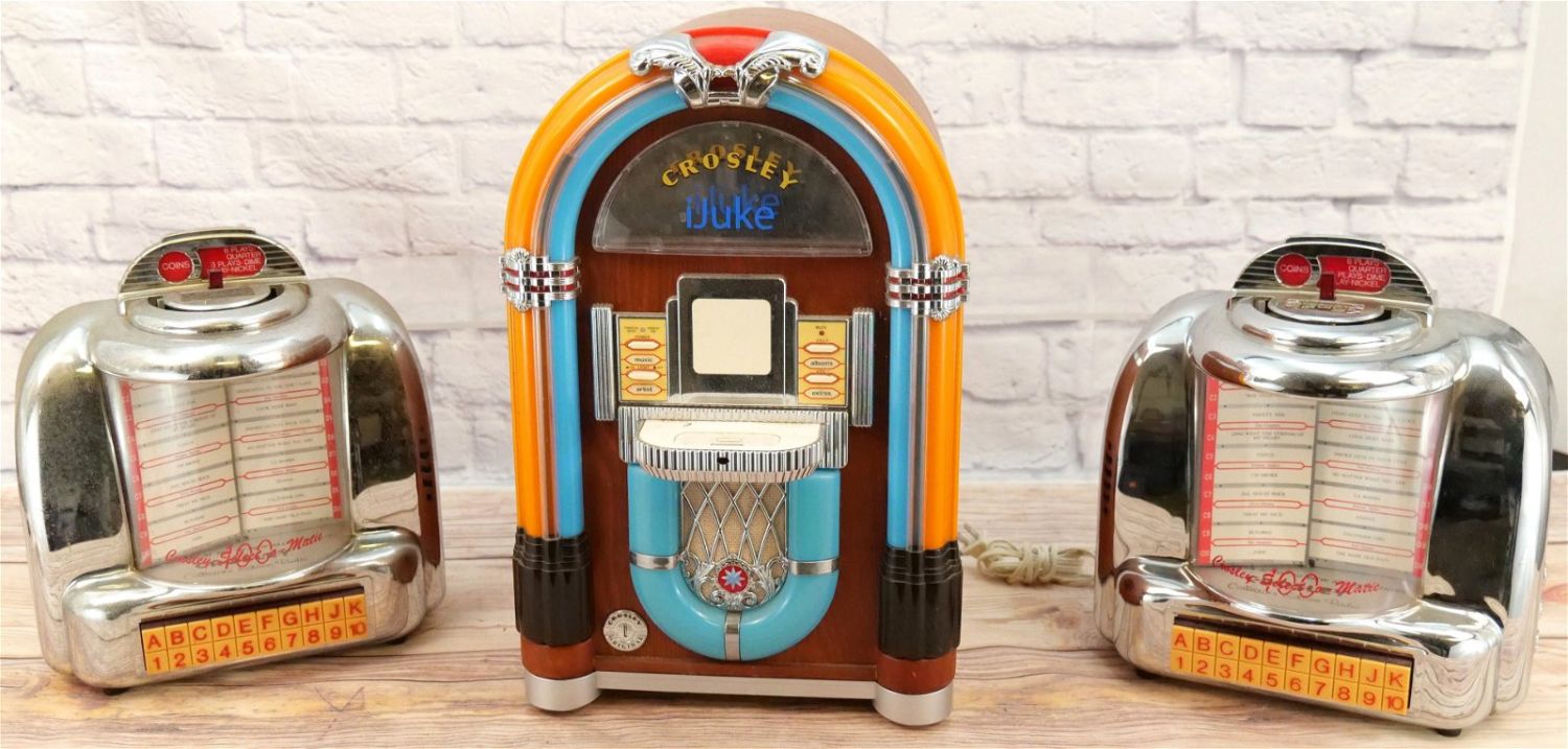 Lot of 3 Novelty Radios including (2) Crosley Select-O-Matic Juke Boxes – Collector’s Edition and Crosley iJuke. All in Used Condition. This Collection was displayed in the house and all items are untested. All invoices must be paid within 24 hours of the sale. We offer multiple shipping options, please read the terms as they have changed. We also offer Pick-Ups Thursday, Friday, Saturday, and Monday immediately following the sale. BY APPOINTMENT ONLY. PLEASE READ THE NEW TERMS!!!