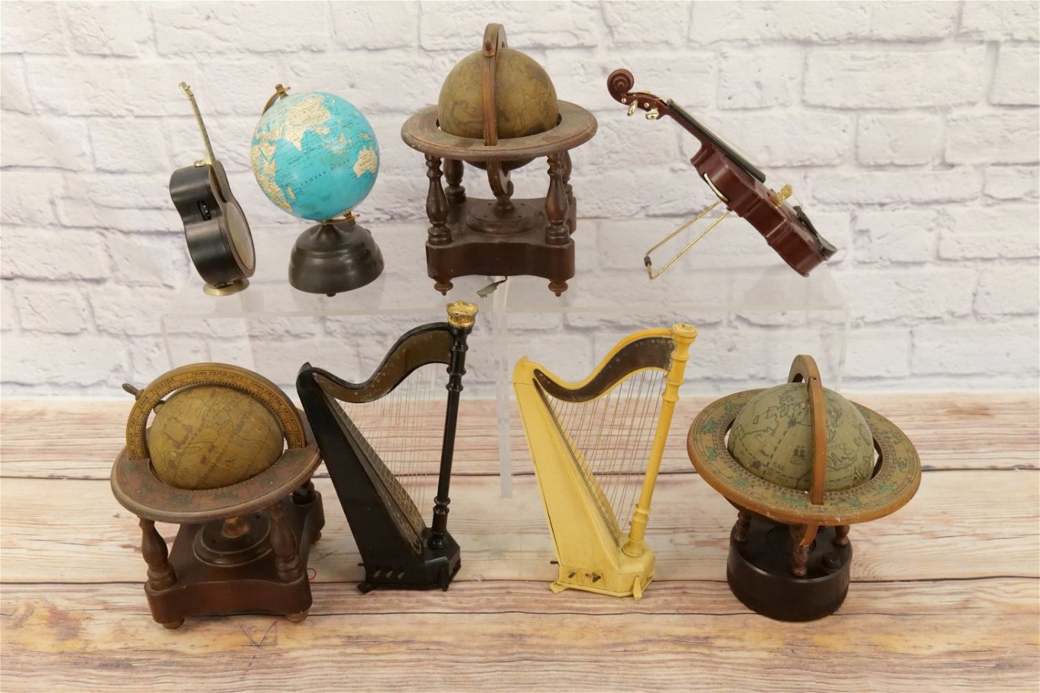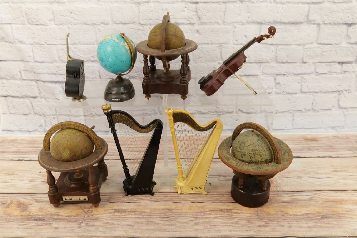 Lot of 8 Novelty Radios including (4) Globes, (2) Harps, Guitar and Violin. All in Used Condition. This Collection was displayed in the house and all items are untested. All invoices must be paid within 24 hours of the sale. We offer multiple shipping options, please read the terms as they have changed. We also offer Pick-Ups Thursday, Friday, Saturday, and Monday immediately following the sale. BY APPOINTMENT ONLY. PLEASE READ THE NEW TERMS!!!