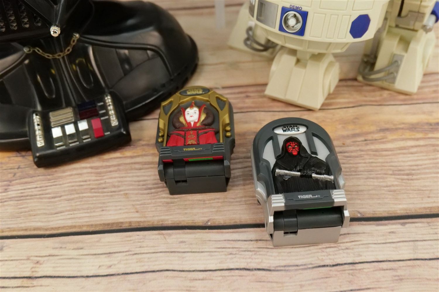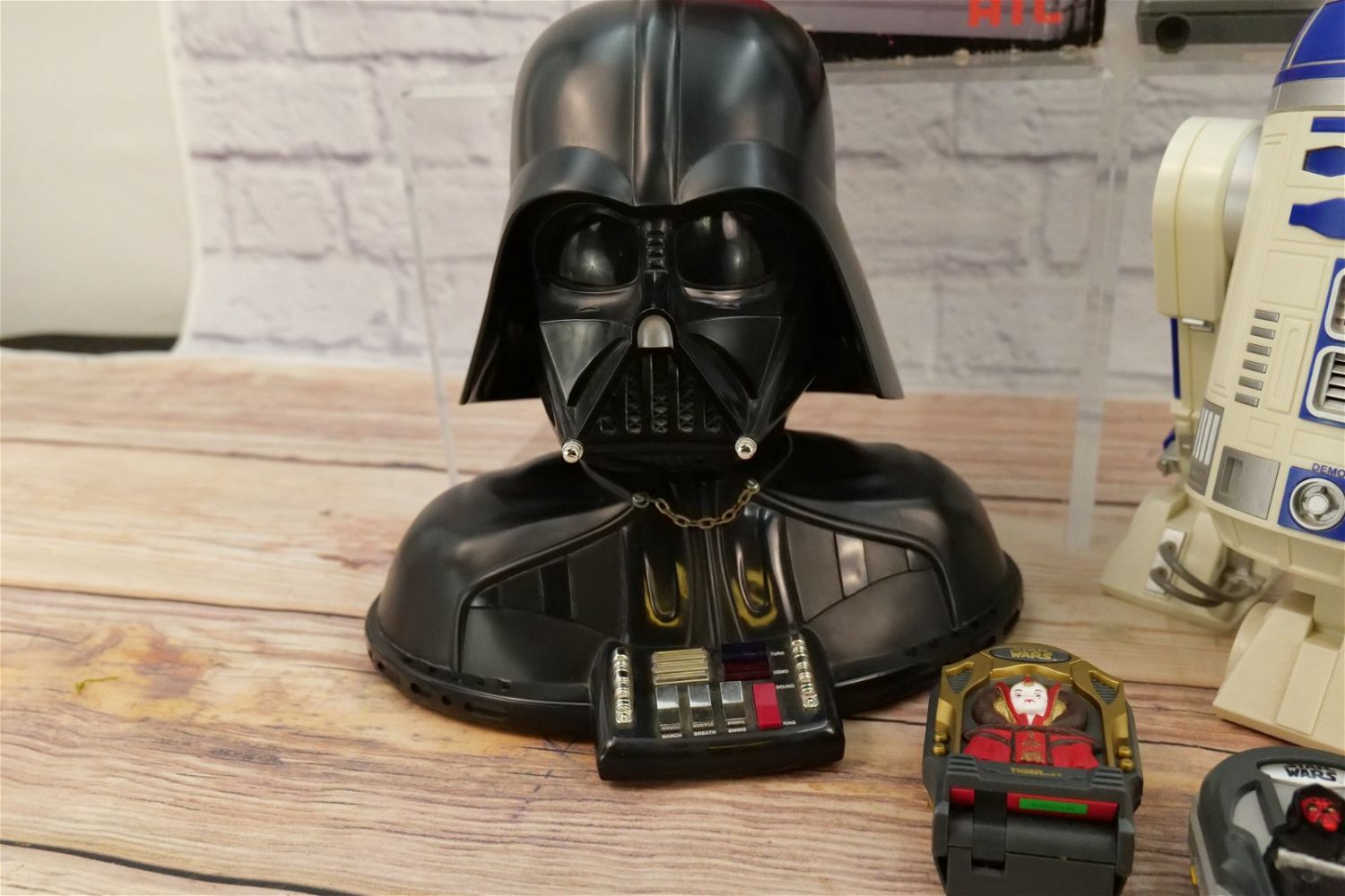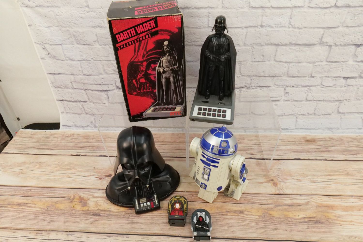 Lot of 5 Star Wars Novelty Telephones including Darth Vader Speakerphone with Box, Darth Vader Bust, R2-D2, and (2) Tiger Electronic Compact Phones – Queen Amidala and Darth Maul. Largest measures 14.5" tall x 6" wide. This Collection was displayed in the house and all items are untested. All invoices must be paid within 24 hours of the sale. We offer multiple shipping options, please read the terms as they have changed. We also offer Pick-Ups Thursday, Friday, Saturday, and Monday immediately following the sale. BY APPOINTMENT ONLY. PLEASE READ THE NEW TERMS!!!