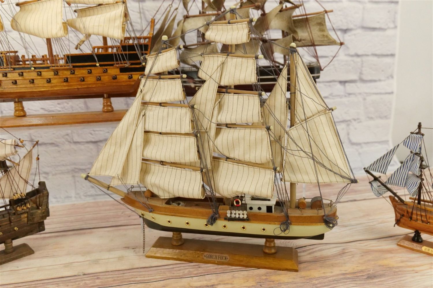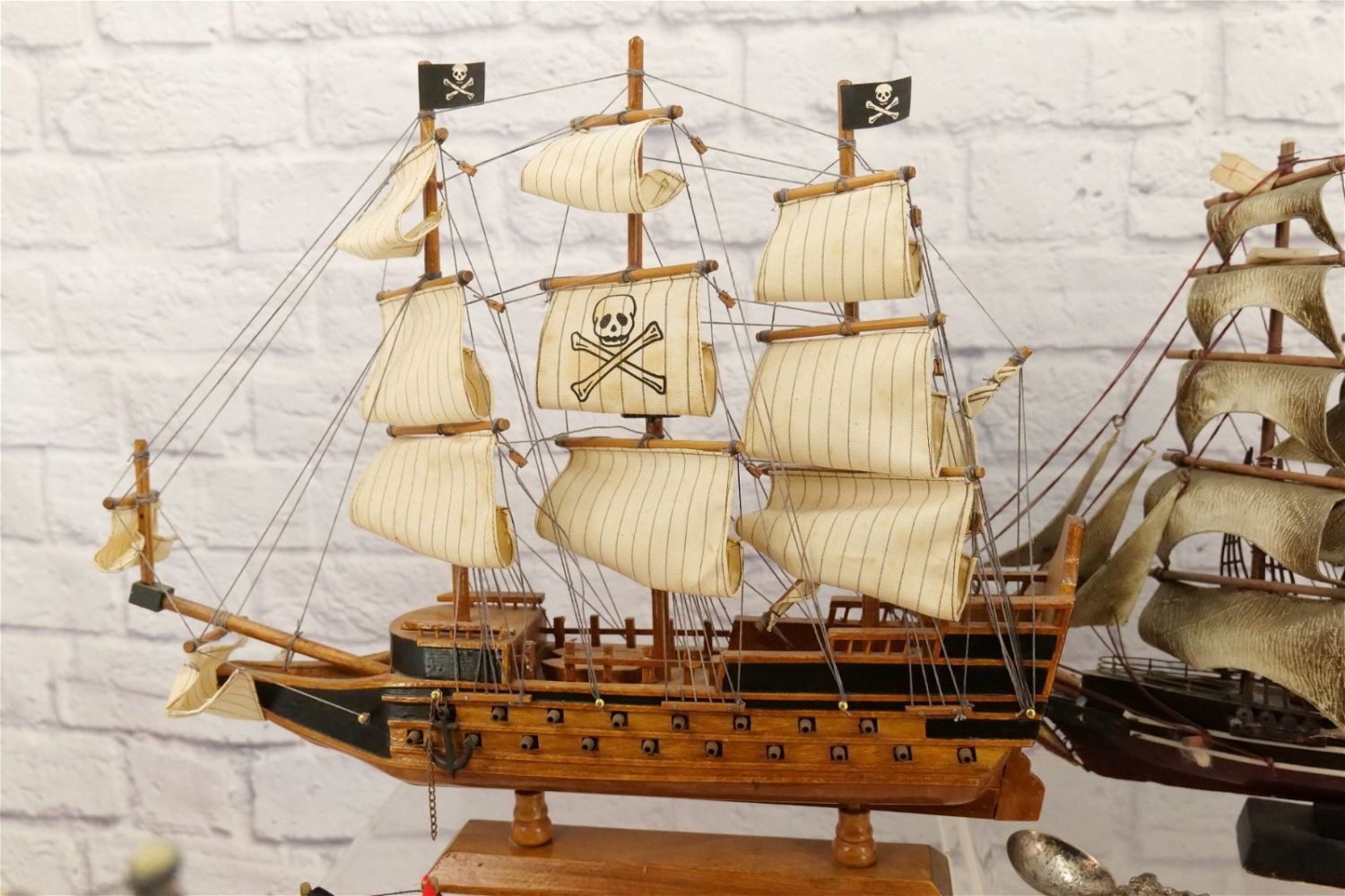 Lot of Wooden Model Ships including HMS Bounty, Gorch Fock, Cutty Sark, and 2 Pirate Ships. Sails need a good cleaning. May be missing a few pieces here and there and I did notice a couple of minor breaks to some of the wood on multiple ships. All invoices must be paid within 24 hours of the sale. We offer multiple shipping options, please read the terms as they have changed. We also offer Pick-Ups Thursday, Friday, Saturday, and Monday immediately following the sale. BY APPOINTMENT ONLY. PLEASE READ THE NEW TERMS!!!