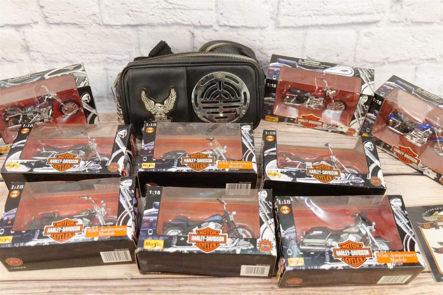 Lot of Harley Davidson Collectibles including (10) 1:18 Scale Replica Bikes, Watch, Temporary Tattoos, and Radio Fanny Pack. All invoices must be paid within 24 hours of the sale. We offer multiple shipping options, please read the terms as they have changed. We also offer Pick-Ups Thursday, Friday, Saturday, and Monday immediately following the sale. BY APPOINTMENT ONLY. PLEASE READ THE NEW TERMS!!!