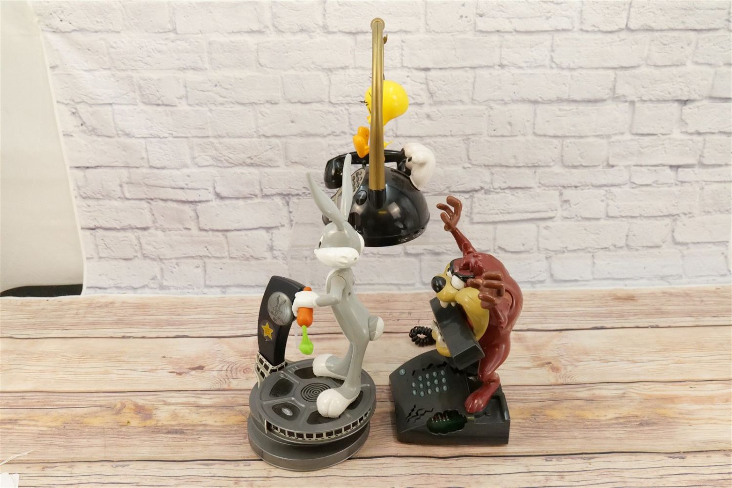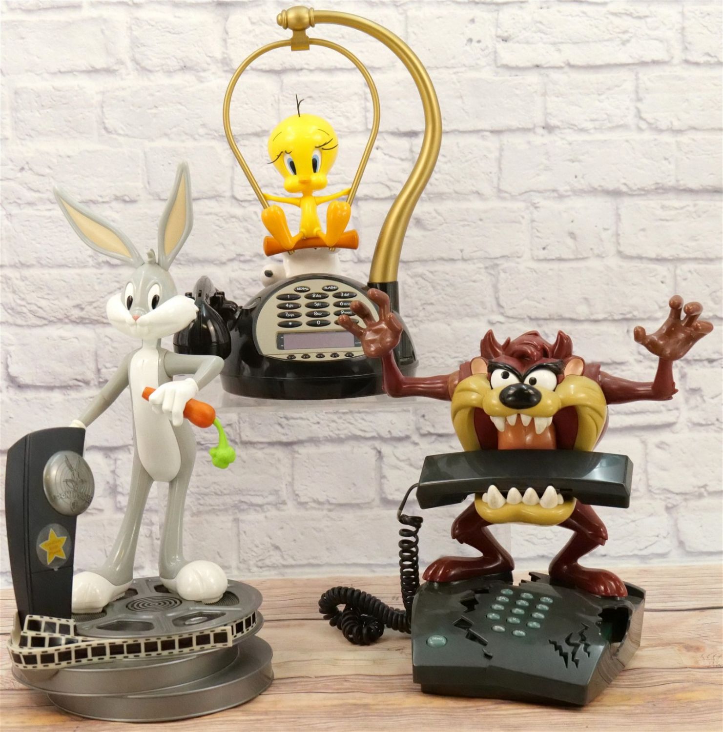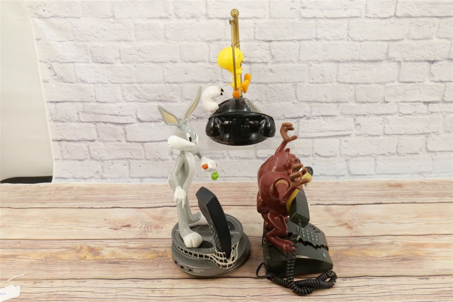 Lot of 3 Looney Tunes Novelty Telephones including Bugs Bunny, Tweety Bird, and Tasmanian Devil. Largest measures 18.5" tall x 10" wide. This Collection was displayed in the house and all items are untested. All invoices must be paid within 24 hours of the sale. We offer multiple shipping options, please read the terms as they have changed. We also offer Pick-Ups Thursday, Friday, Saturday, and Monday immediately following the sale. BY APPOINTMENT ONLY. PLEASE READ THE NEW TERMS!!!