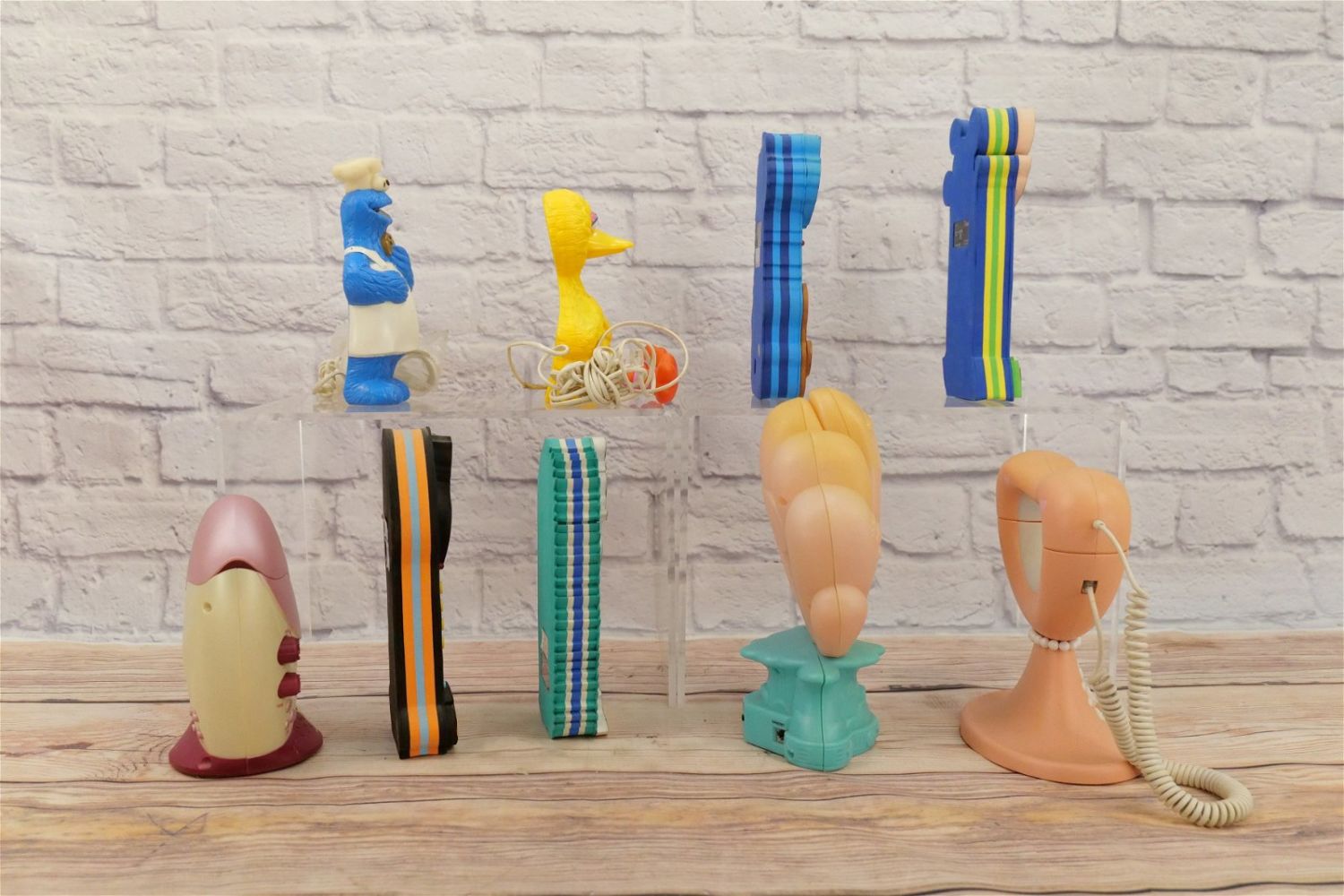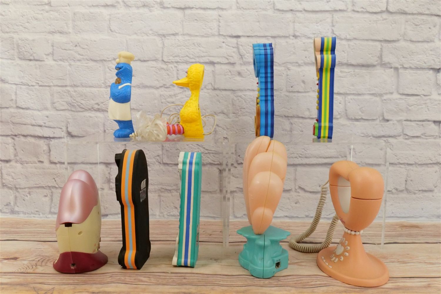 Lot of 9 Cartoon Themed Novelty Telephones including Bratz, Sesame Street – (2) Cookie Monster and Big Bird, and Disney – Ariel, Disney Heart, Mickey, Donald and Hercules. Largest measures 10" tall x 7.5" wide. This Collection was displayed in the house and all items are untested. All invoices must be paid within 24 hours of the sale. We offer multiple shipping options, please read the terms as they have changed. We also offer Pick-Ups Thursday, Friday, Saturday, and Monday immediately following the sale. BY APPOINTMENT ONLY. PLEASE READ THE NEW TERMS!!!