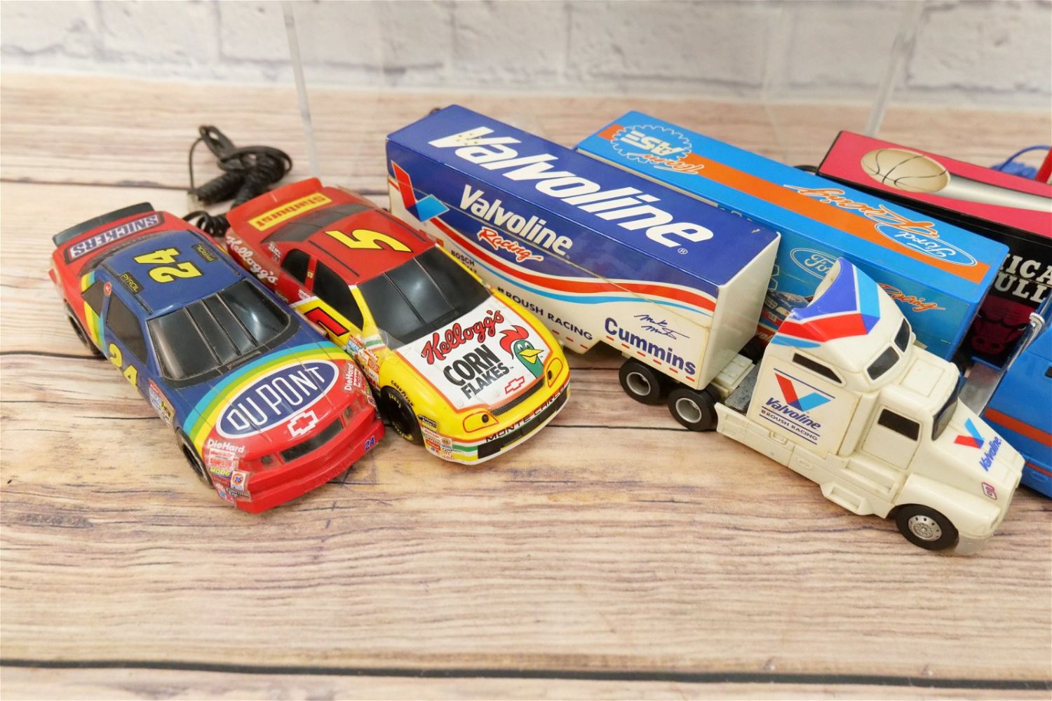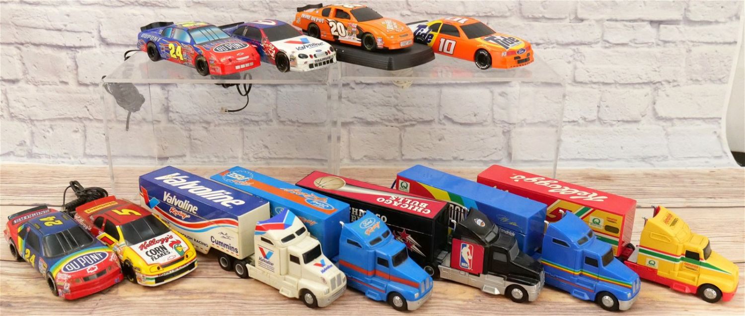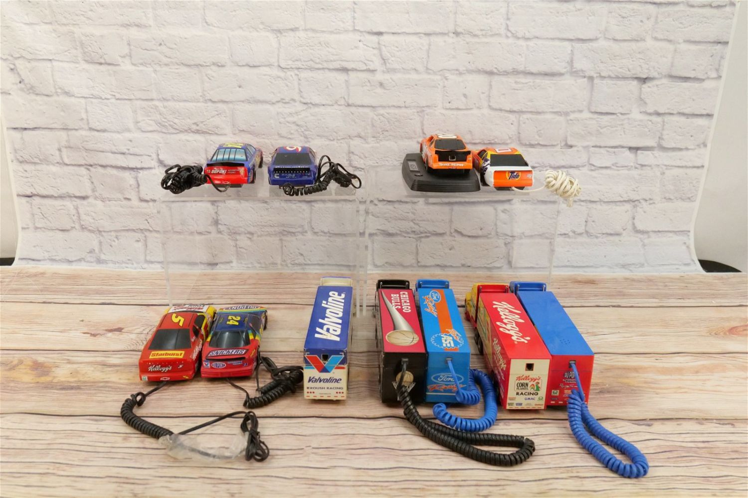 Lot of 11 NASCAR and Tractor Trailer Novelty Telephones. Including Chicago Bulls, Jeff Gordon, Tony Stewart, Ford Racing and Much More. Largest measures 3.5" tall x 14" long. This Collection was displayed in the house and all items are untested. All invoices must be paid within 24 hours of the sale. We offer multiple shipping options, please read the terms as they have changed. We also offer Pick-Ups Thursday, Friday, Saturday, and Monday immediately following the sale. BY APPOINTMENT ONLY. PLEASE READ THE NEW TERMS!!!