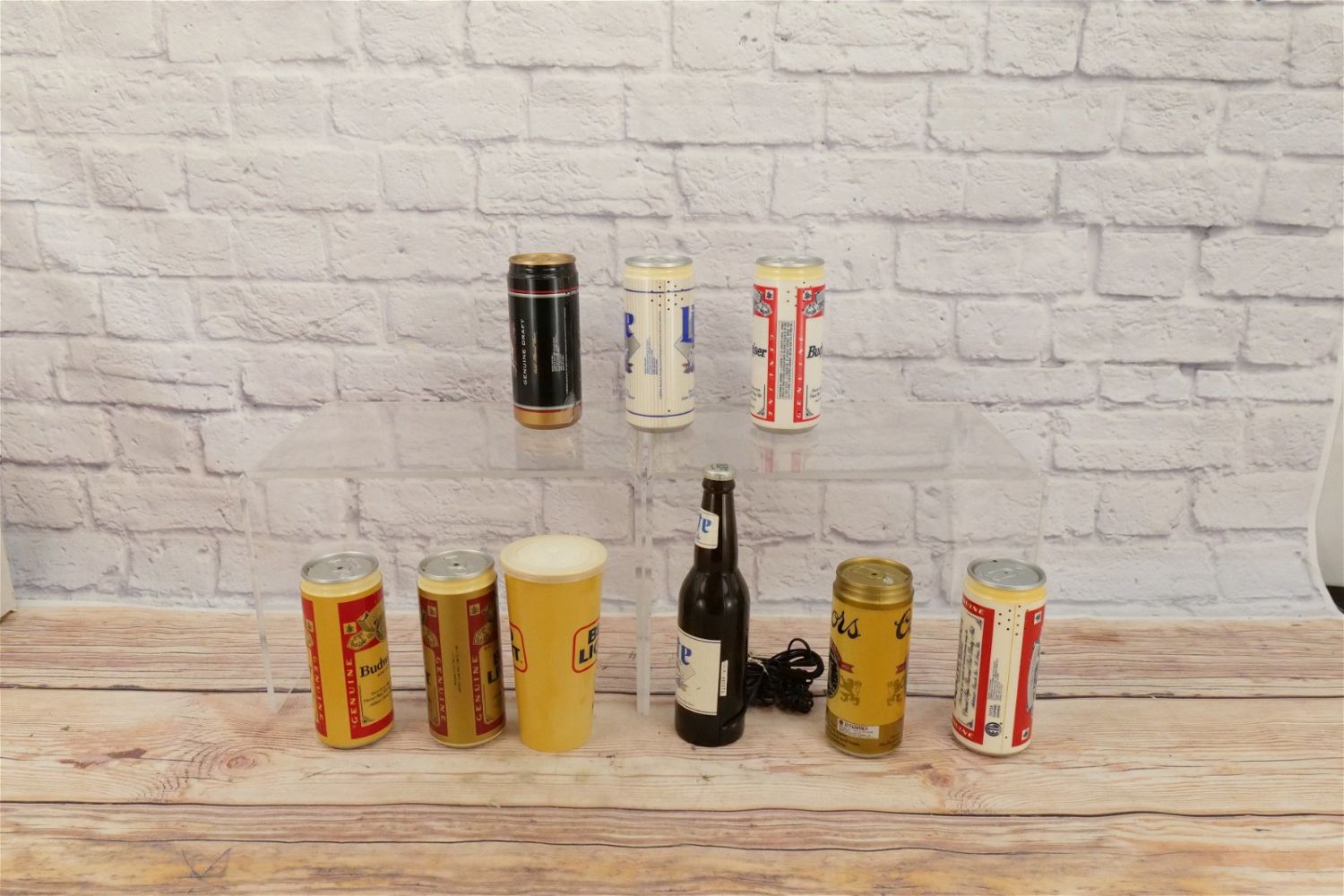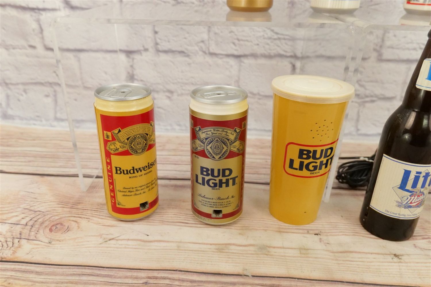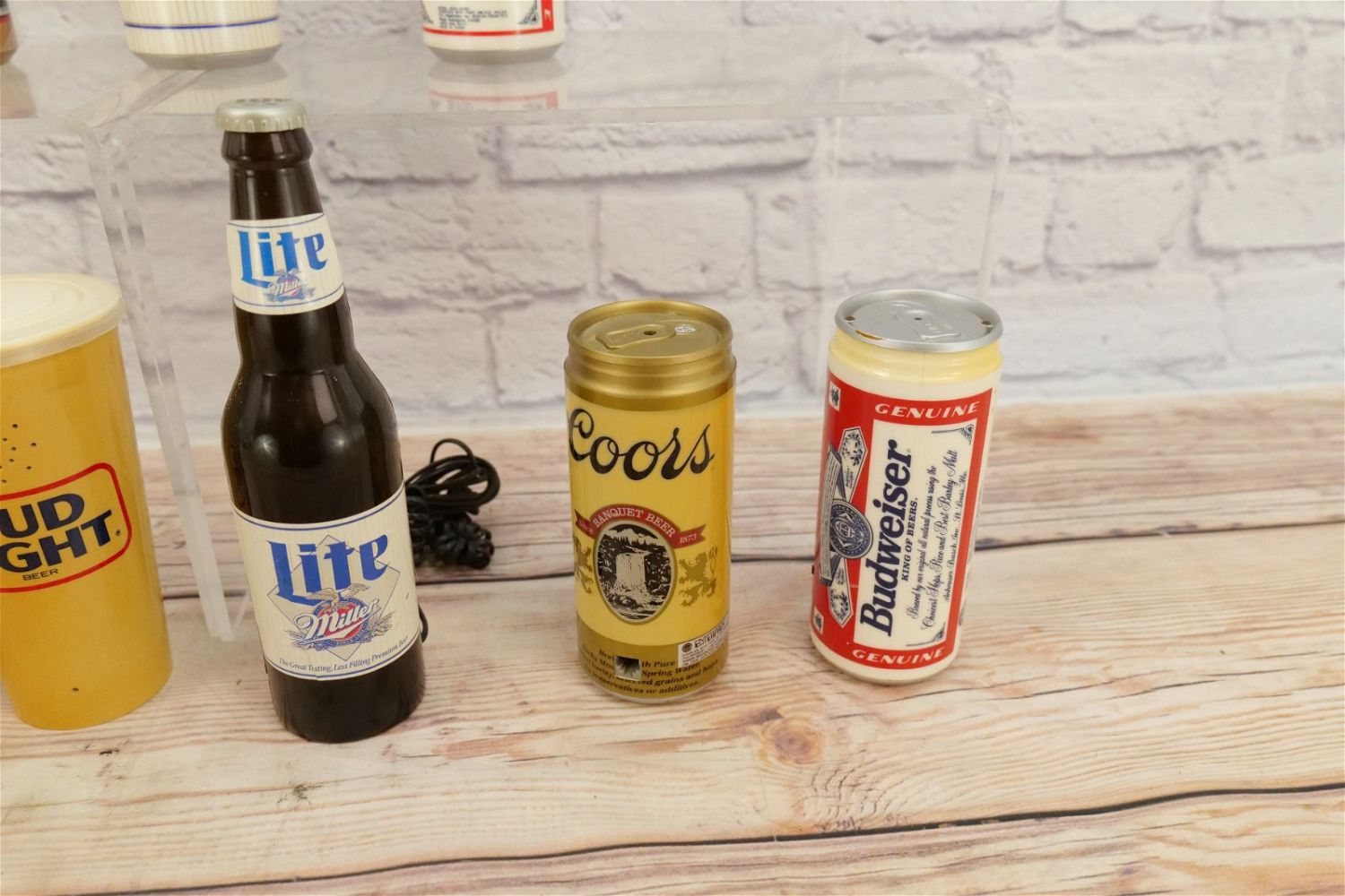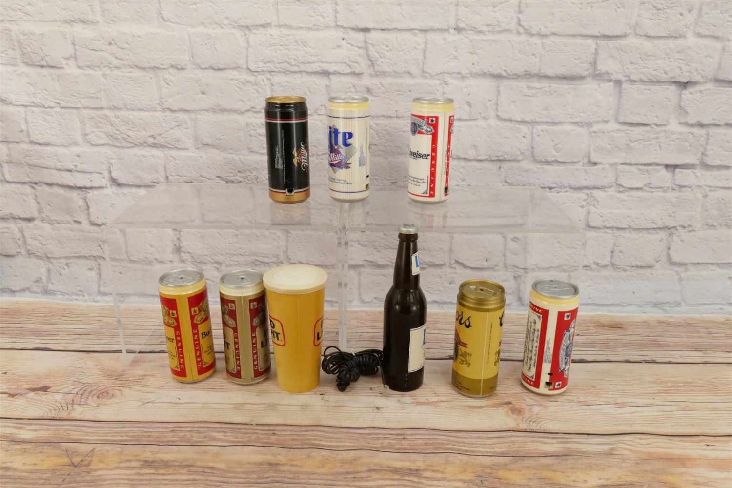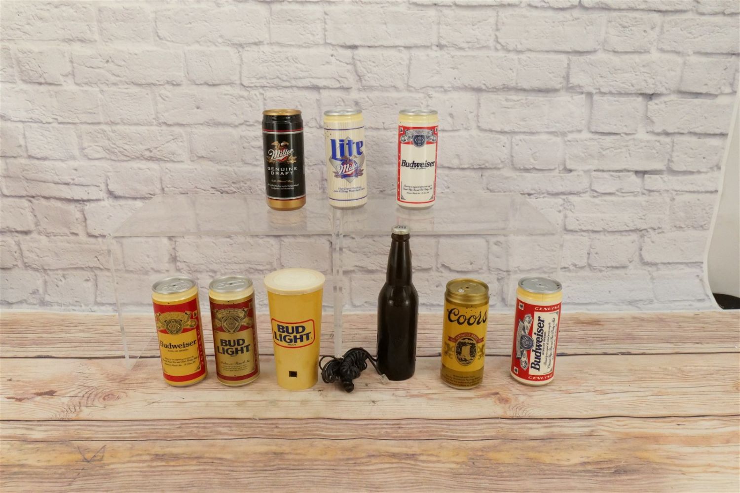 Lot of 9 Beer Themed Novelty Telephones including Budweiser, Bud Light, Miller Lite, MGD, and Coors. Some discoloration present on most of the phones. Largest measures 9.75" tall x 2.5" wide. This Collection was displayed in the house and all items are untested. All invoices must be paid within 24 hours of the sale. We offer multiple shipping options, please read the terms as they have changed. We also offer Pick-Ups Thursday, Friday, Saturday, and Monday immediately following the sale. BY APPOINTMENT ONLY. PLEASE READ THE NEW TERMS!!!