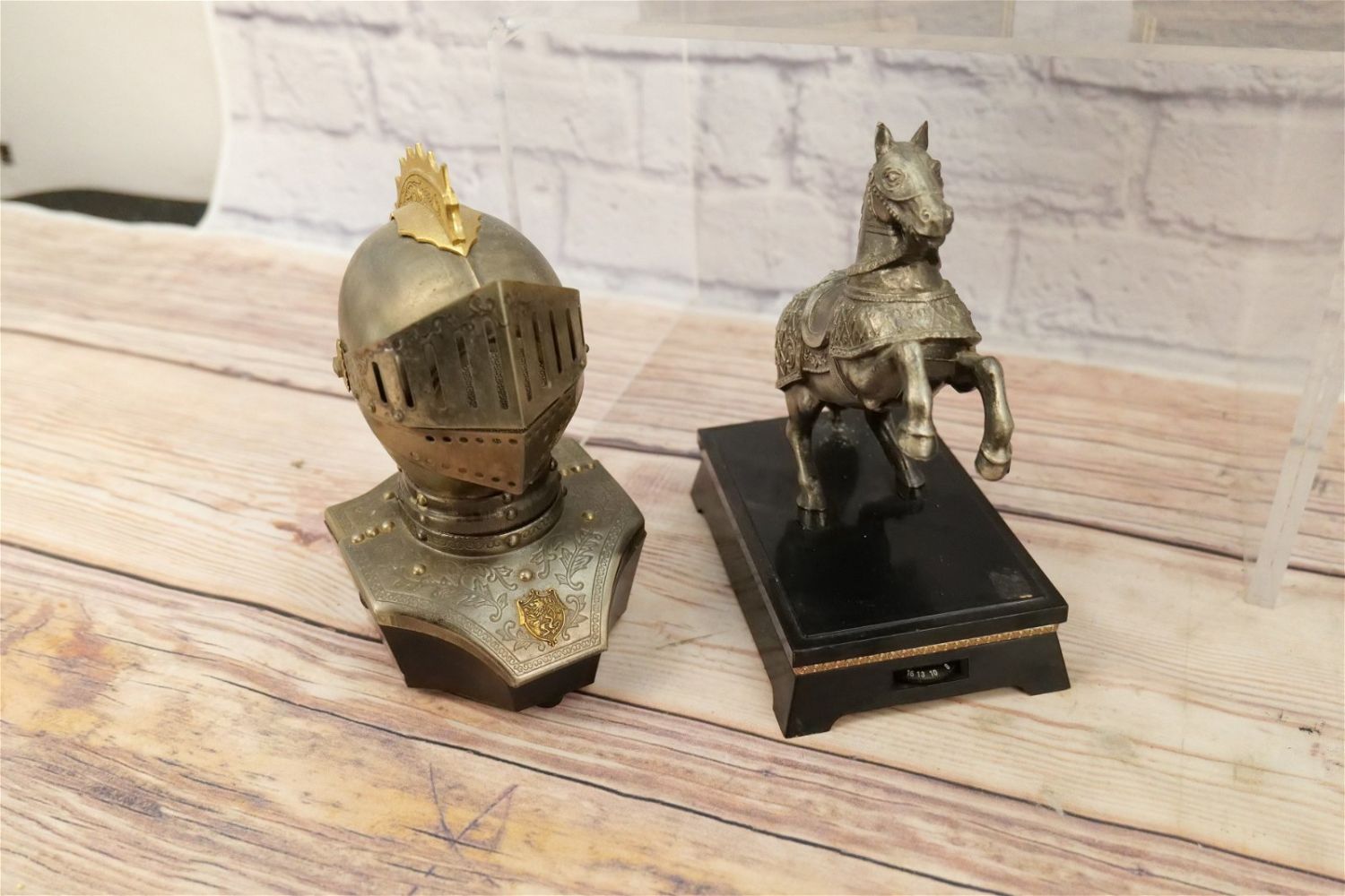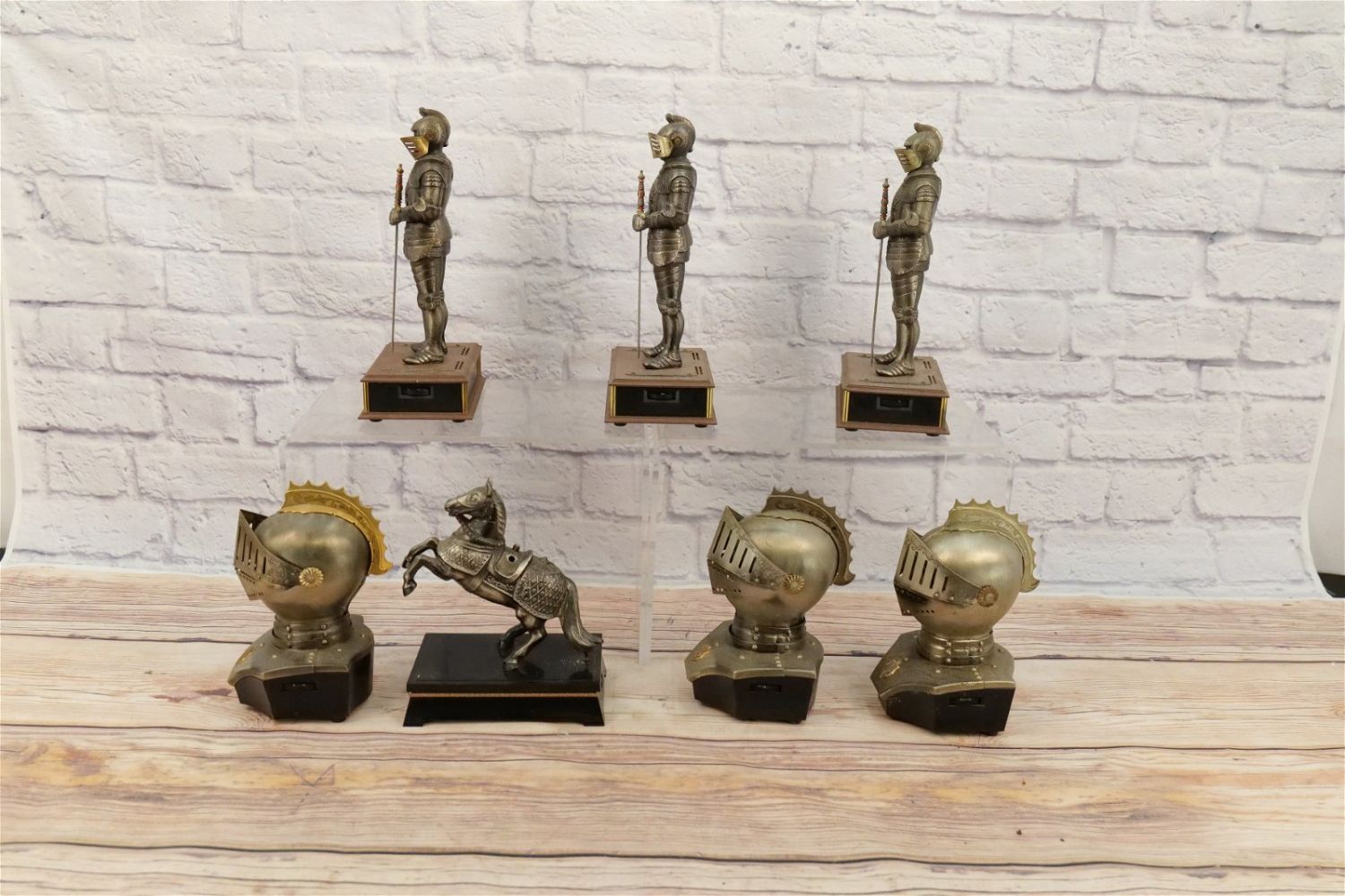 Lot of 7 Novelty Radios including (3) Knights in Armor, (3) Knight Heads Armor Bust and Horse in Armor – Missing Knight. All in Used Condition. This Collection was displayed in the house and all items are untested. All invoices must be paid within 24 hours of the sale. We offer multiple shipping options, please read the terms as they have changed. We also offer Pick-Ups Thursday, Friday, Saturday, and Monday immediately following the sale. BY APPOINTMENT ONLY. PLEASE READ THE NEW TERMS!!!