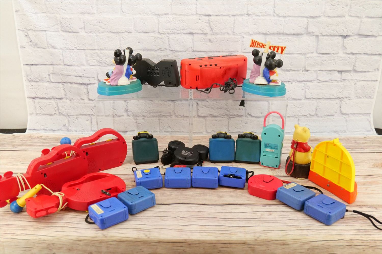 Lot of 23 Novelty Disney Radios including (9) Smaller Mickey Radios, (3) Mickey Mouse on Chair, (2) Mickey and Minnie Tunes Radio – 1 As-Is, (3) Mickey Guitar Shaper with Microphones, Mickey Mouse Theater, M Logo Clock Radio, Cassette Alarm Clock Radio, Winnie the Pooh, Ariel, and Mickey Ears Clock Radio. All in Used Condition. This Collection was displayed in the house and all items are untested. All invoices must be paid within 24 hours of the sale. We offer multiple shipping options, please read the terms as they have changed. We also offer Pick-Ups Thursday, Friday, Saturday, and Monday immediately following the sale. BY APPOINTMENT ONLY. PLEASE READ THE NEW TERMS!!!