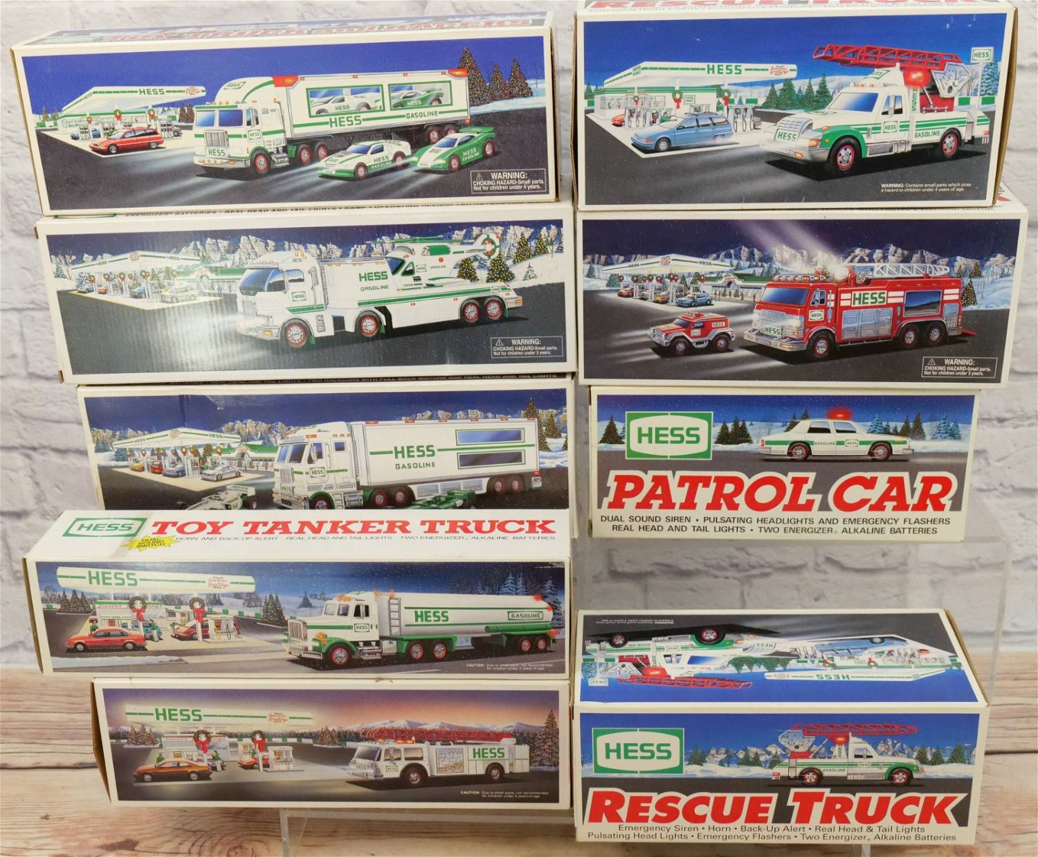 Lot of 9 Hess Trucks including 1989, 1990, 1993, 2x 1994, 1997, 2003, 2005, and 2006. All invoices must be paid for within 24 hours. We offer multiple shipping options, please read the terms as they have changed. We also offer pick ups on Friday, Saturday and Monday immediately following the sale BY APPOINTMENT ONLY. PLEASE READ THE TERMS!!!
