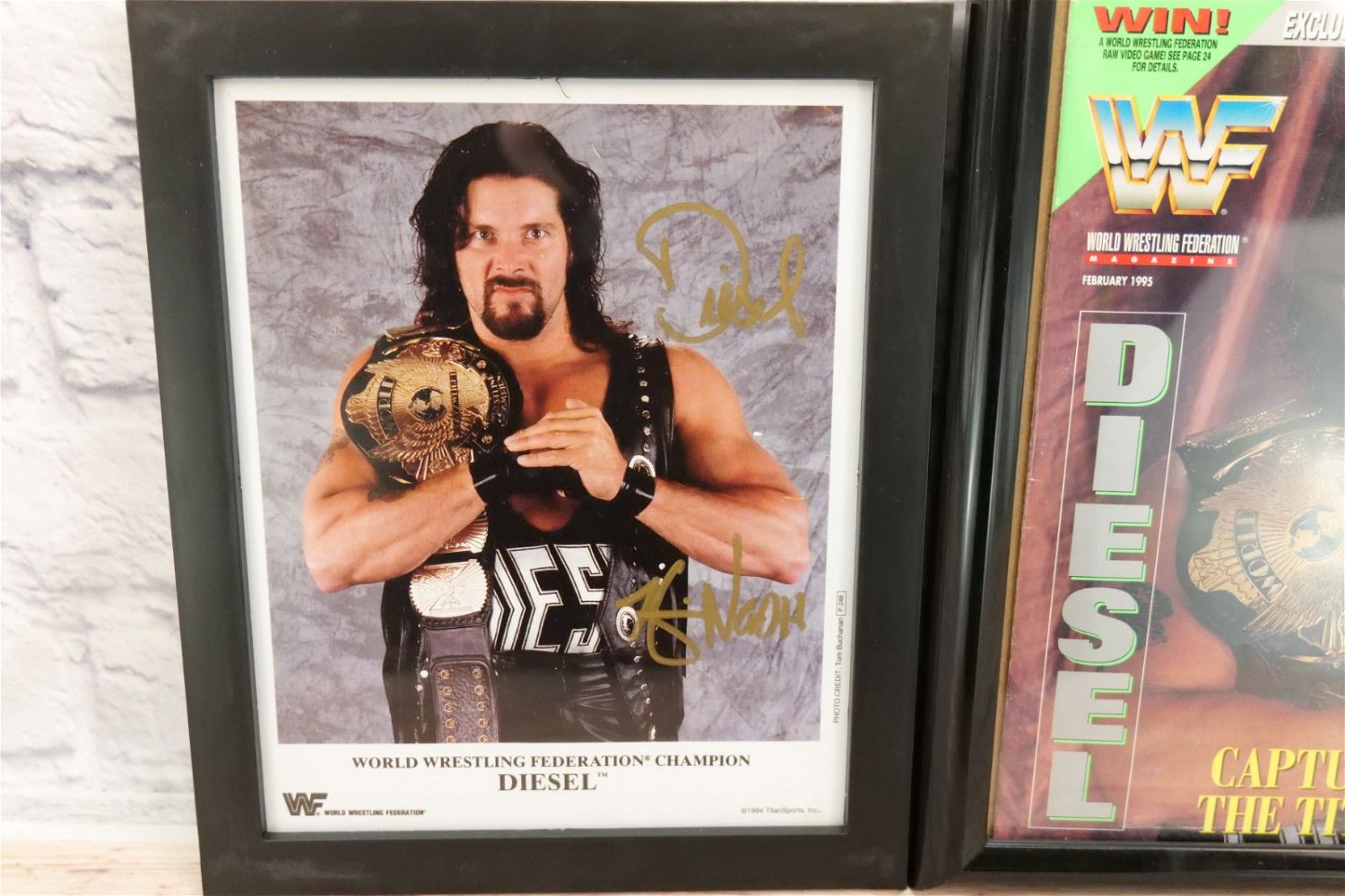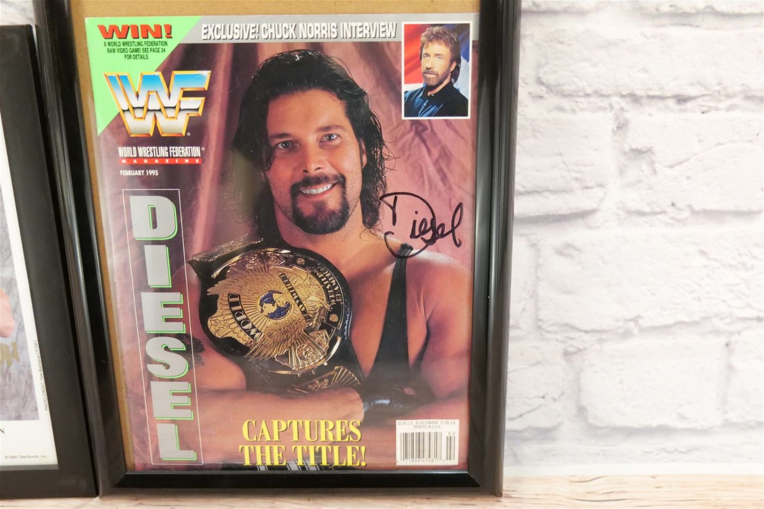 Lot of 2 Kevin Nash/Diesel Wrestling Autographs including an Autographed WWF Magazine and Autographed Promo Photo. Both Framed. Largest measures 13" tall x 10" wide. This autograph comes with a 30 day guarantee. It came from an estate where the collector obtained the autographs himself or from a reputable source. All invoices must be paid for within 24 hours. We offer multiple shipping options, please read the terms as they have changed. We also offer pick ups on Friday, Saturday and Monday immediately following the sale BY APPOINTMENT ONLY. PLEASE READ THE TERMS!!!