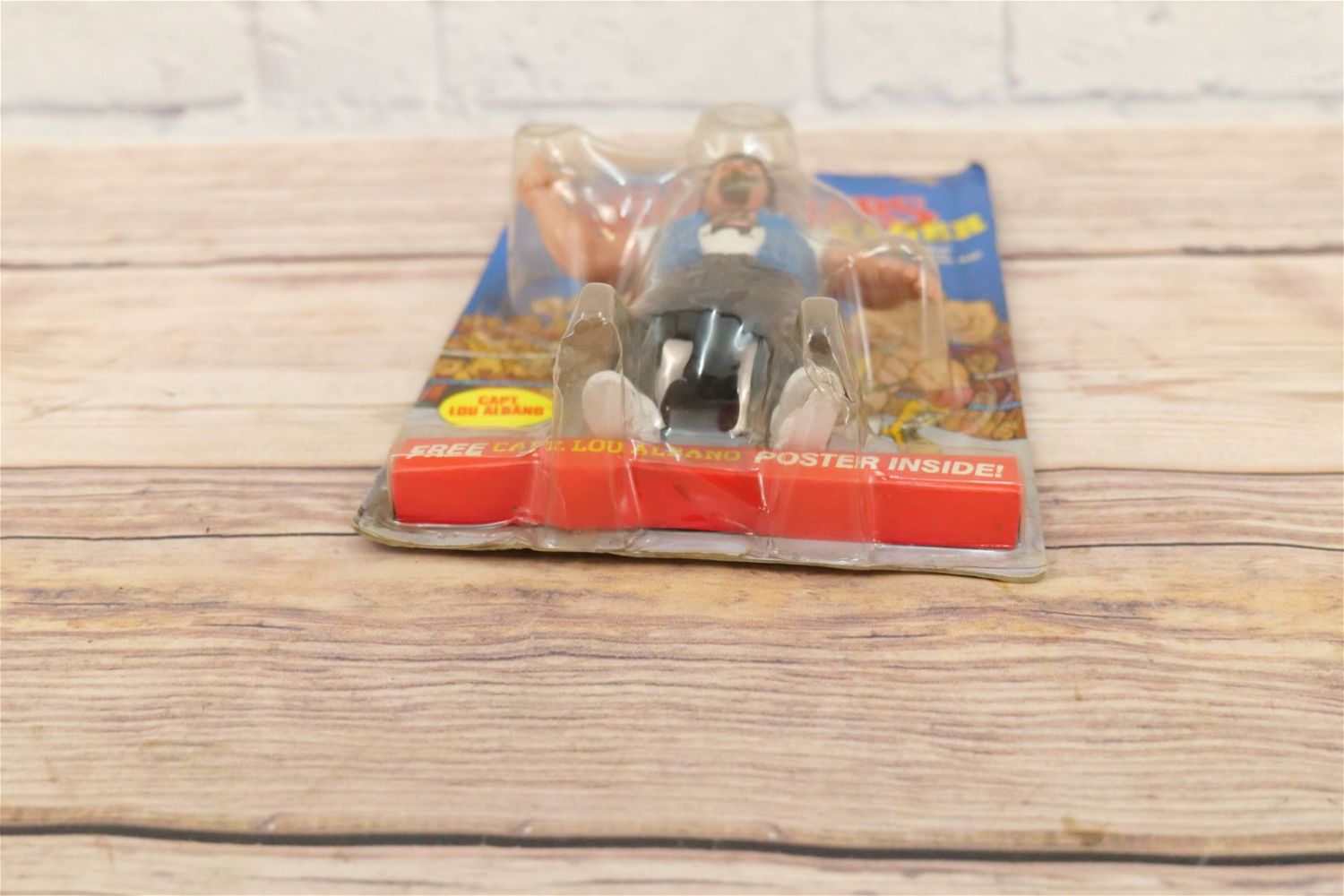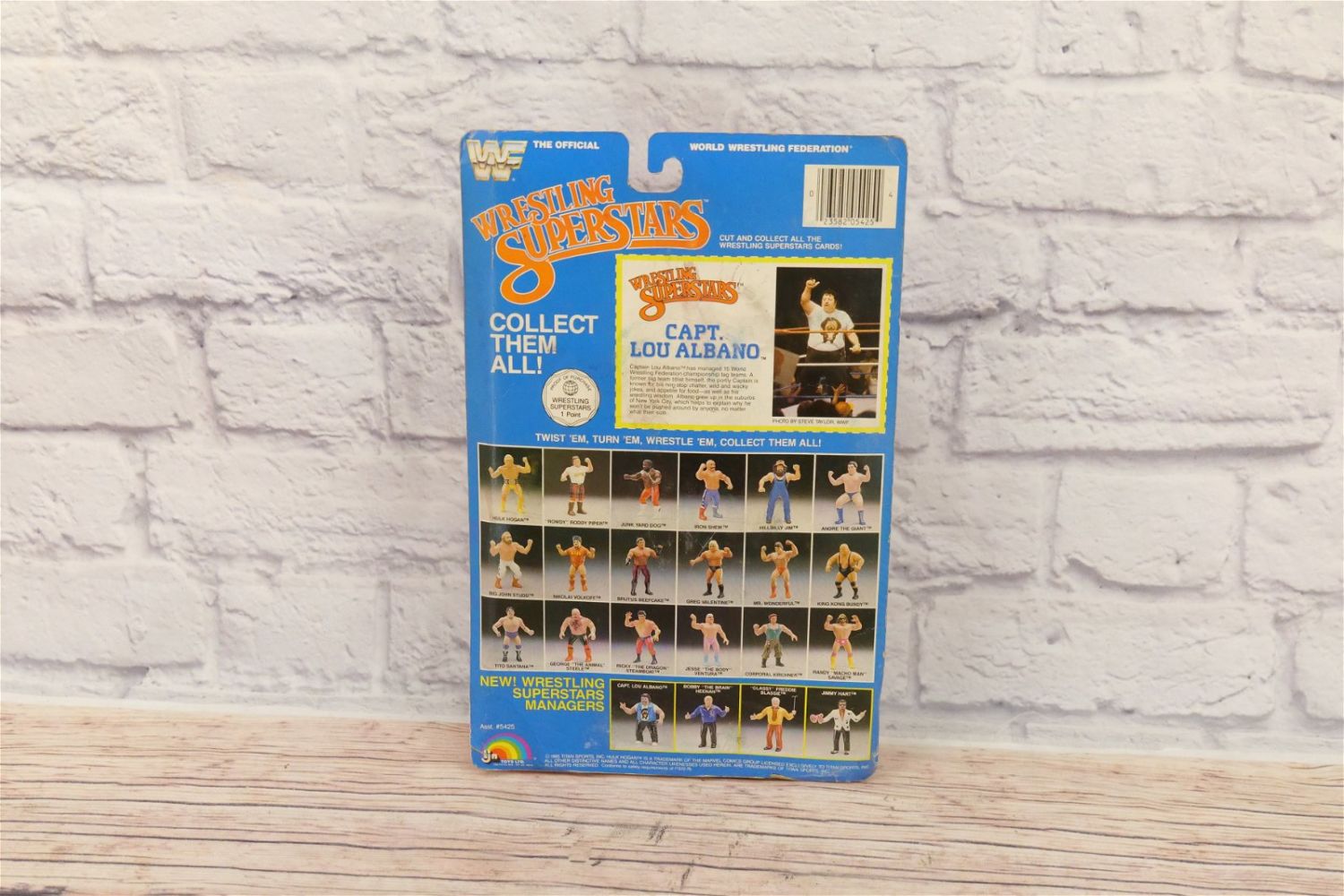 LJN Wrestling Superstars Manager – Capt. Lou Albano. Sealed on Card. Blister pack has some tears on bottom and is coming loose on one edge and card has a bit of creasing. All invoices must be paid for within 24 hours. We offer multiple shipping options, please read the terms as they have changed. We also offer pick ups on Friday, Saturday and Monday immediately following the sale BY APPOINTMENT ONLY. PLEASE READ THE TERMS!!!
